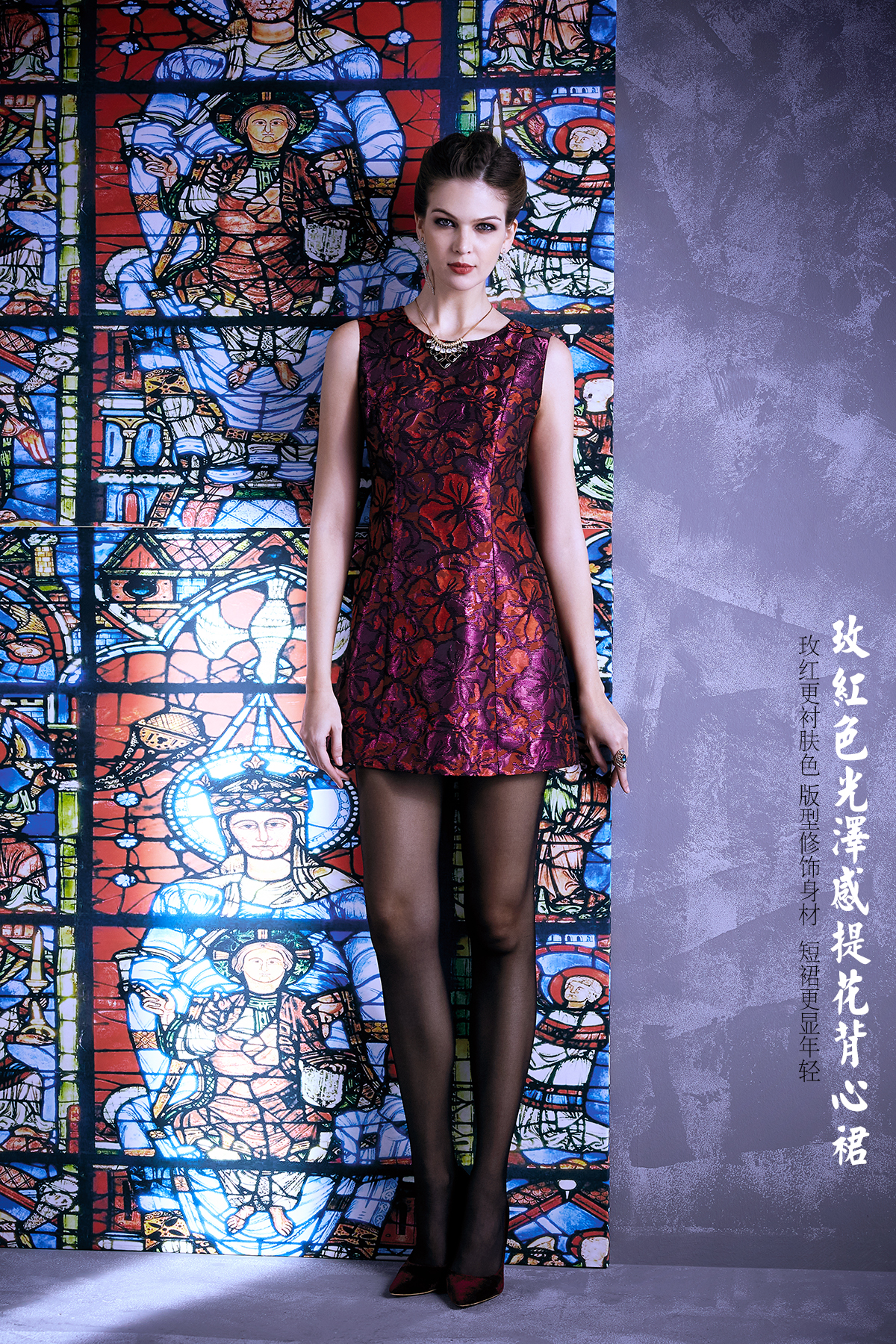 【伯妮斯茵】大气玫红色提花背心裙连衣裙--神秘的圣母窗--《因汉而生--哥特》3S6214
