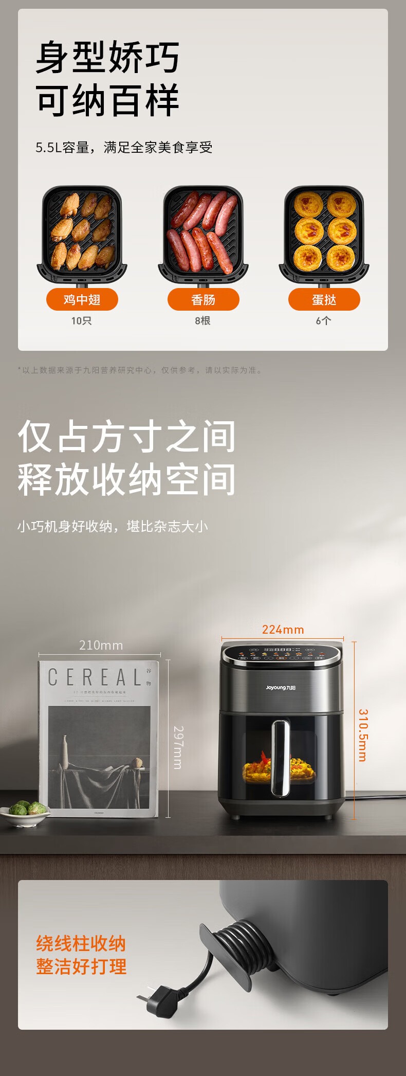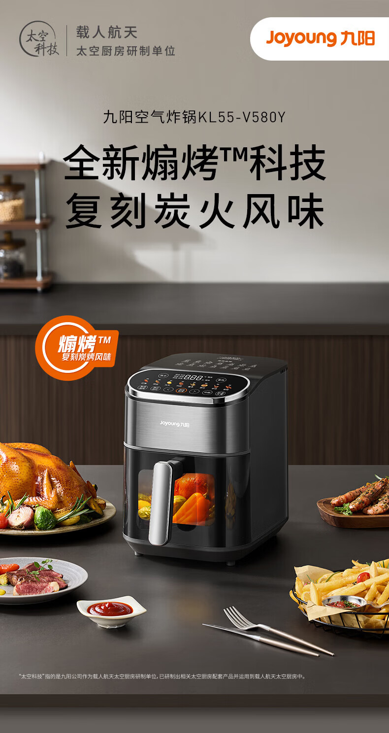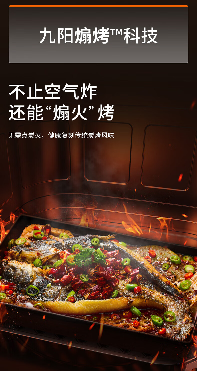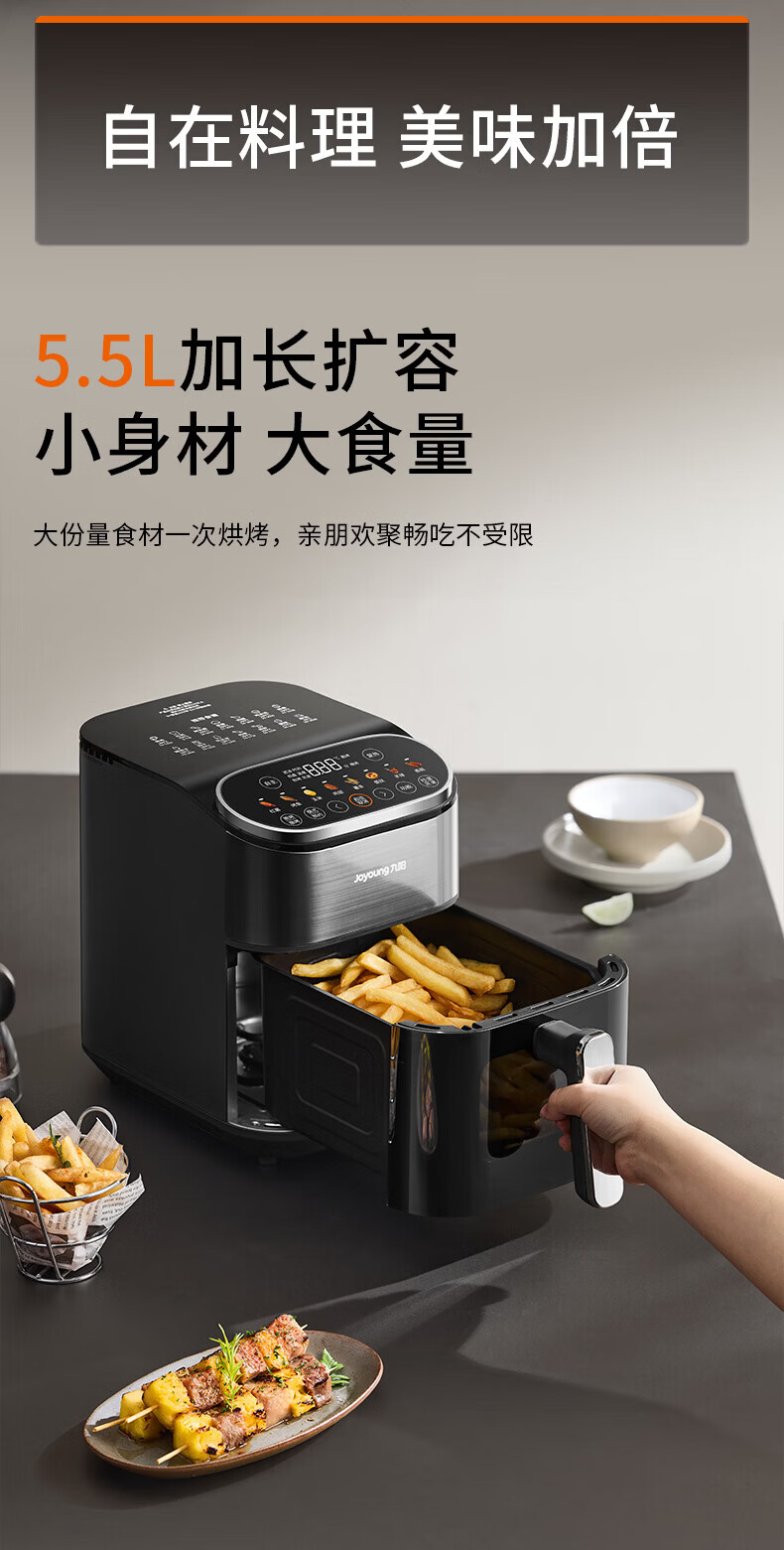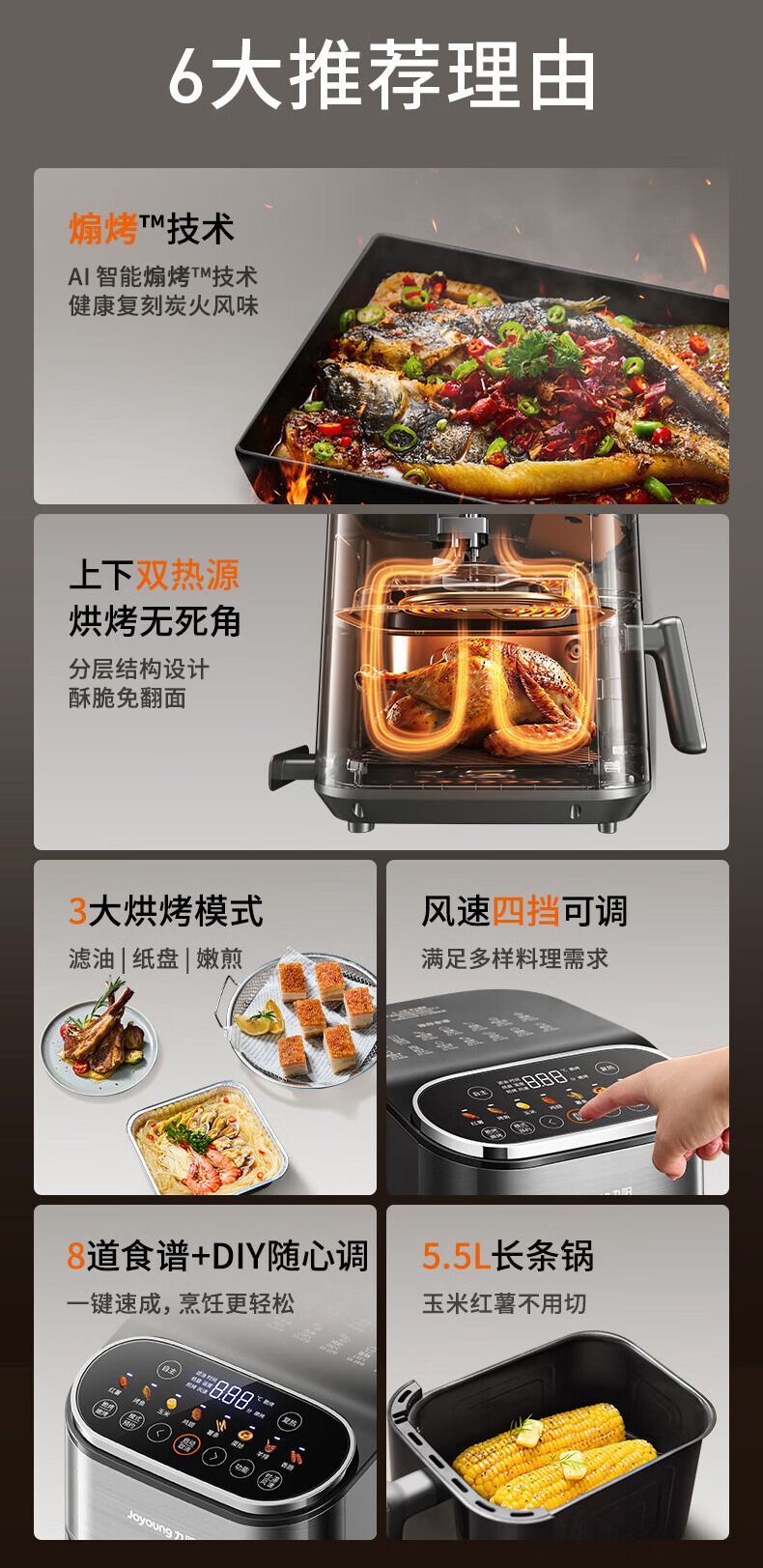 九阳AI煽烤空气炸锅双热源可视不翻面5.5L蒸烤箱一体多功能电炸锅