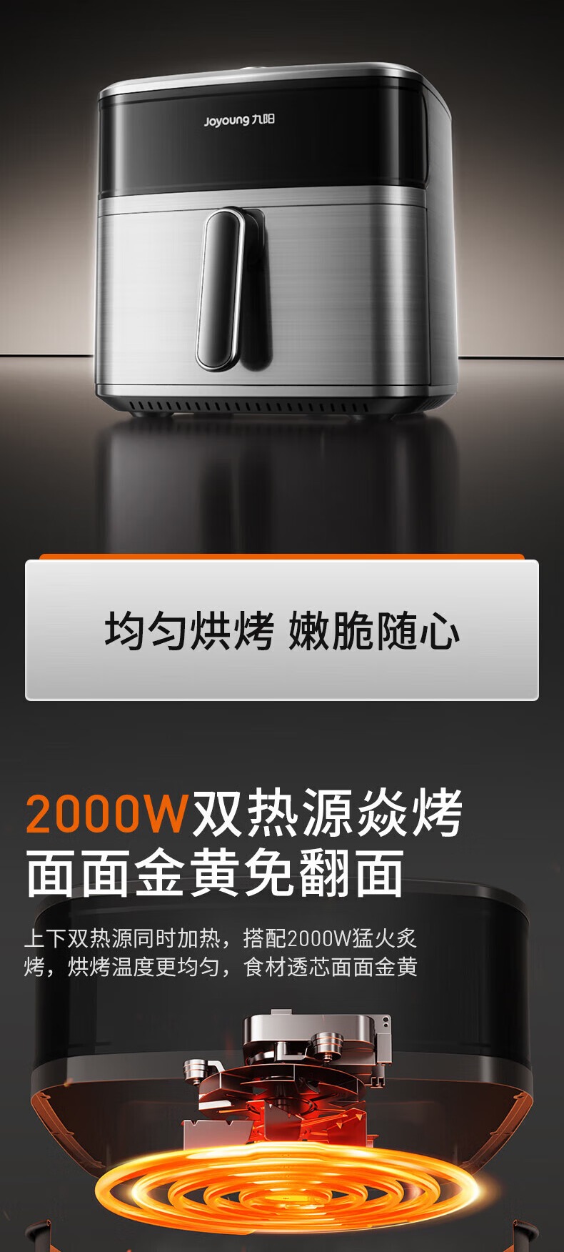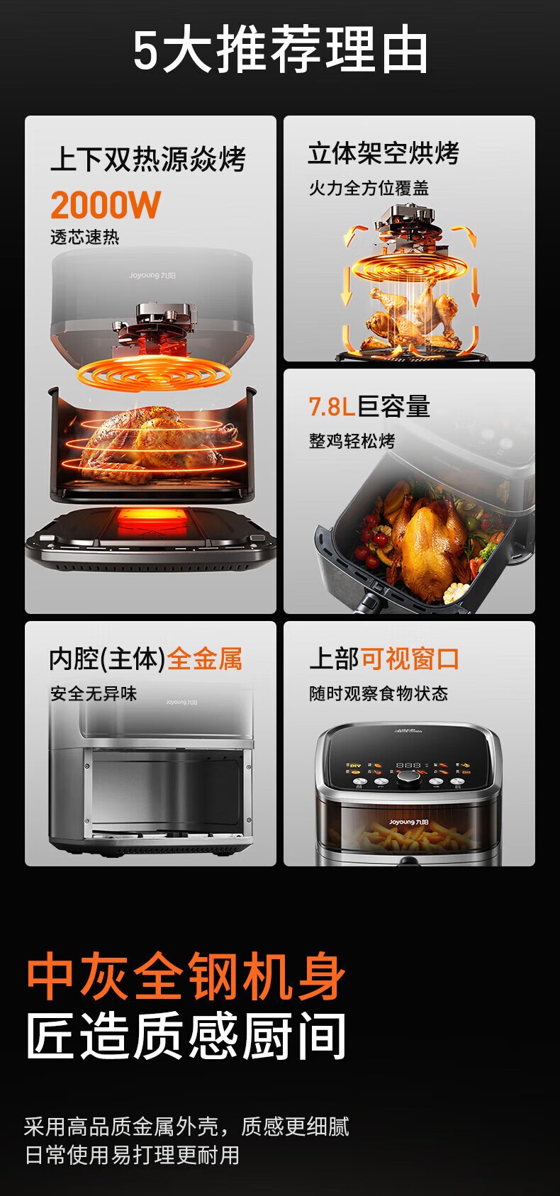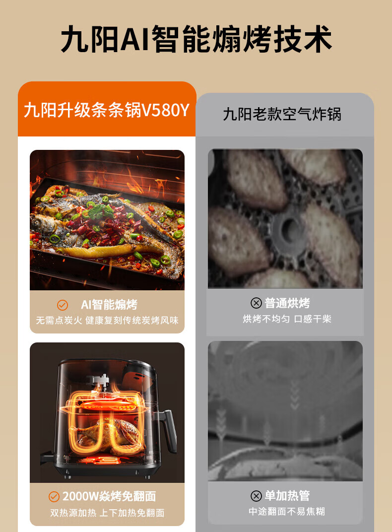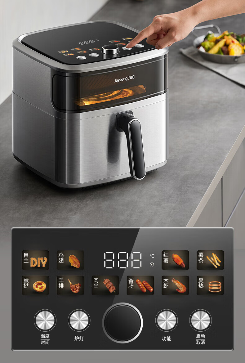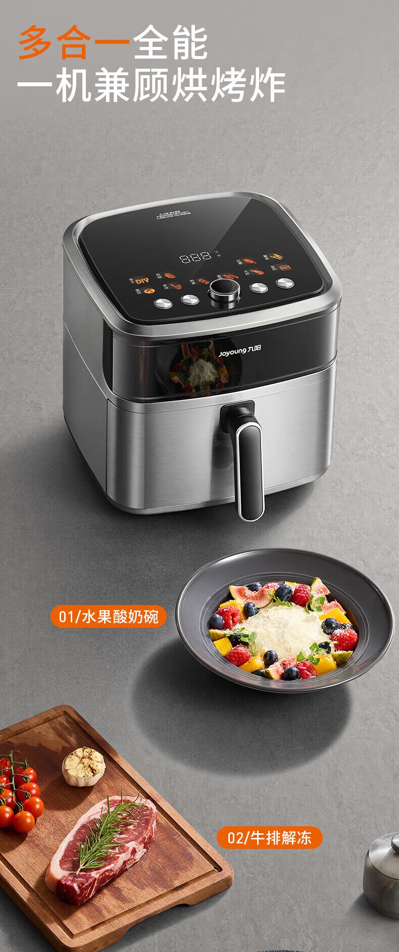 九阳AI煽烤空气炸锅双热源可视不翻面5.5L蒸烤箱一体多功能电炸锅