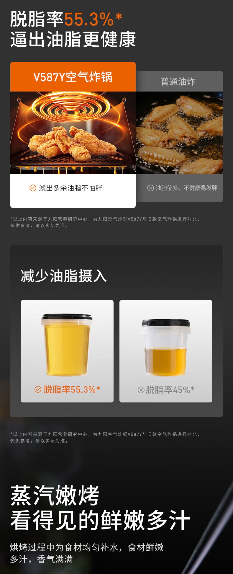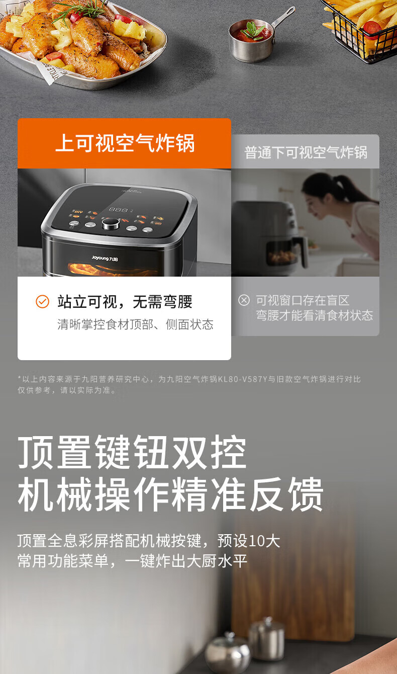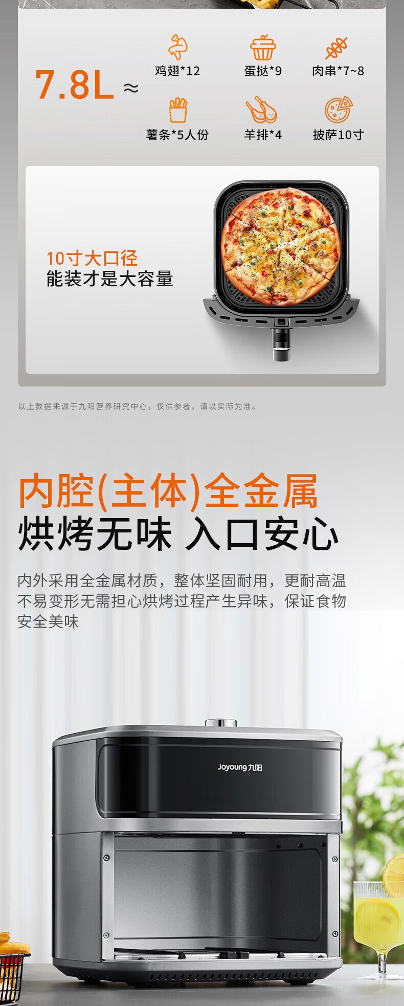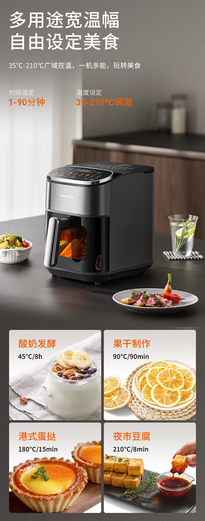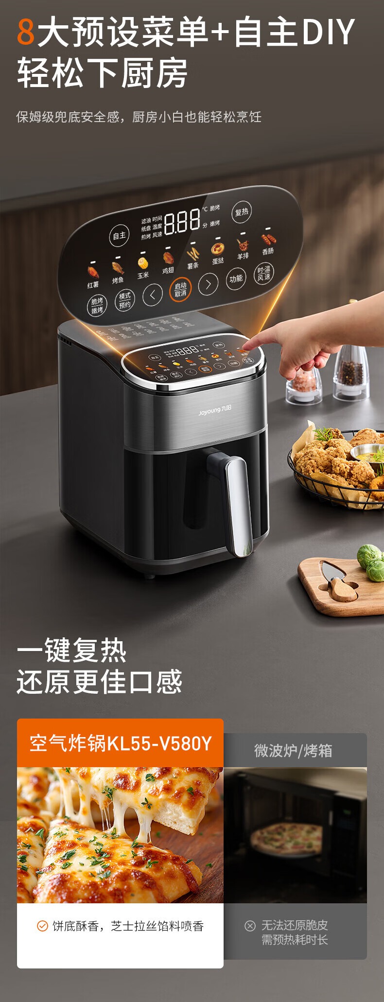 九阳AI煽烤空气炸锅双热源可视不翻面5.5L蒸烤箱一体多功能电炸锅