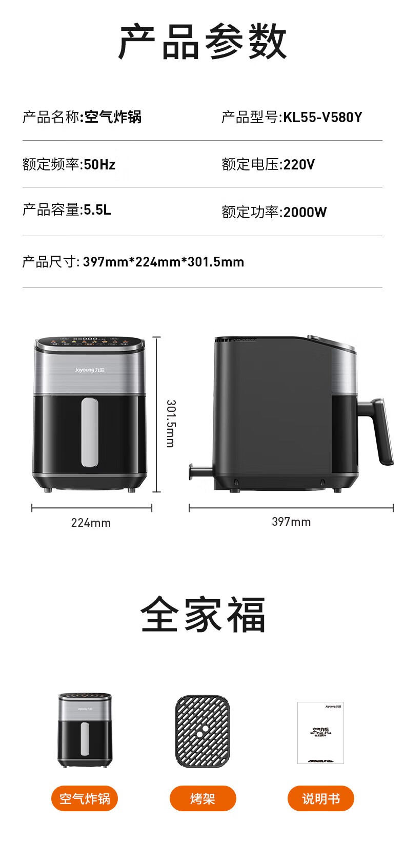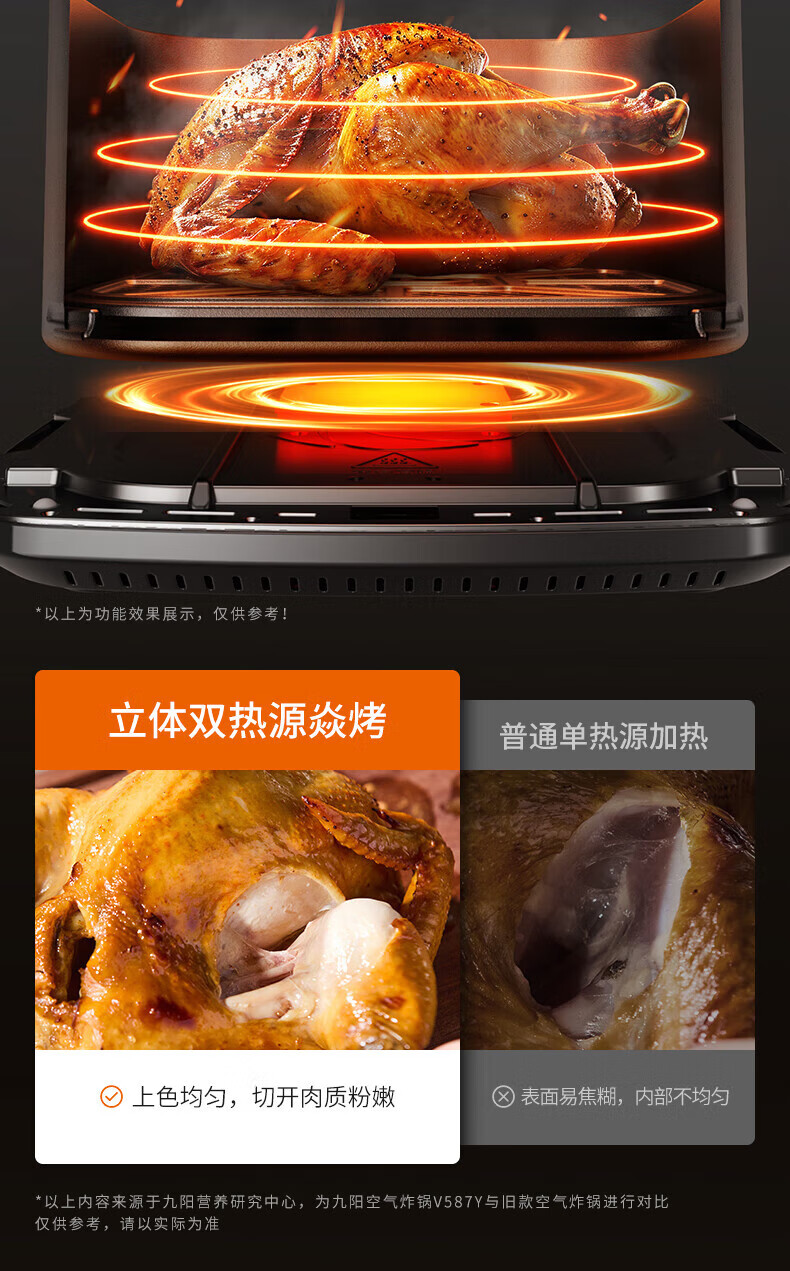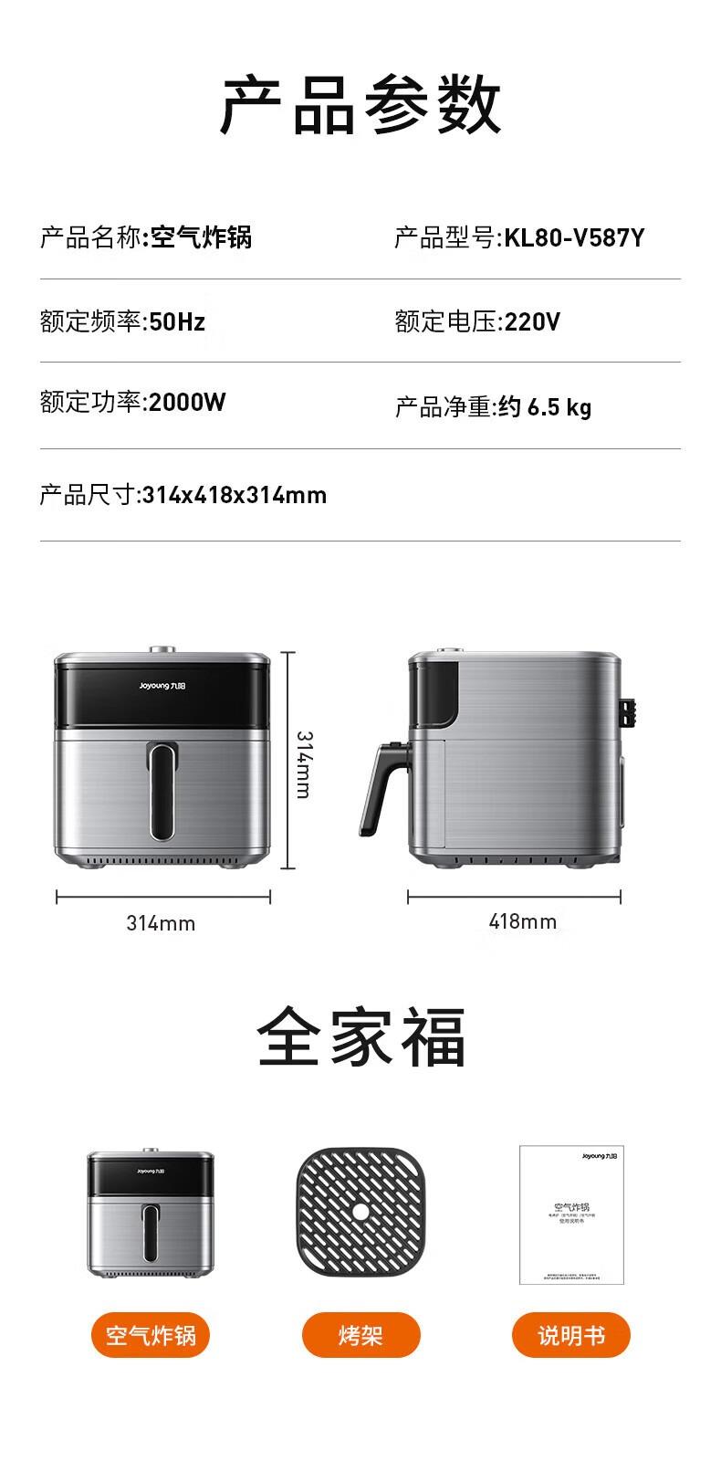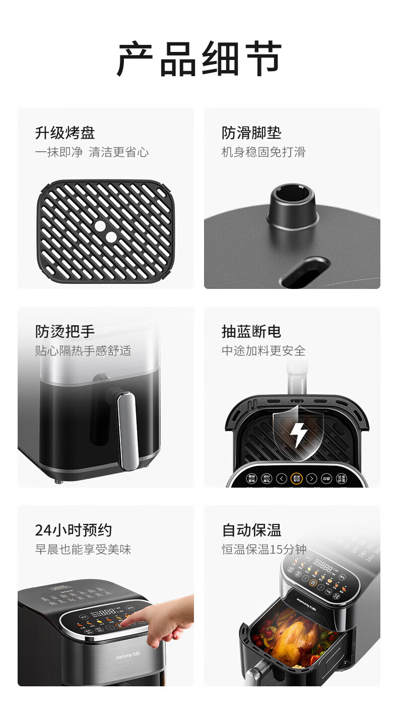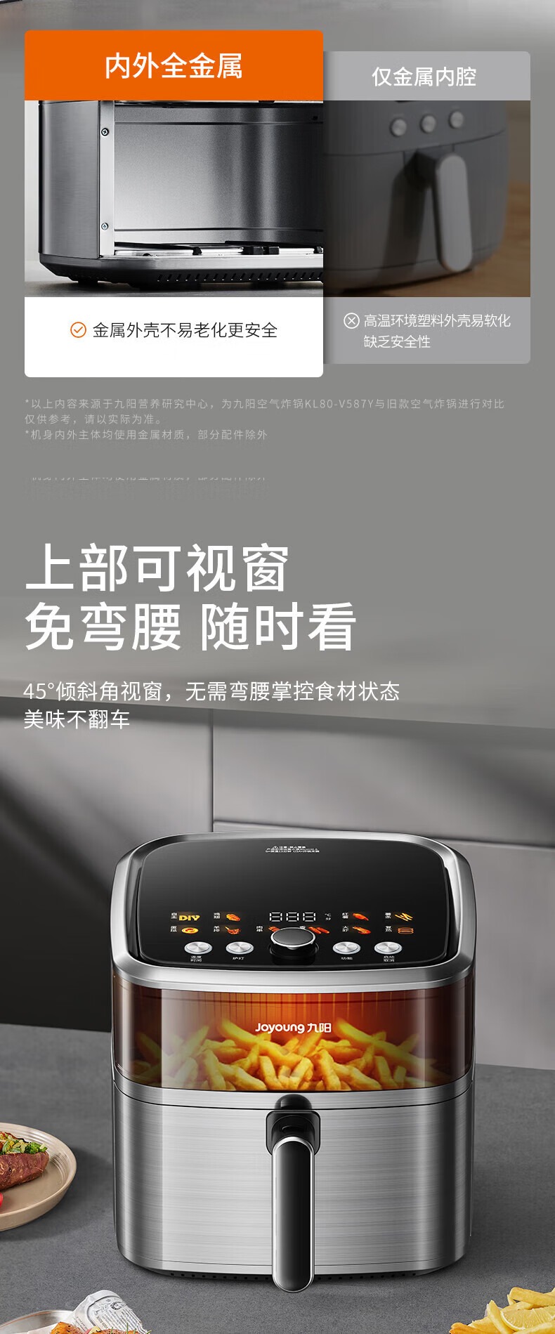 九阳AI煽烤空气炸锅双热源可视不翻面5.5L蒸烤箱一体多功能电炸锅
