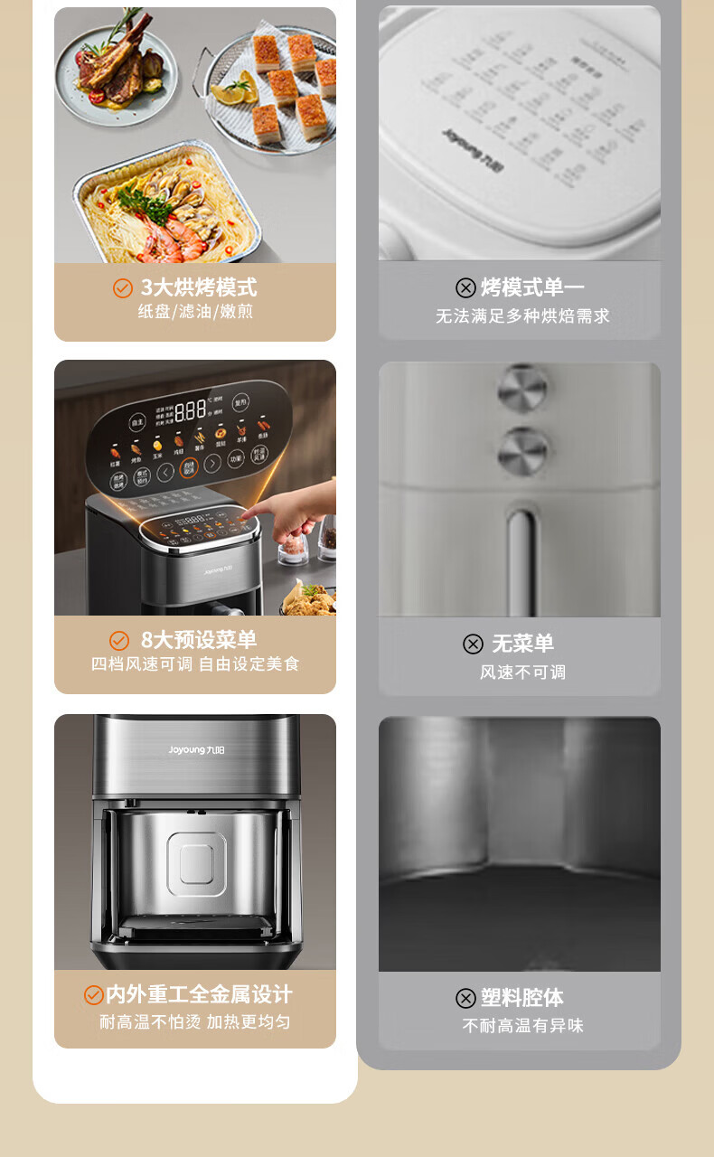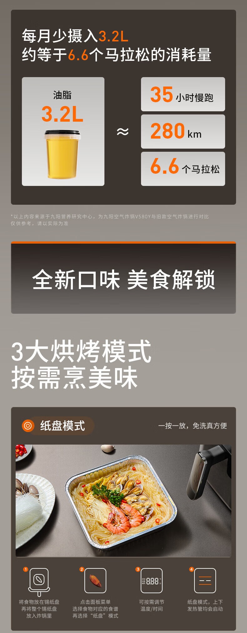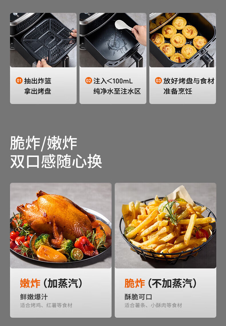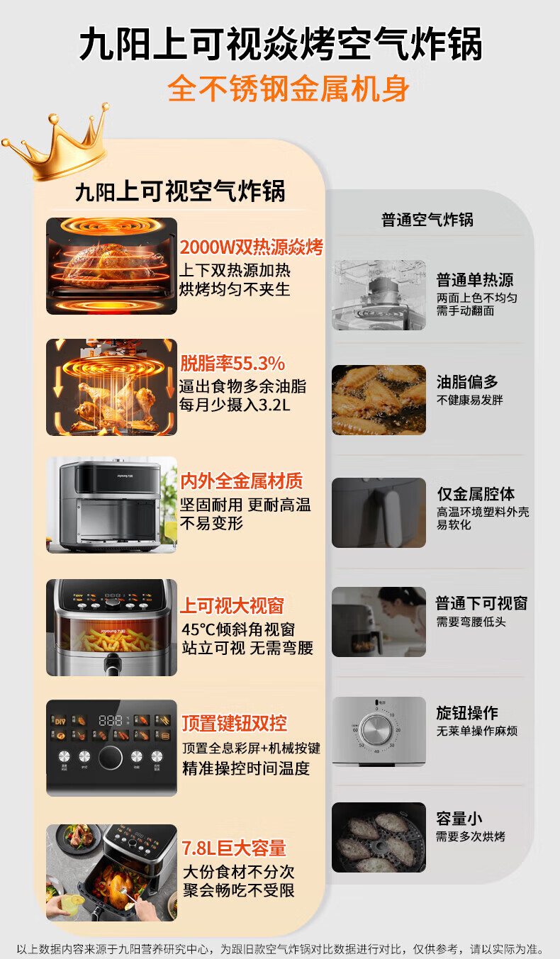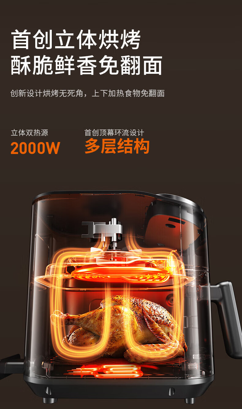 九阳AI煽烤空气炸锅双热源可视不翻面5.5L蒸烤箱一体多功能电炸锅