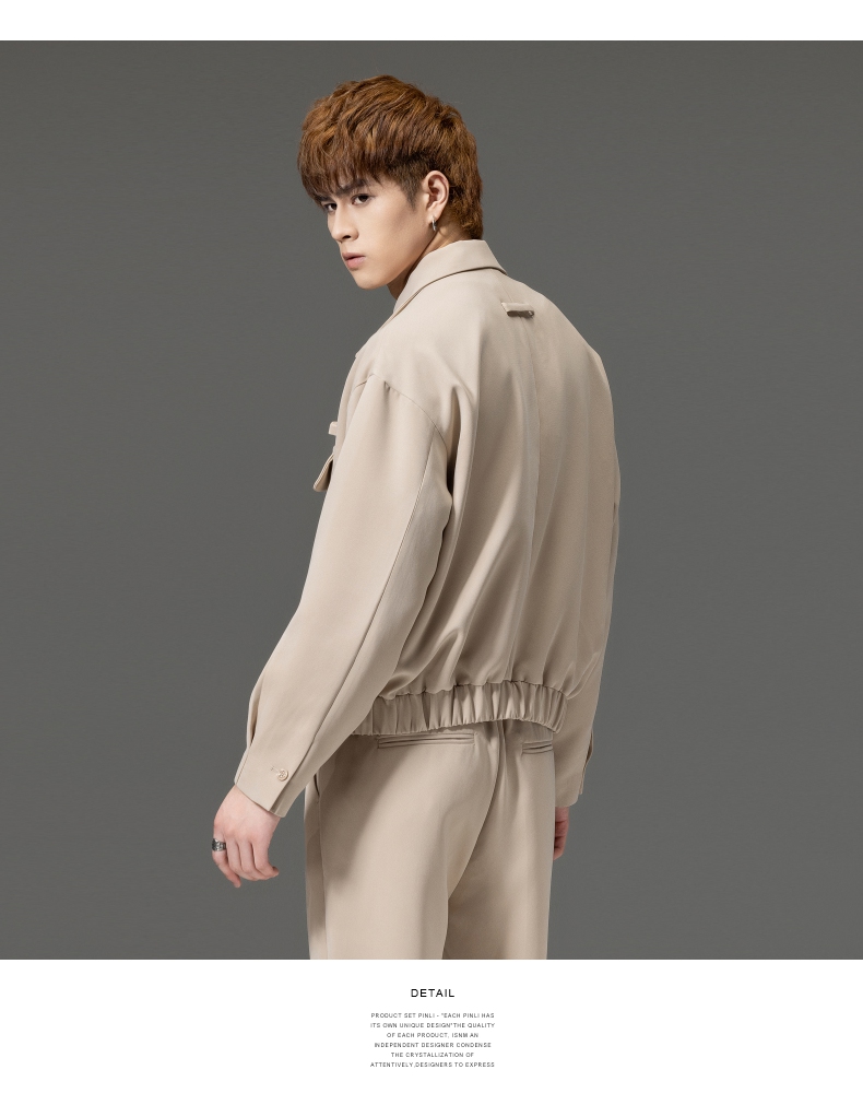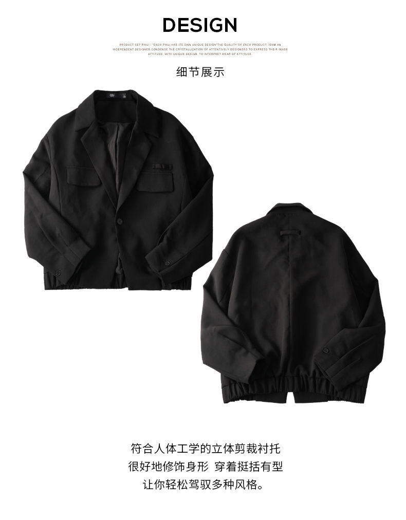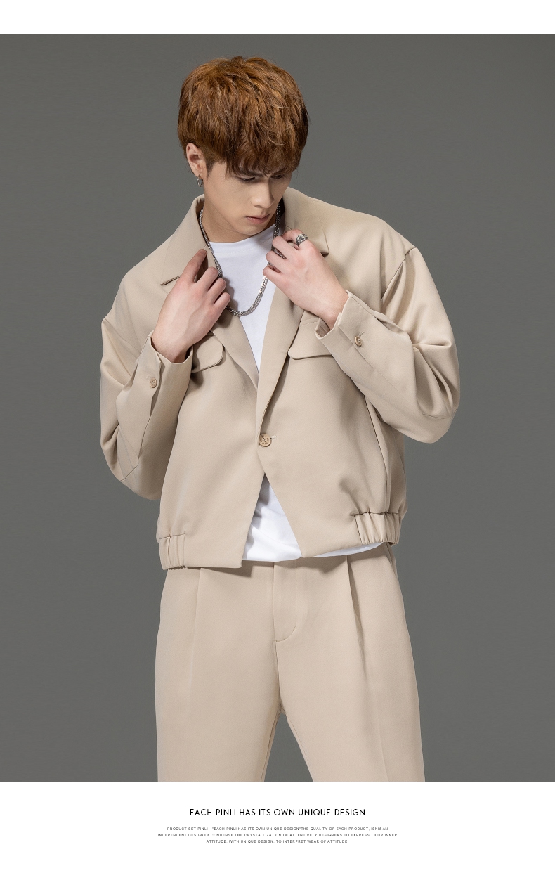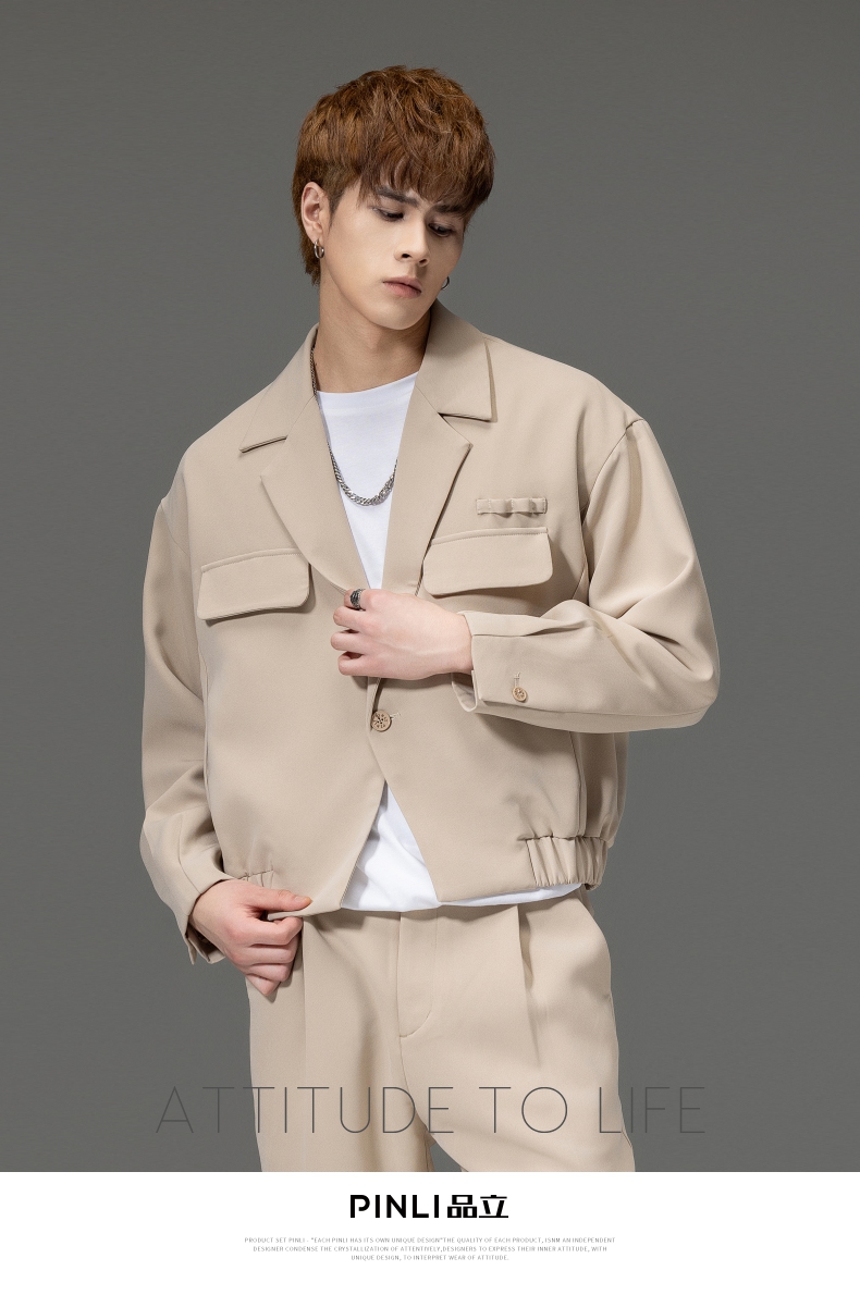PINLI品立秋冬新品西装领休闲夹克男士纯色潮牌短款茄克外套B252104051