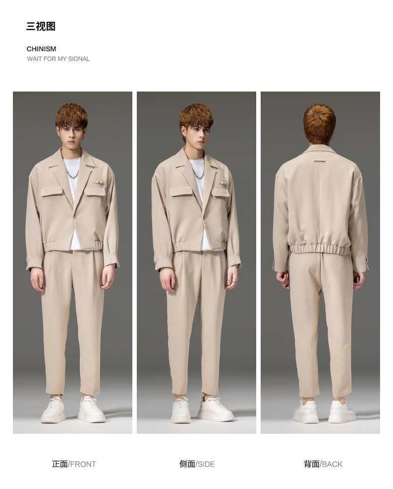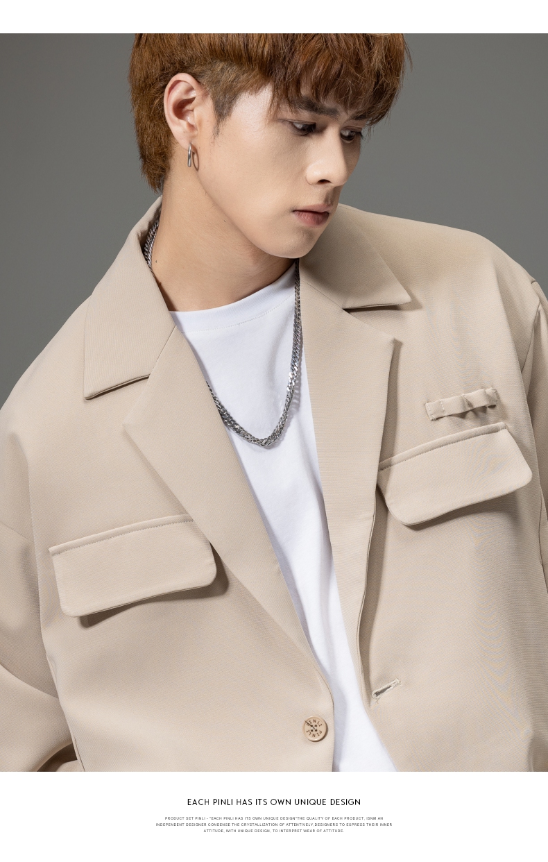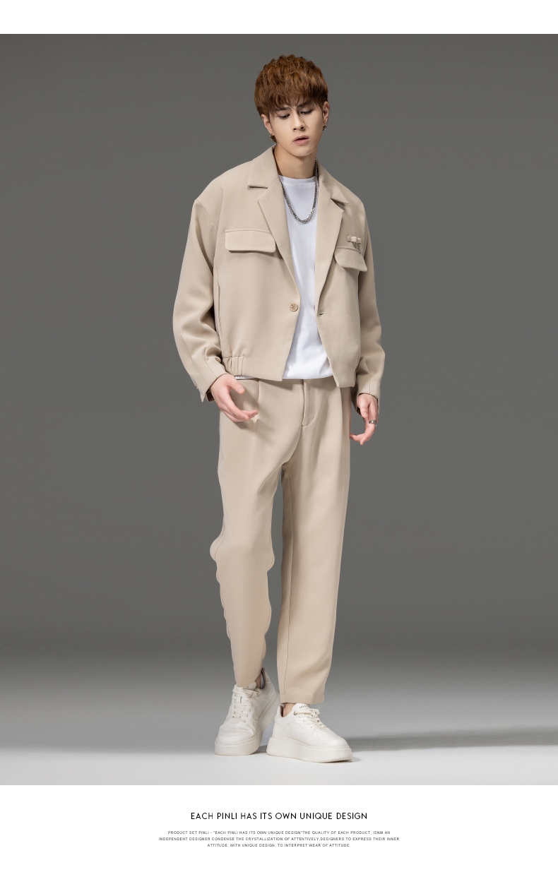 PINLI品立秋冬新品西装领休闲夹克男士纯色潮牌短款茄克外套B252104051