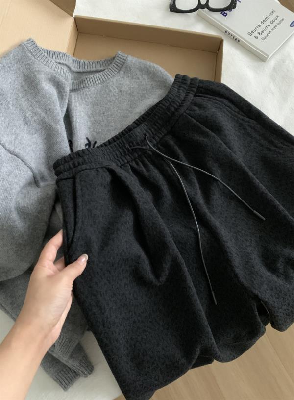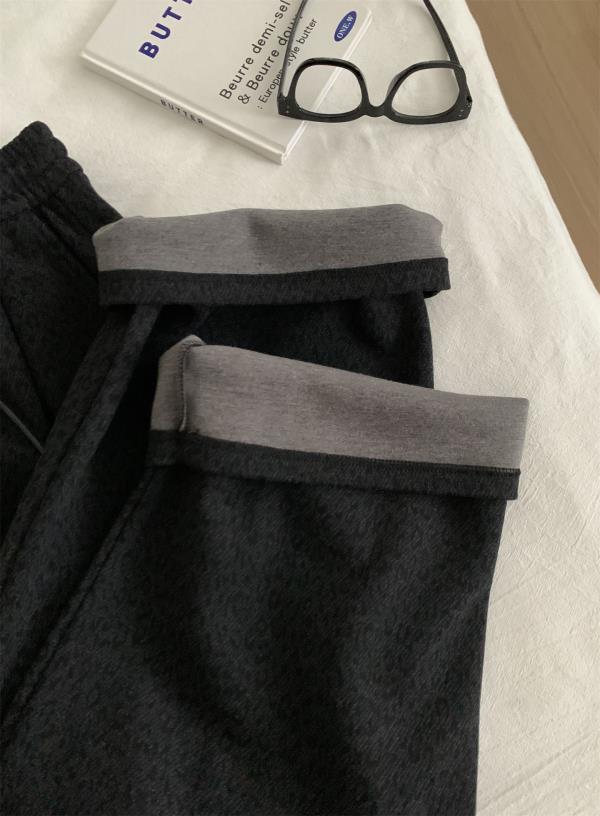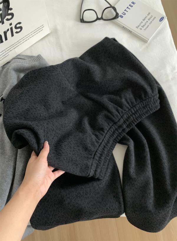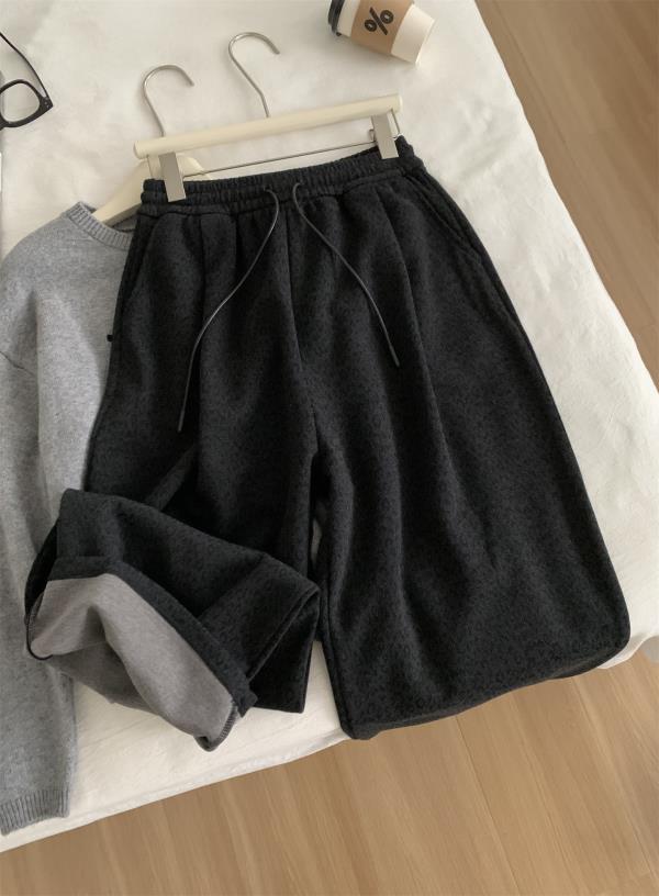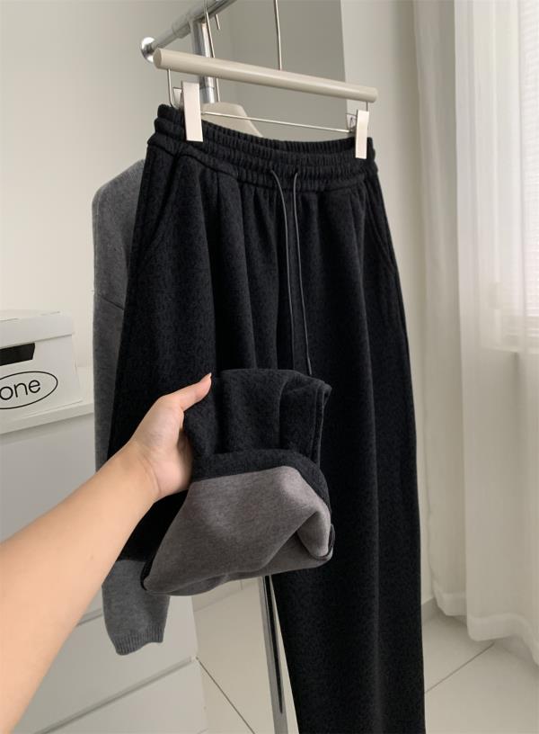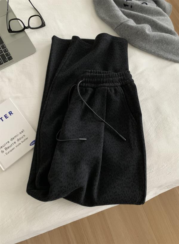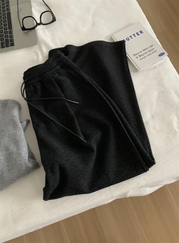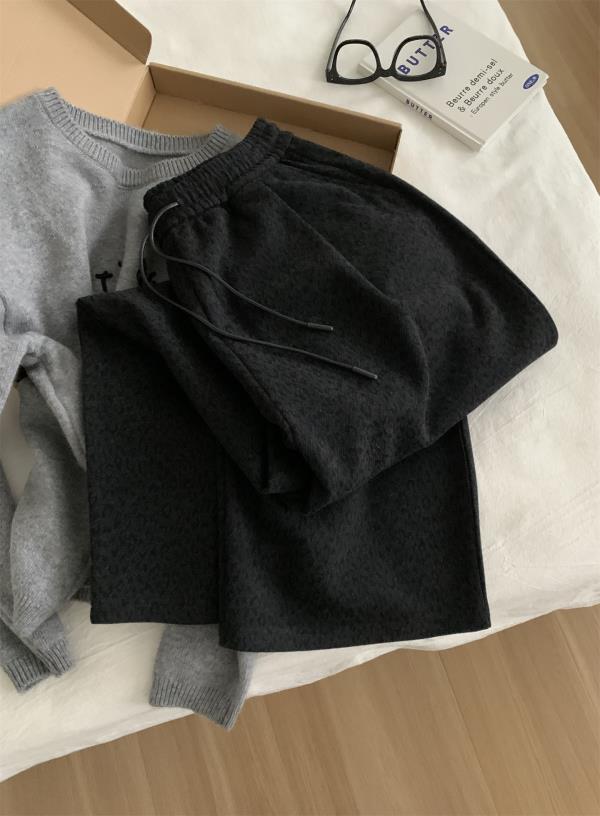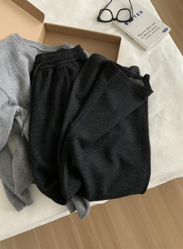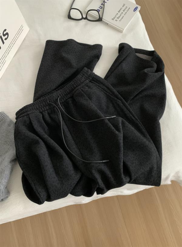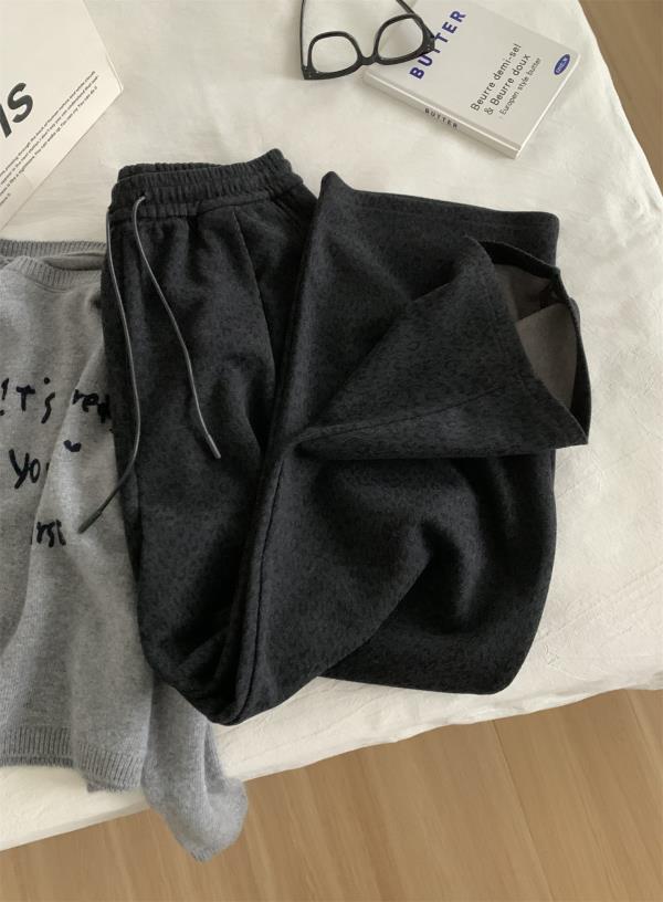 复古暗黑小豹纹阔腿裤!2025女慵懒垂感厚实保暖羊毛直筒休闲裤秋冬长裤!