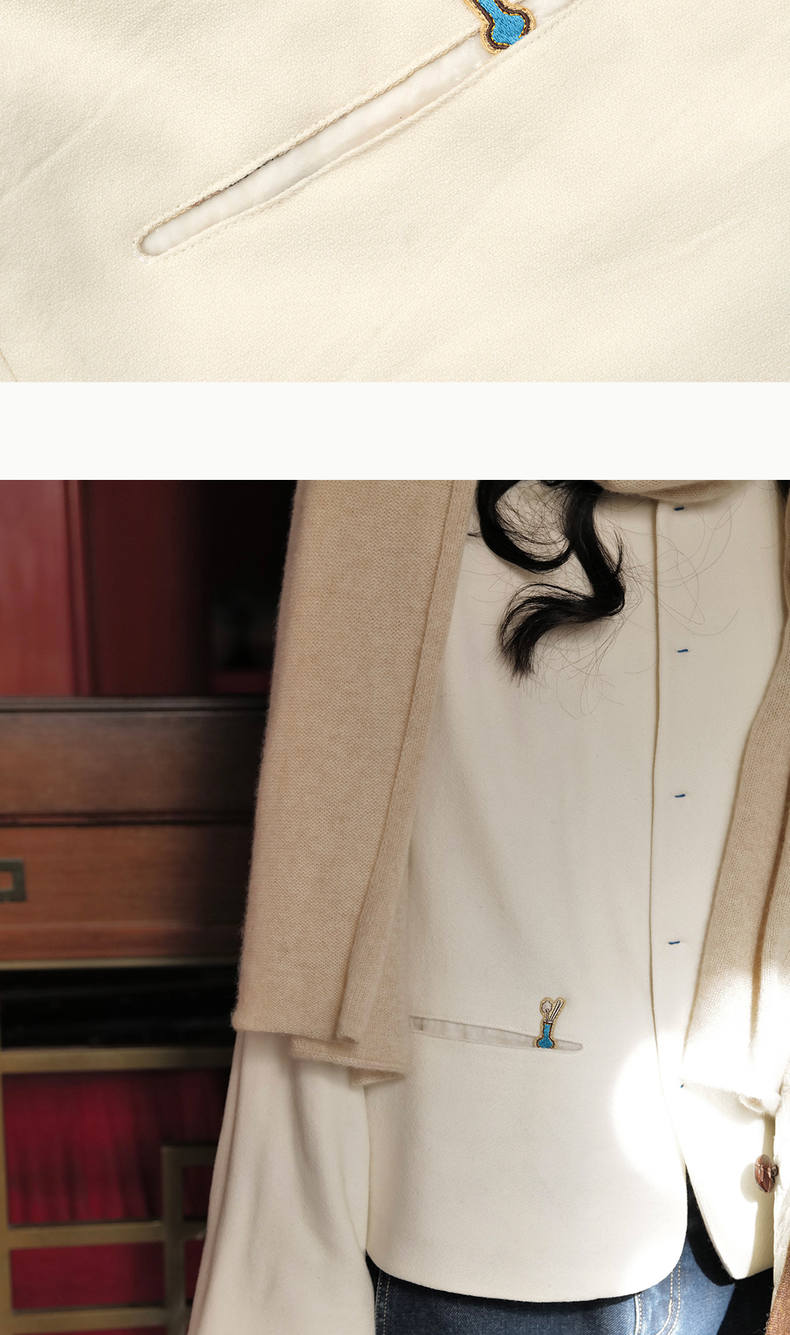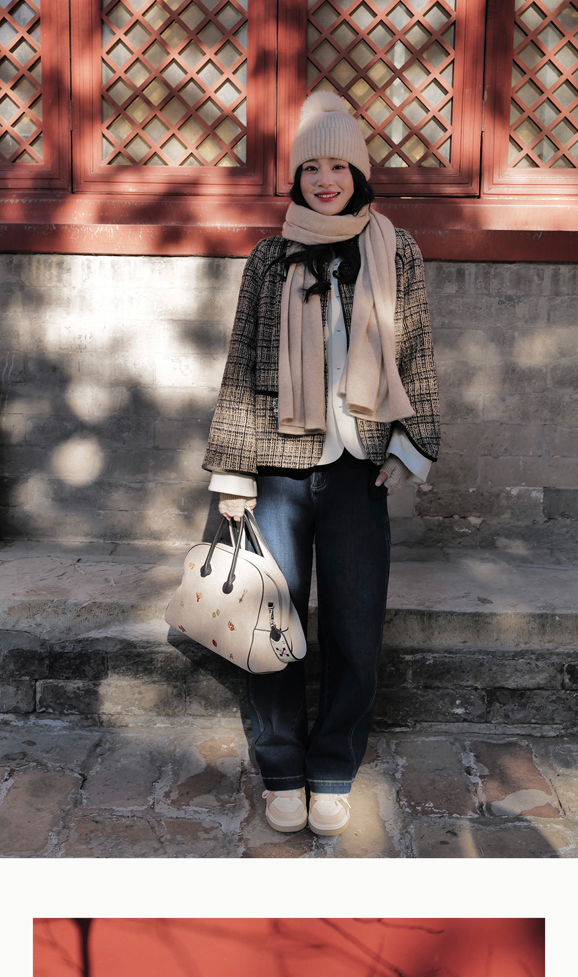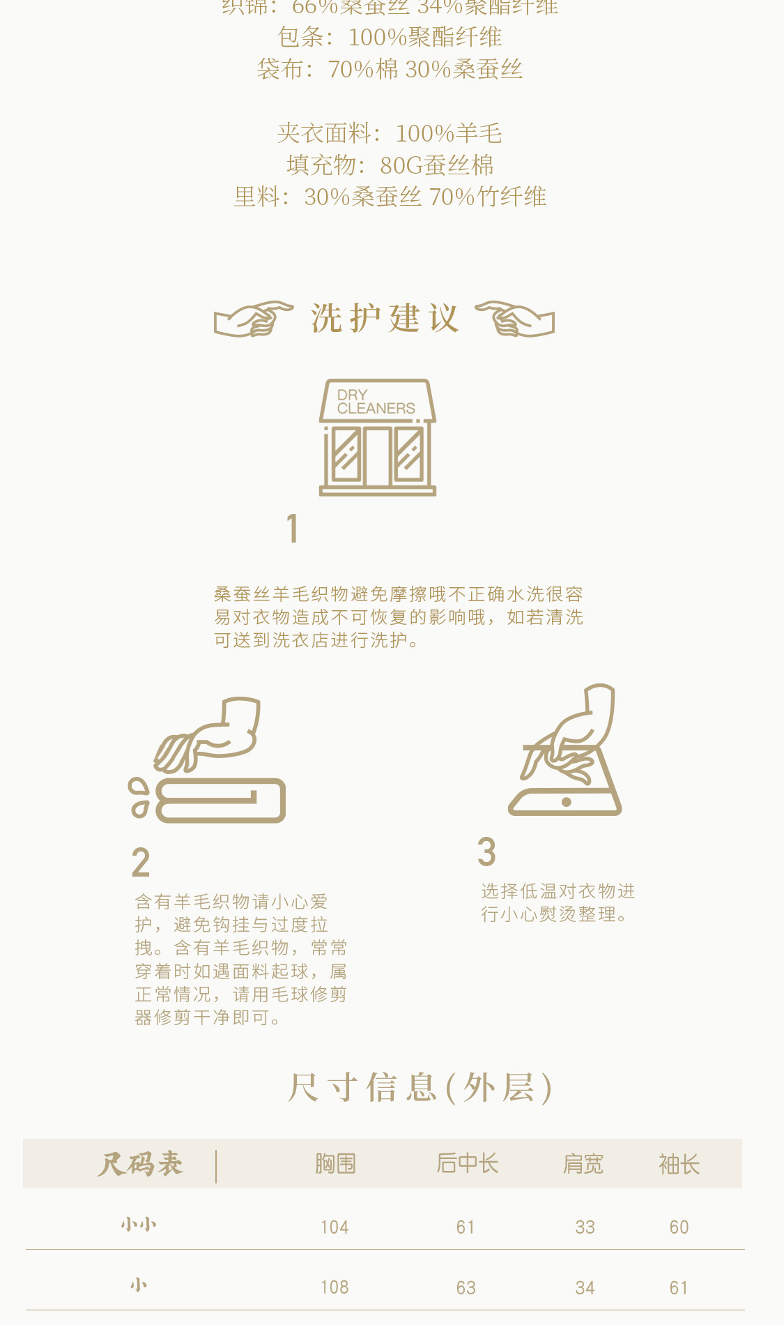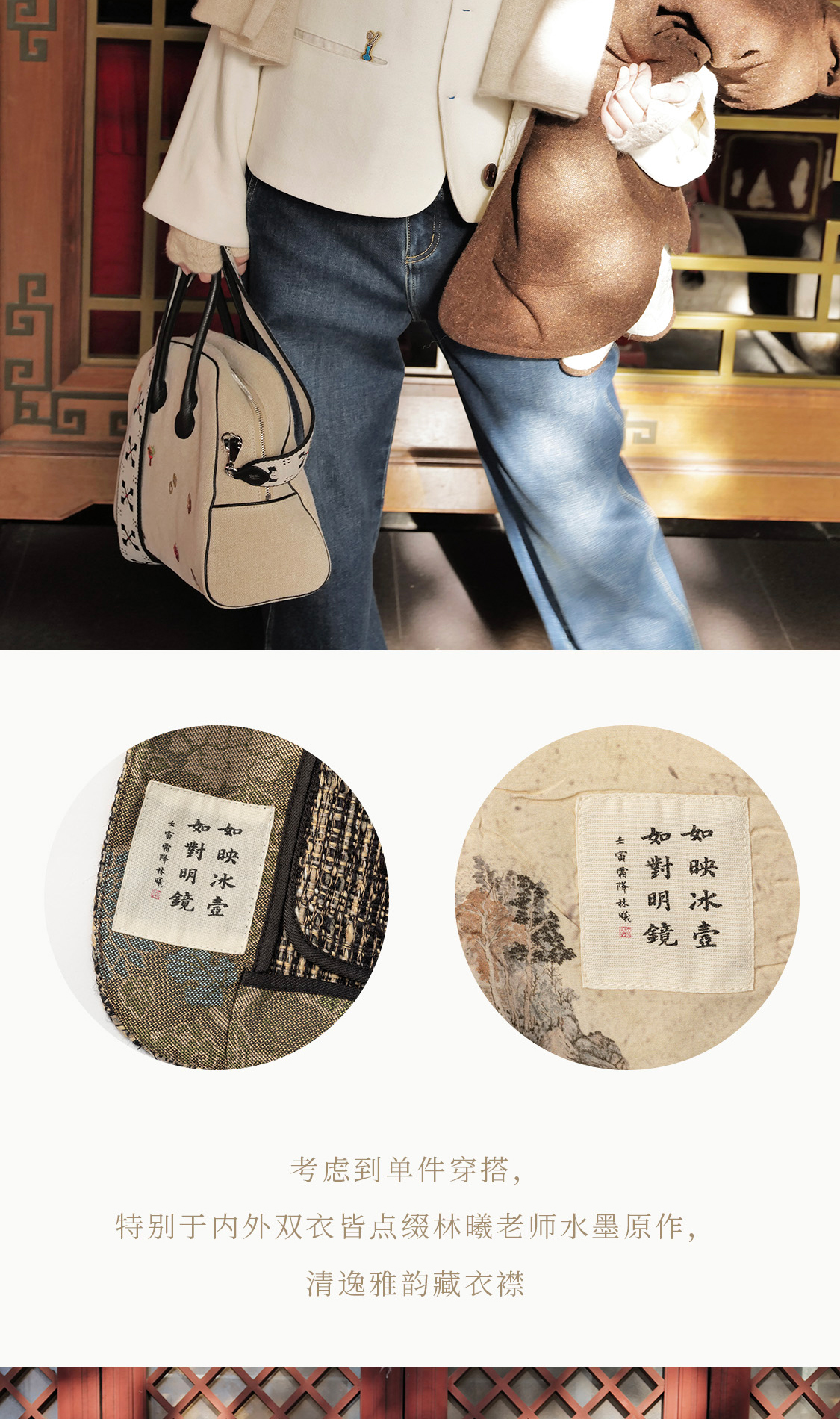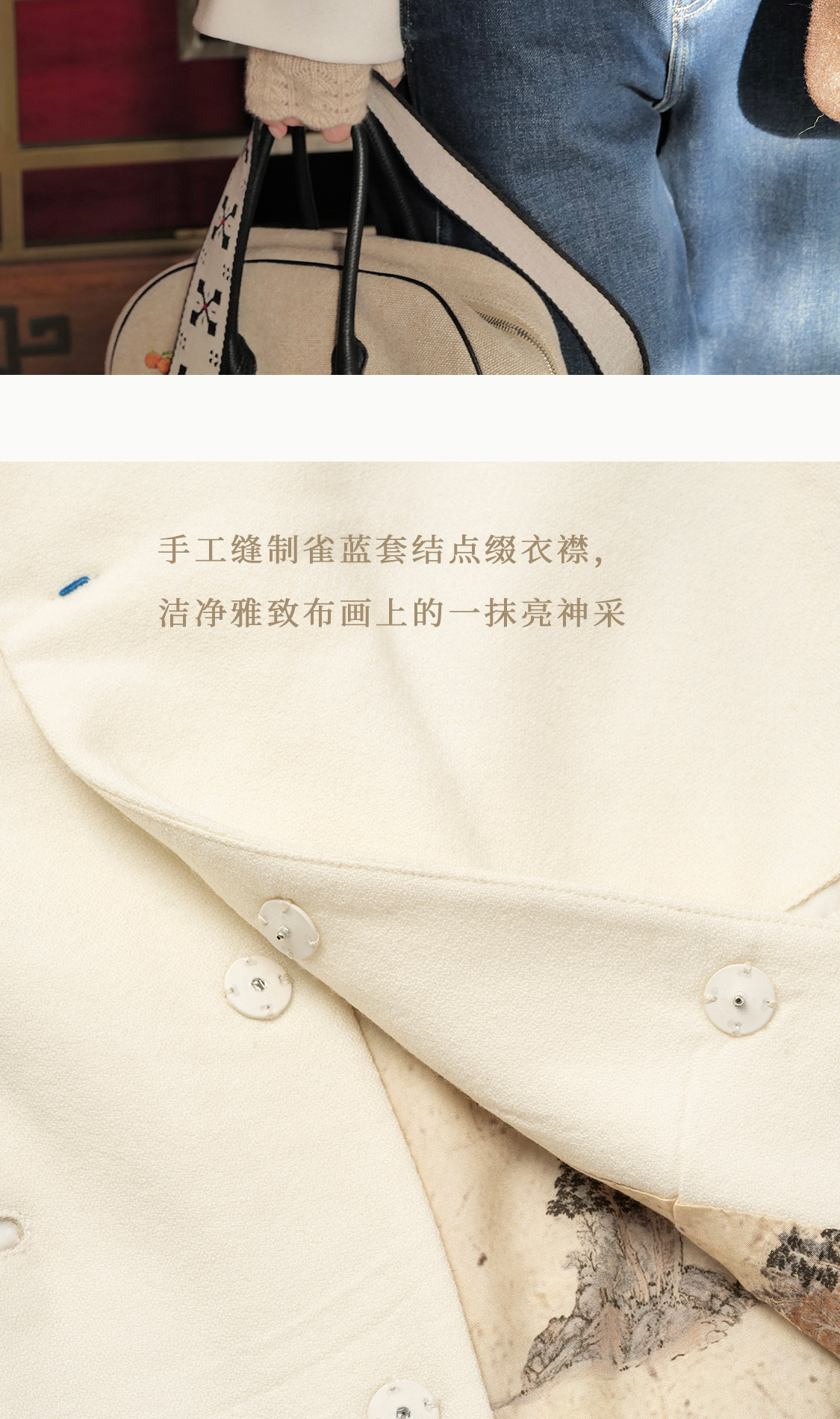 松烟香 中式羊毛粗花呢蚕丝竹纤维夹衣葵口领对襟外套 两件套