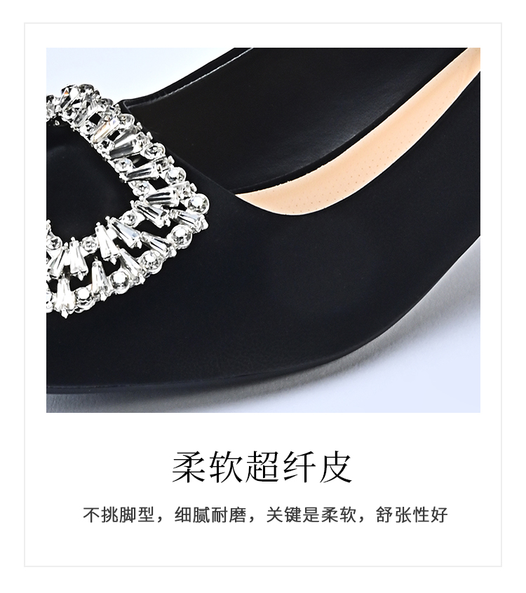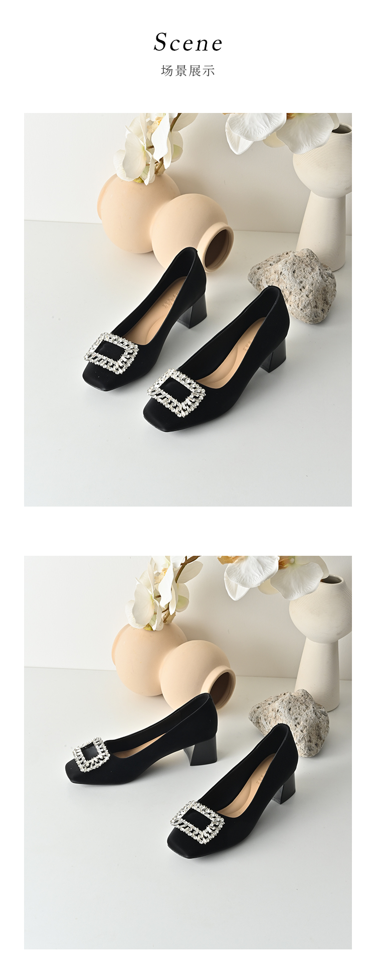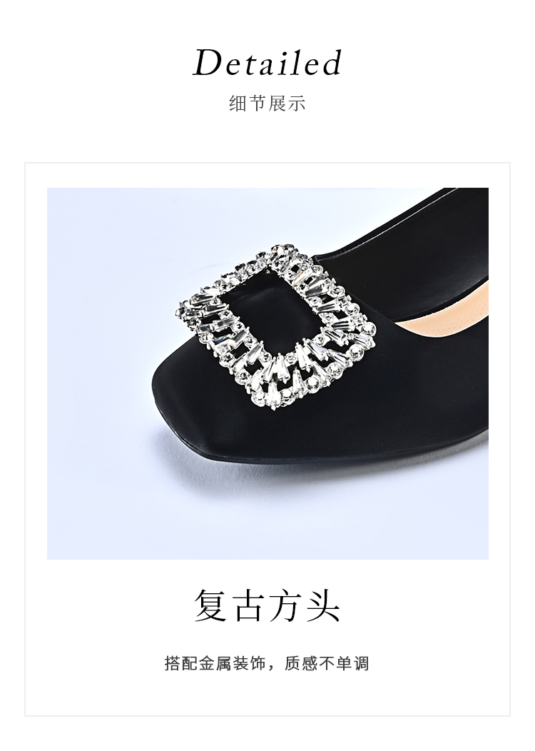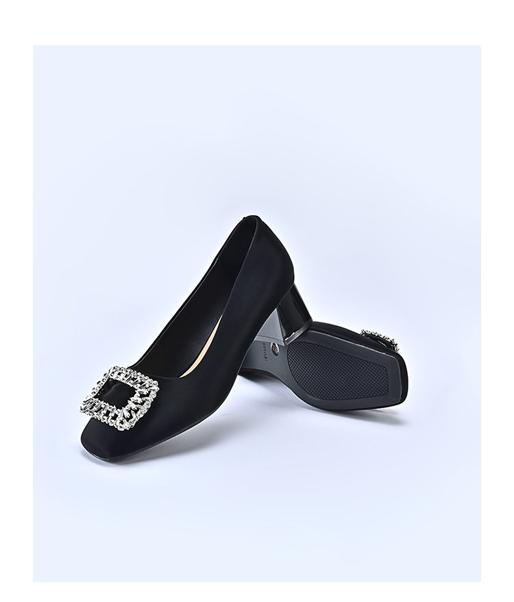 经典鲨2026年春专柜新品时尚方头黑色中粗跟气质水钻单鞋女KW127-617021