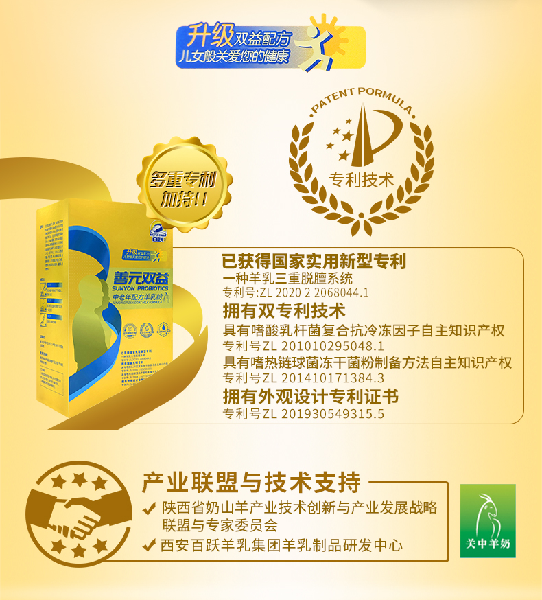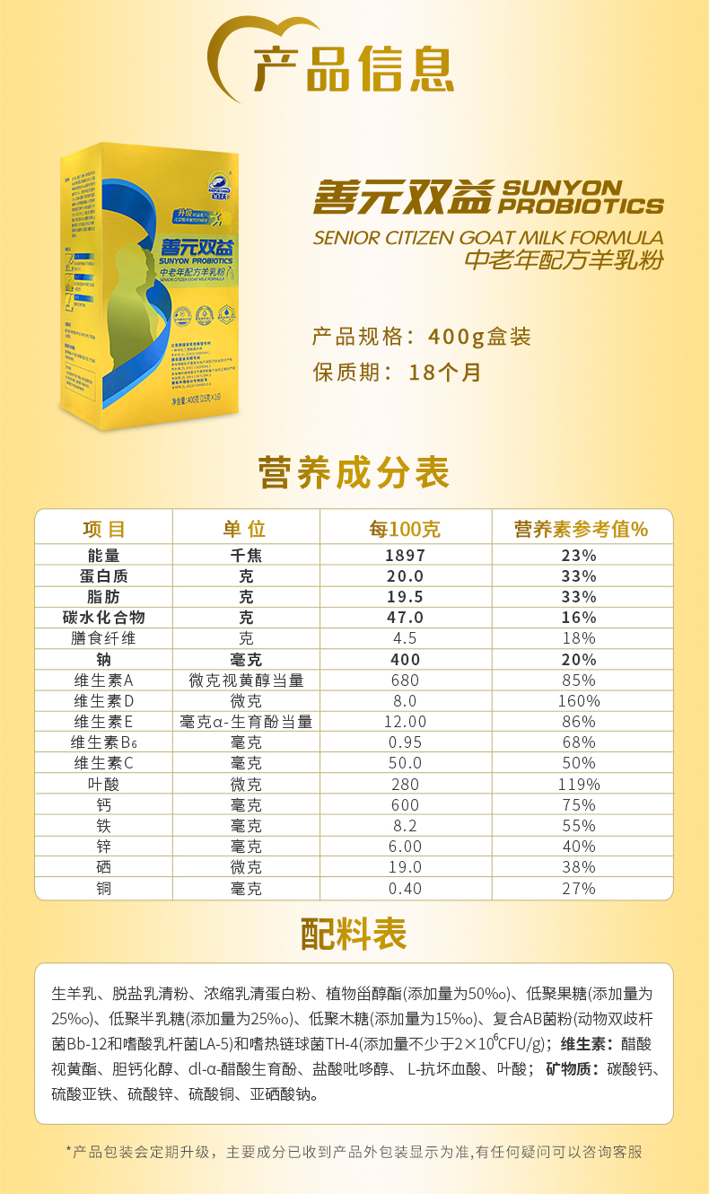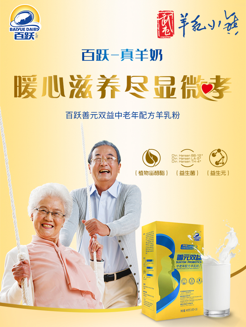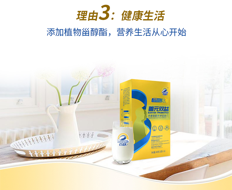 【专利产品】百跃中老年配方羊乳粉善元双益系列羊乳粉400克盒装