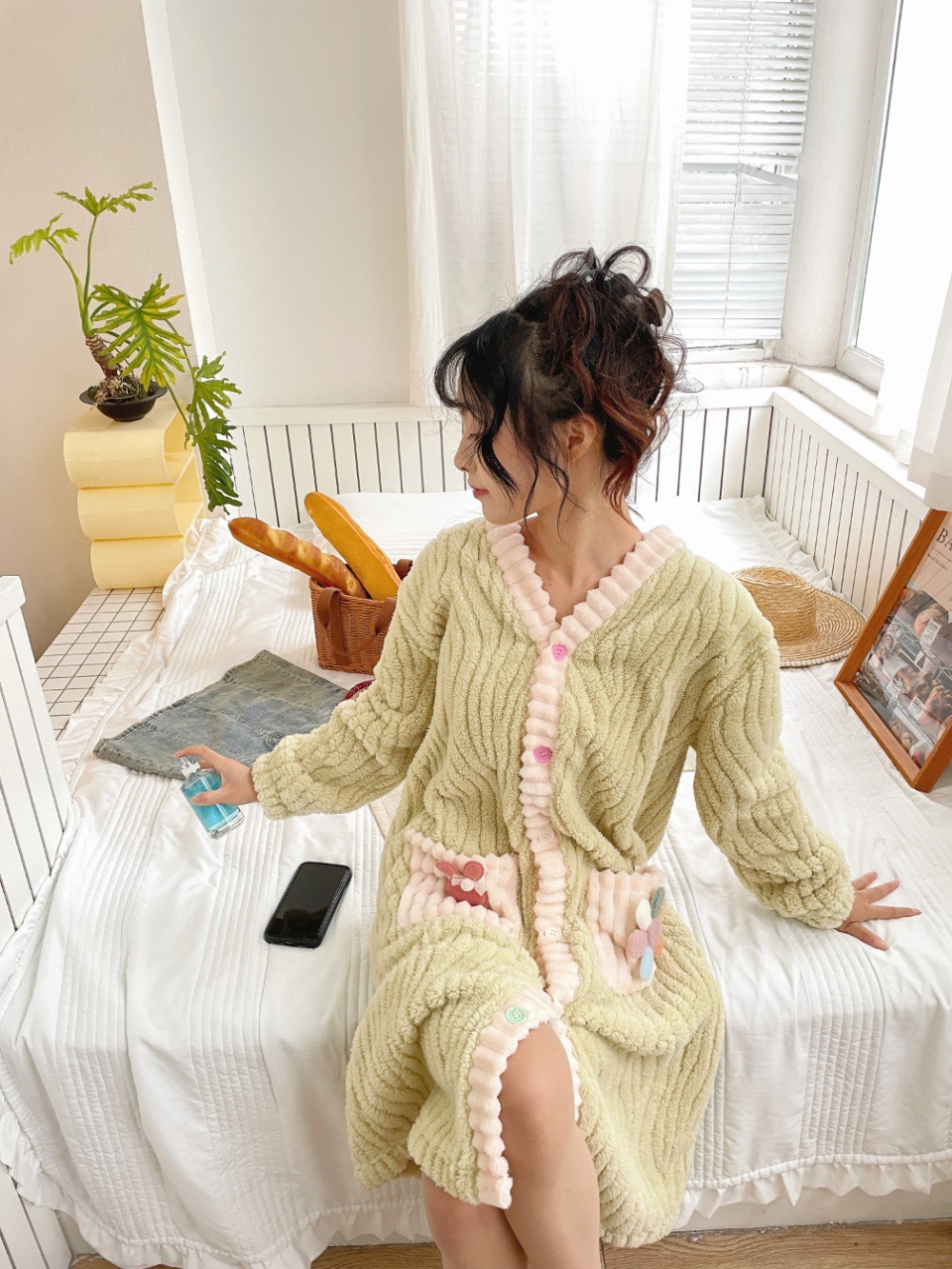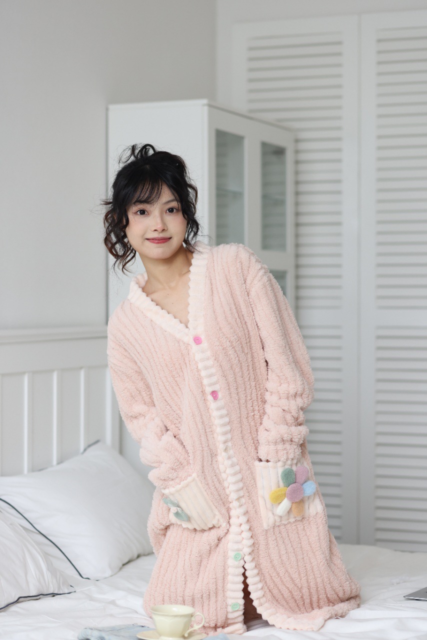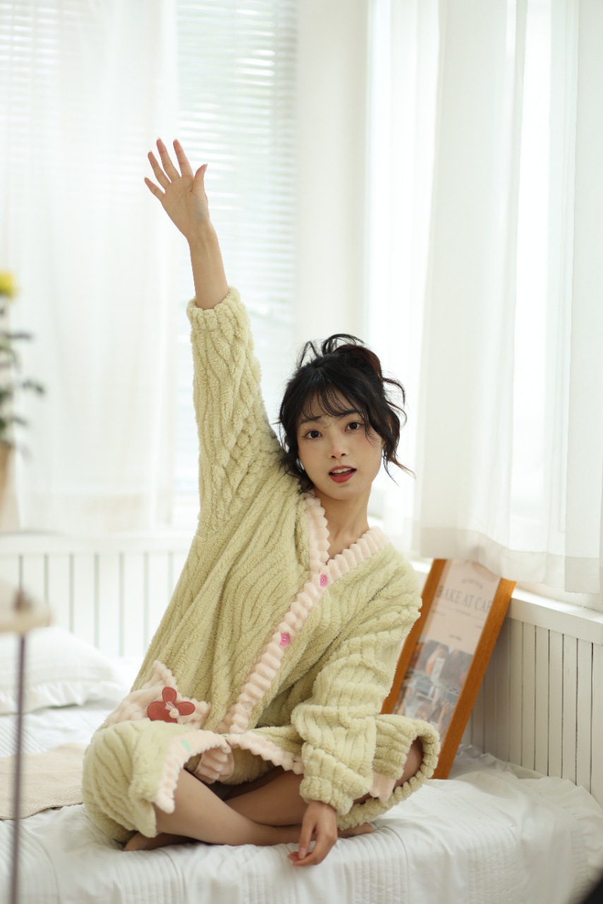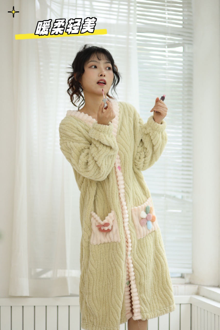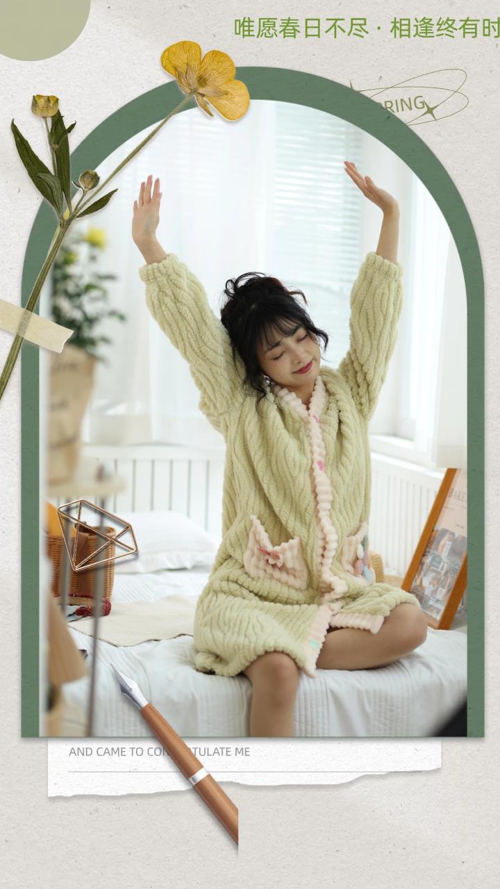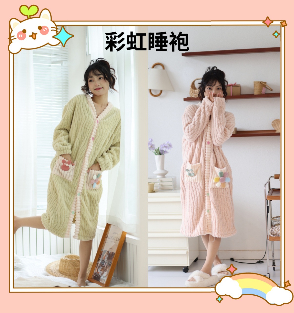 【嘿,选择你的睡眠搭档”】秋冬款彩虹开衫睡袍暖暖套装,品质面料不易掉毛,加绒加厚小香风珊瑚绒长款宽松家居服QQ