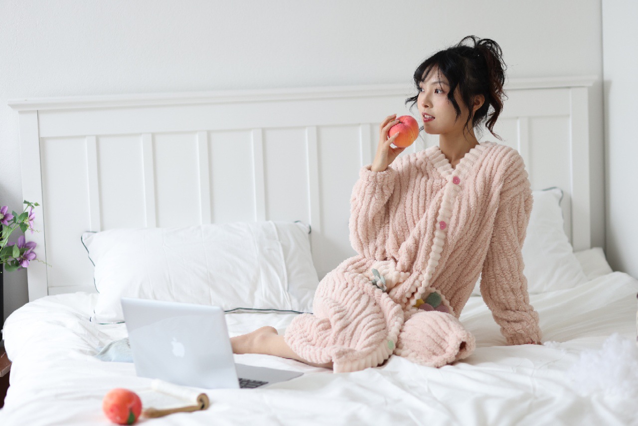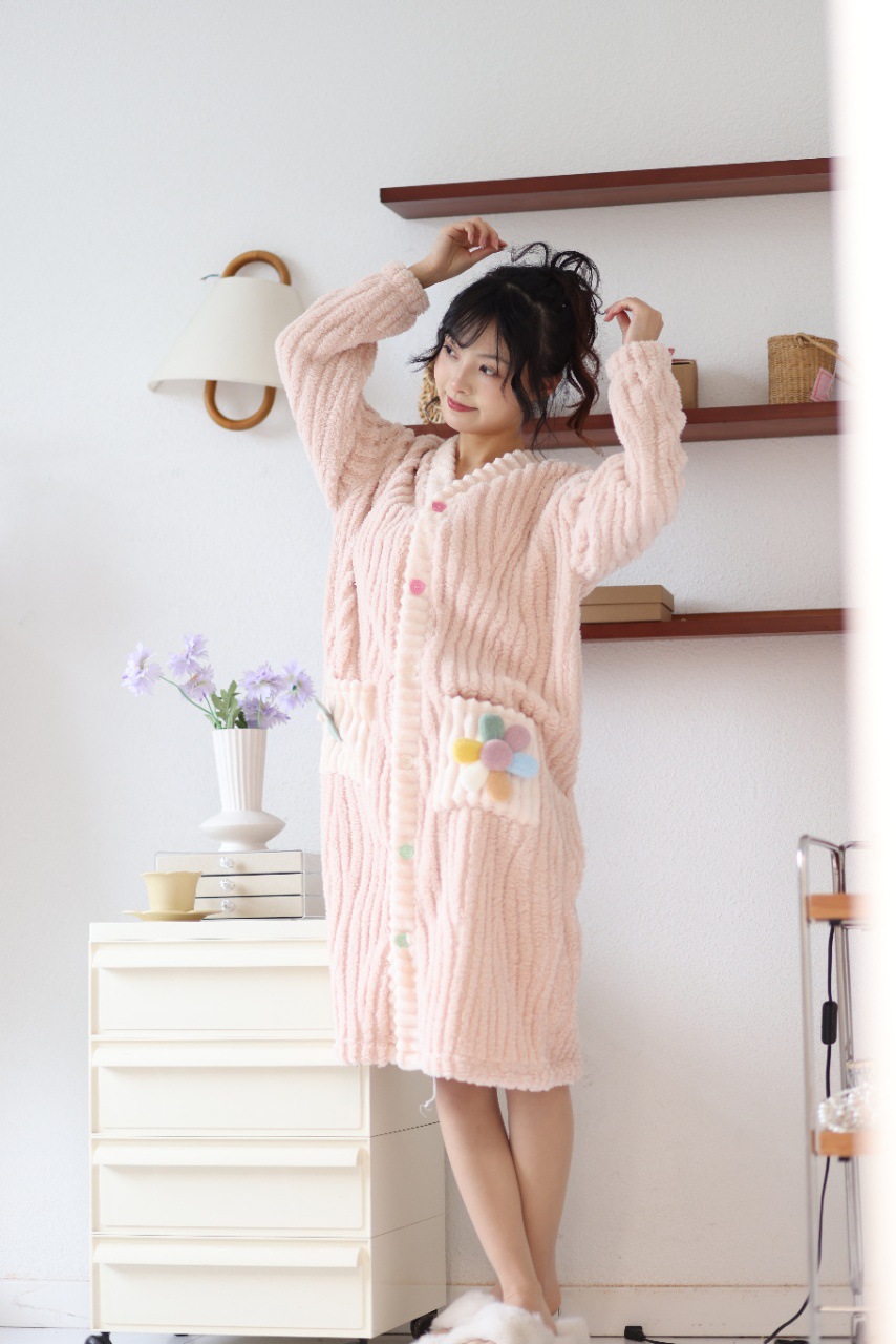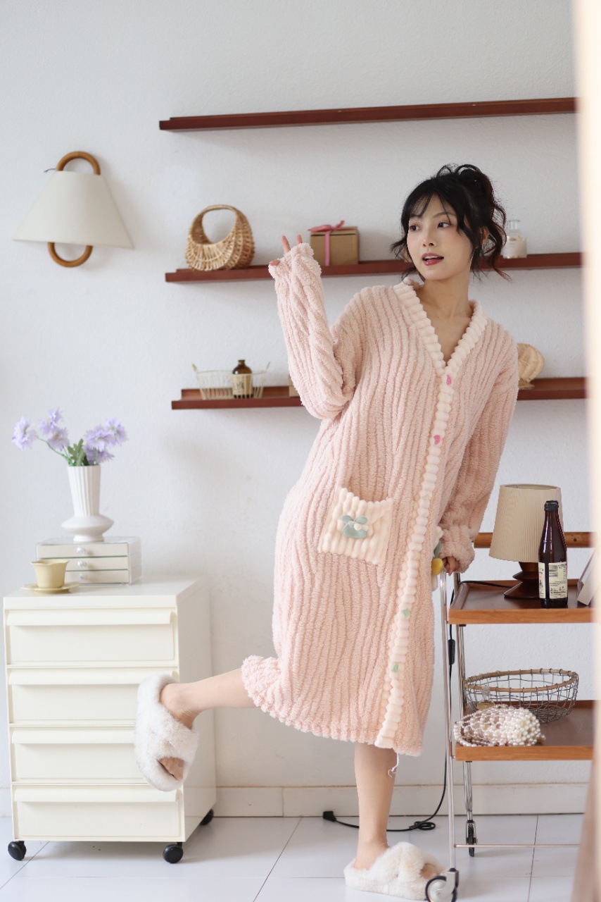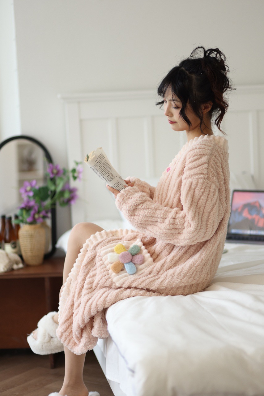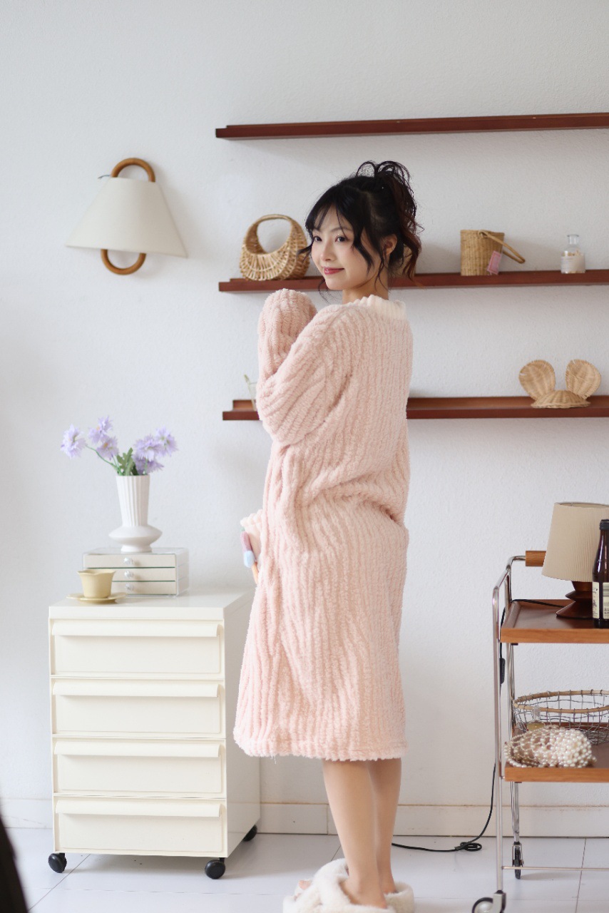 【嘿,选择你的睡眠搭档”】秋冬款彩虹开衫睡袍暖暖套装,品质面料不易掉毛,加绒加厚小香风珊瑚绒长款宽松家居服QQ