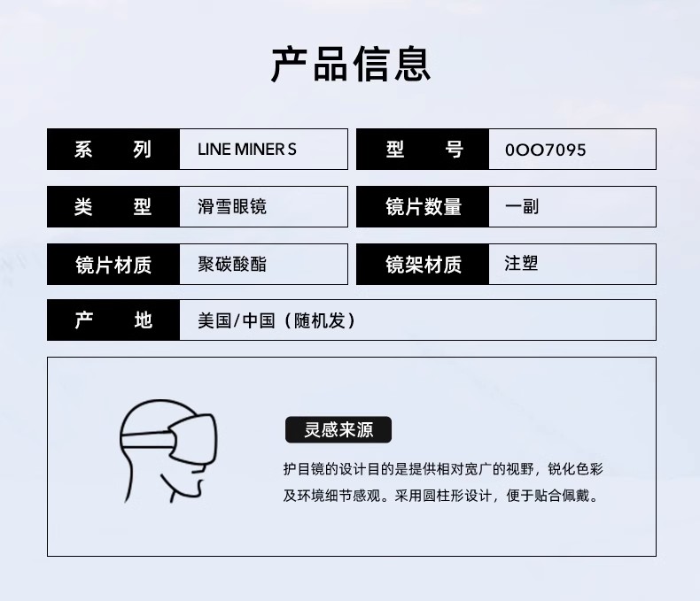 【五折特卖】 Oakley欧克利[LINE MINER]S系列滑雪眼镜户外男女雪镜护目镜 OO7095