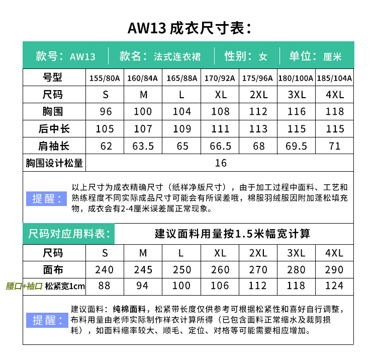 裁缝学苑 AW13法式赫本连衣裙1:1实物服装纸样剪裁图纸牛皮纸样