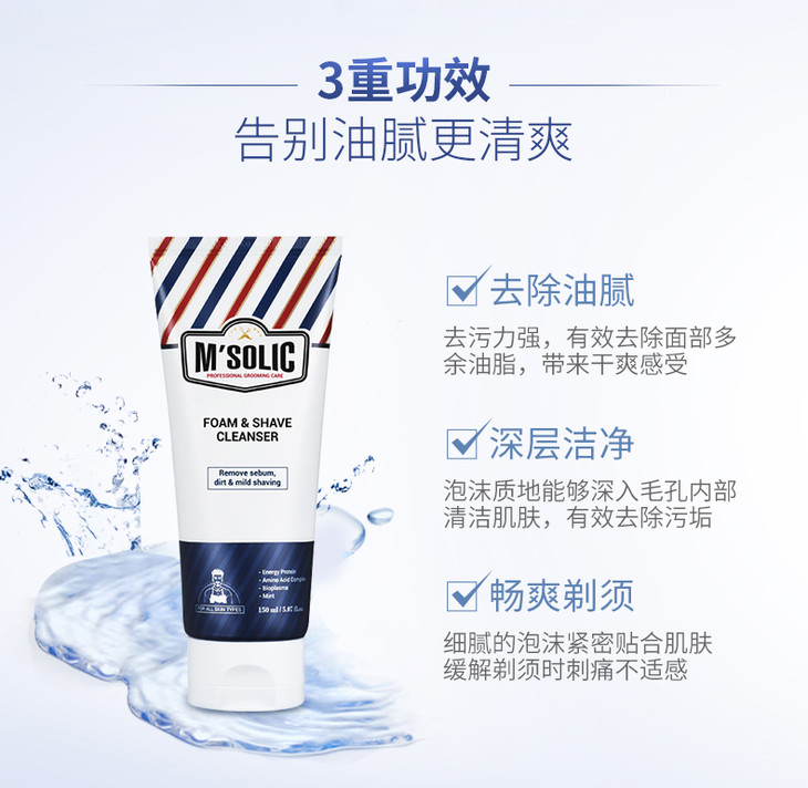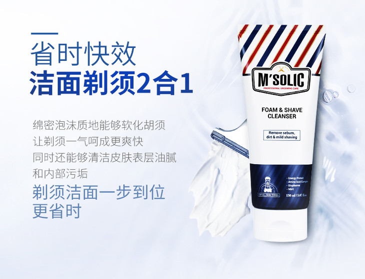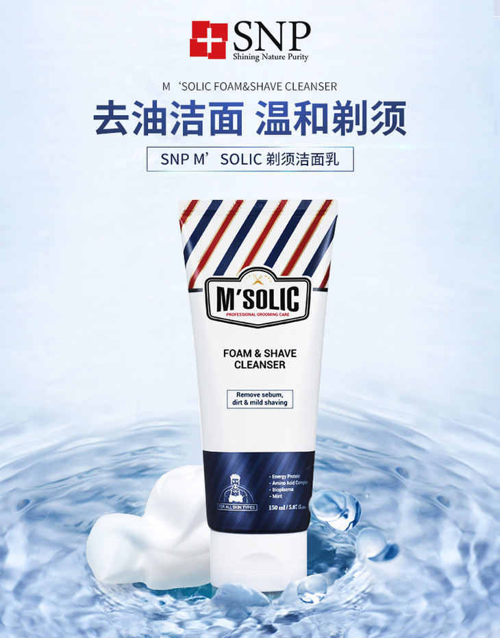 【家用电器】【SNP】。SNPM'SOLIC男士剃须洁面乳150ml 温和深层清洁舒缓肌肤洗面奶