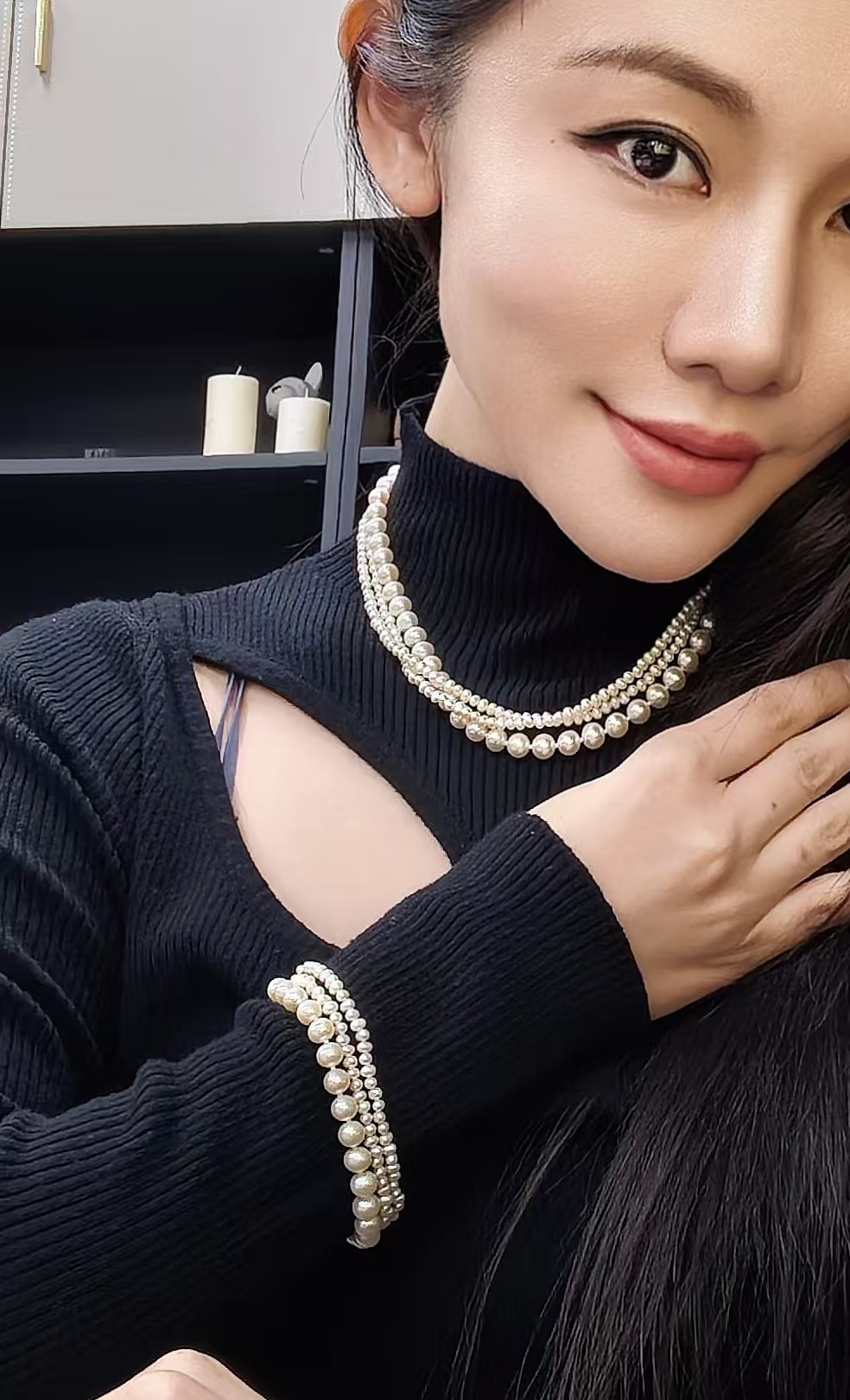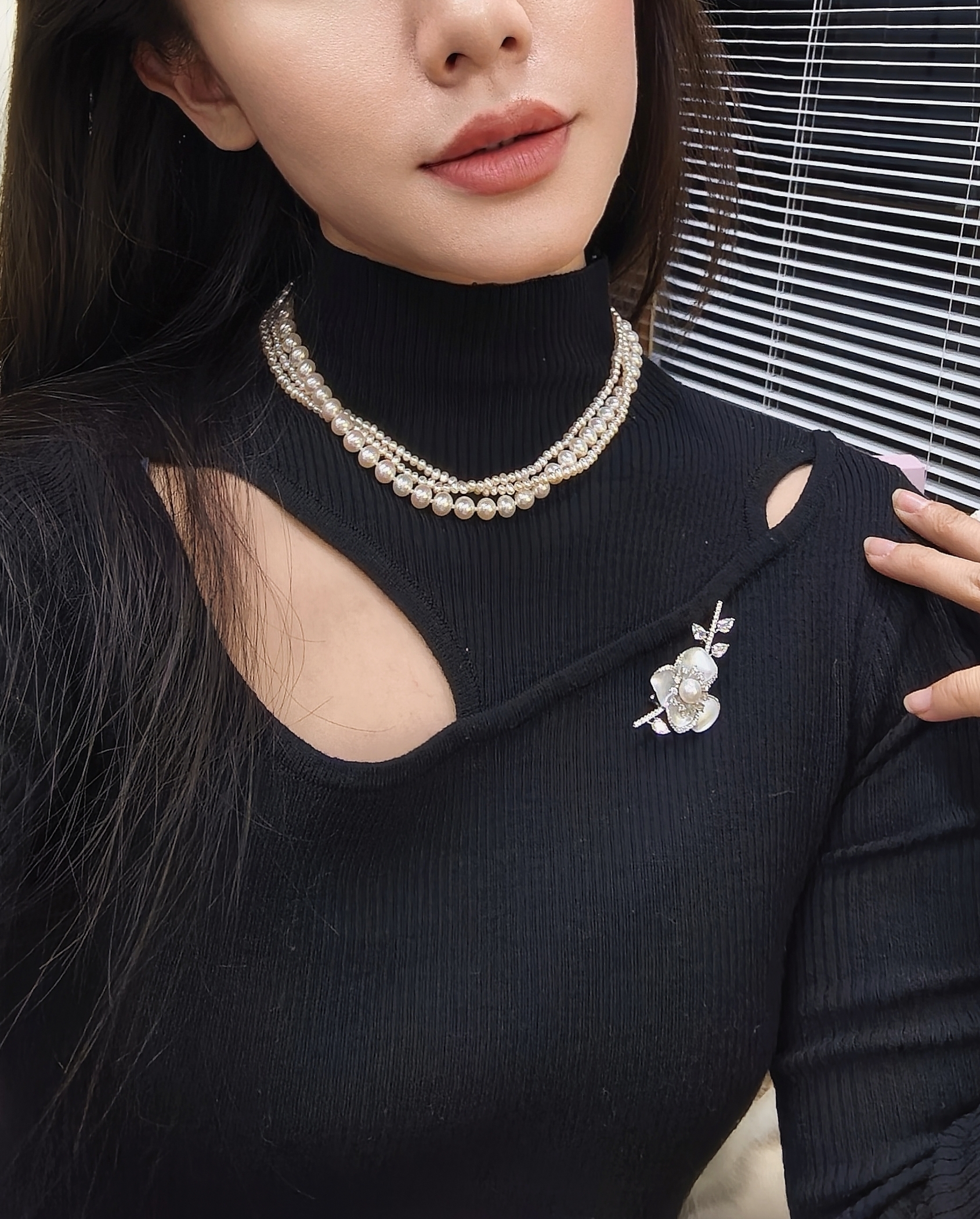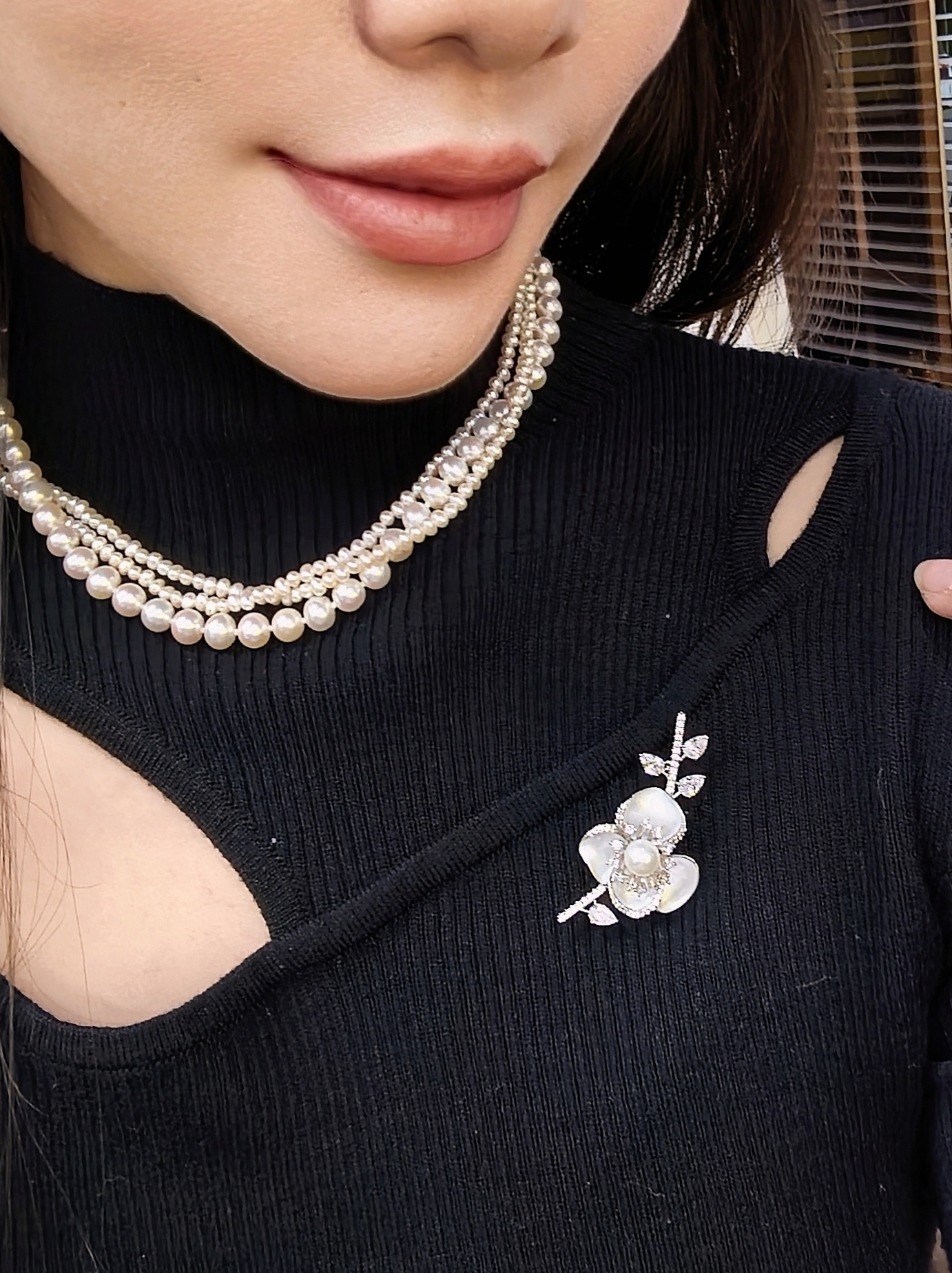 阮仕蕾丝系列 S925银淡水珍珠项链 3-3.5mm/6.3-7.3mm NH3-7.3LS-1D