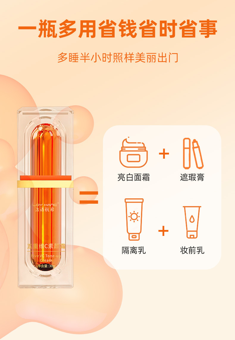 【19.9抢!五重维C素颜霜 】自然美颜有妆似无妆,提亮遮瑕隔离水润保湿素颜霜vc,懒人霜面霜学生党不假白持久不脱妆QQ