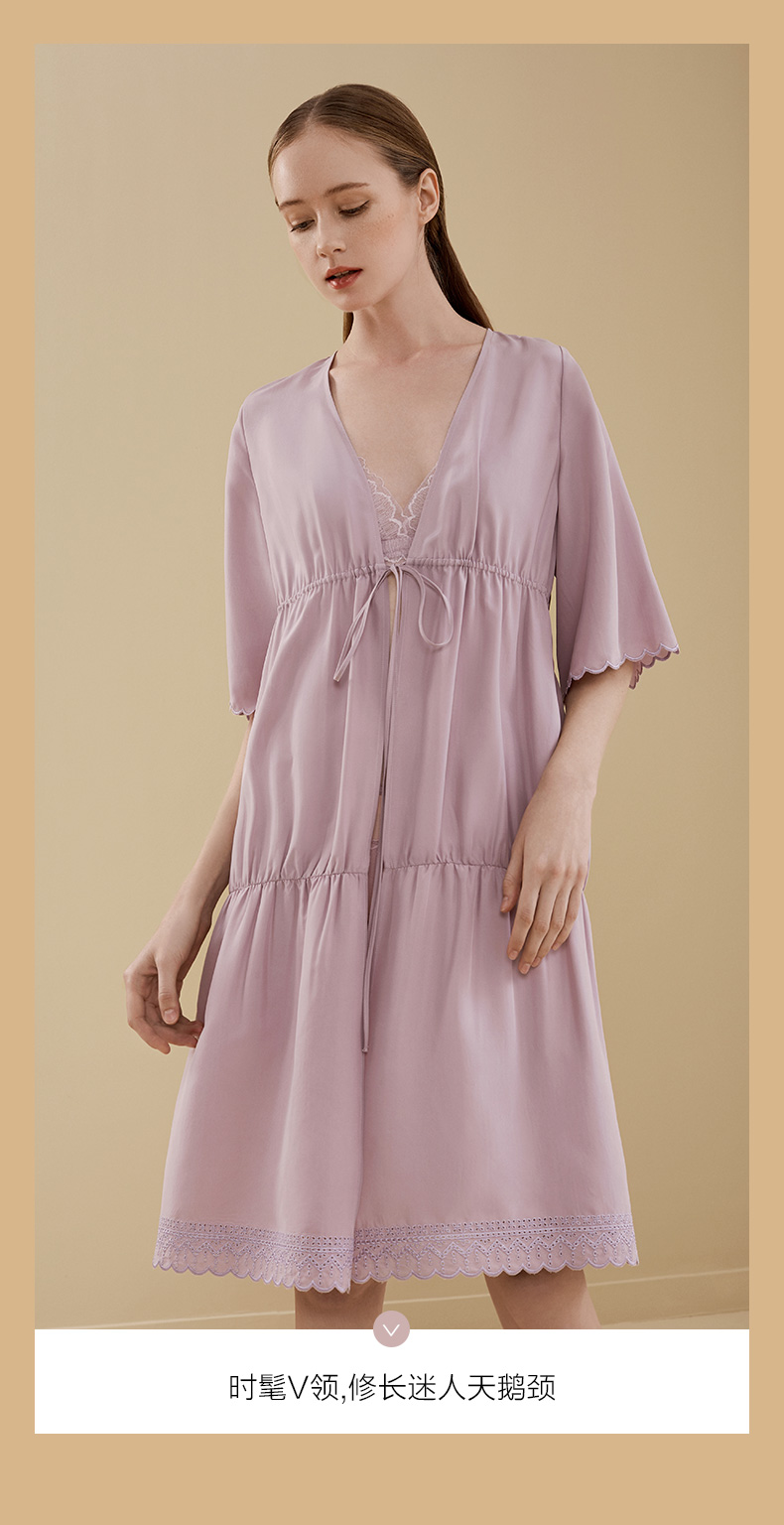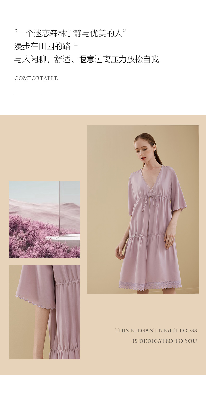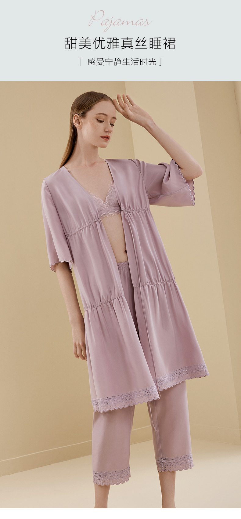 金三塔真丝素色睡袍100%桑蚕丝晨袍家居服睡衣女YSFBB101