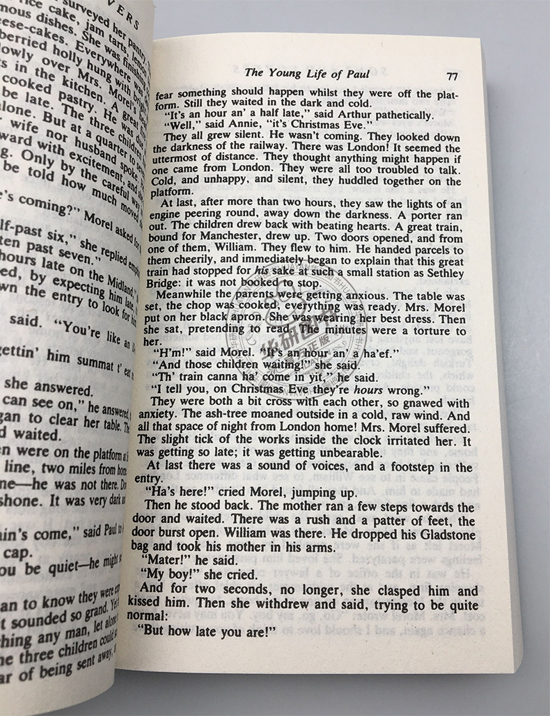 Sons and Lovers《儿子与情人》是劳伦斯的首部长篇小说。小说风靡世界文坛,魅力至今不减。小说中的父亲莫瑞尔是矿工,由于长年沉重的劳动和煤井事故使他变得脾气暴躁,母亲出生于中产家庭,有一定教养。夫妇不和,母亲开始厌弃丈夫,把全部感情和希望倾注在孩子身上,由此产生畸形的母爱。主人公保罗•莫瑞尔与初恋情人米莉安和已婚妇女克拉拉之间的恋情中,饱受肉与灵的挣扎之苦,直到他母亲病故。