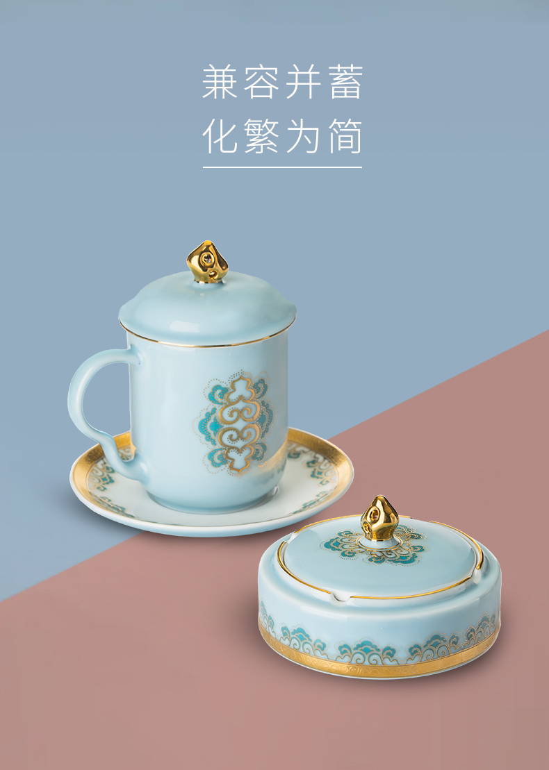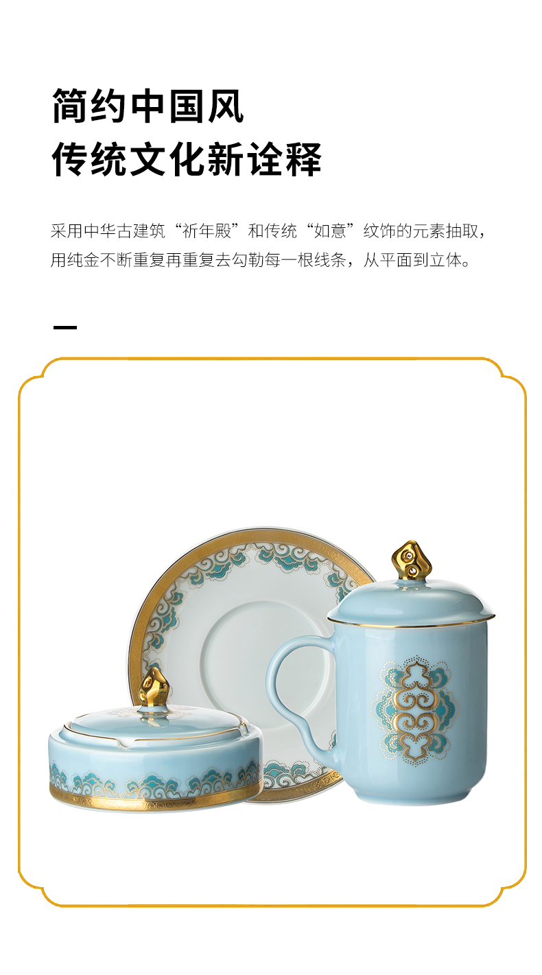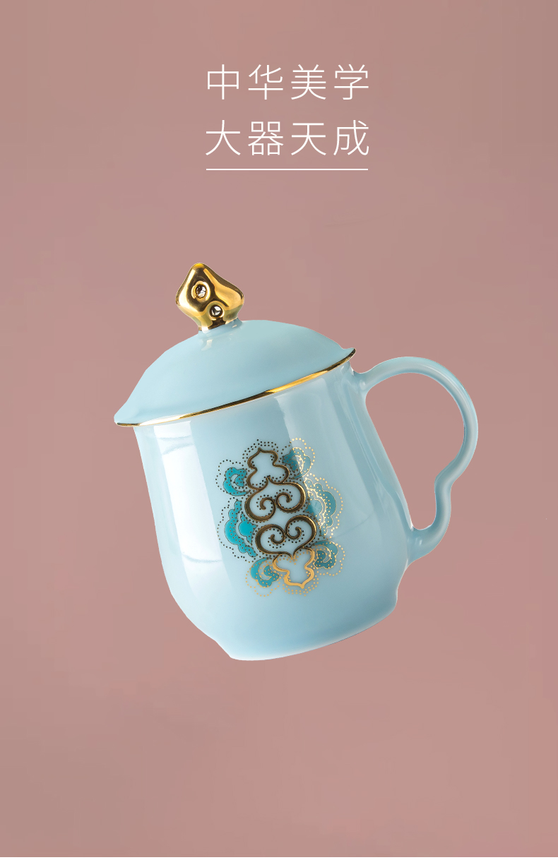 【宝瓷林】单杯 天青墨彩山水束腰杯