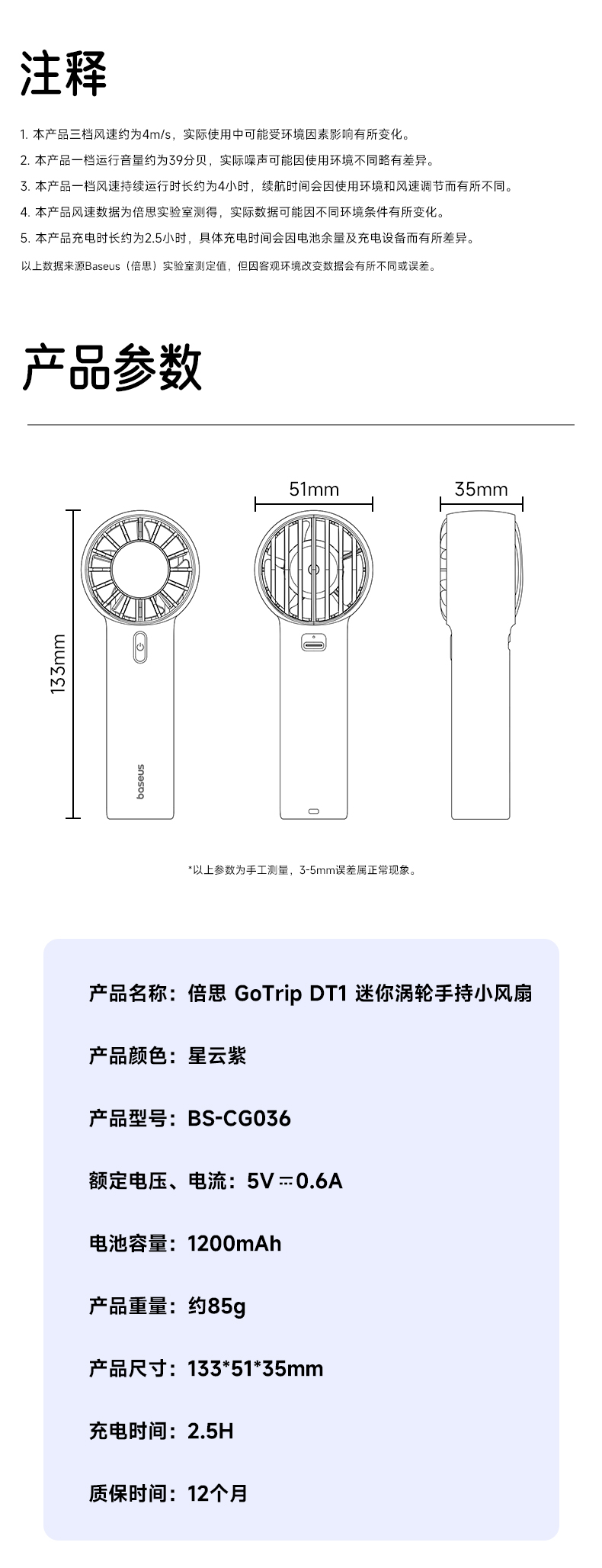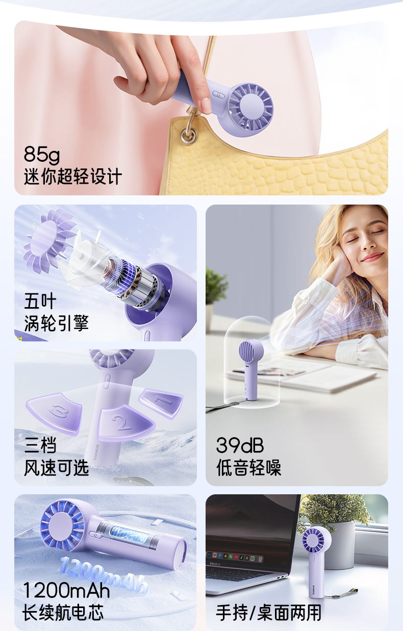 【十一专享】倍思 GoTrip DT1 迷你涡轮手持小风扇