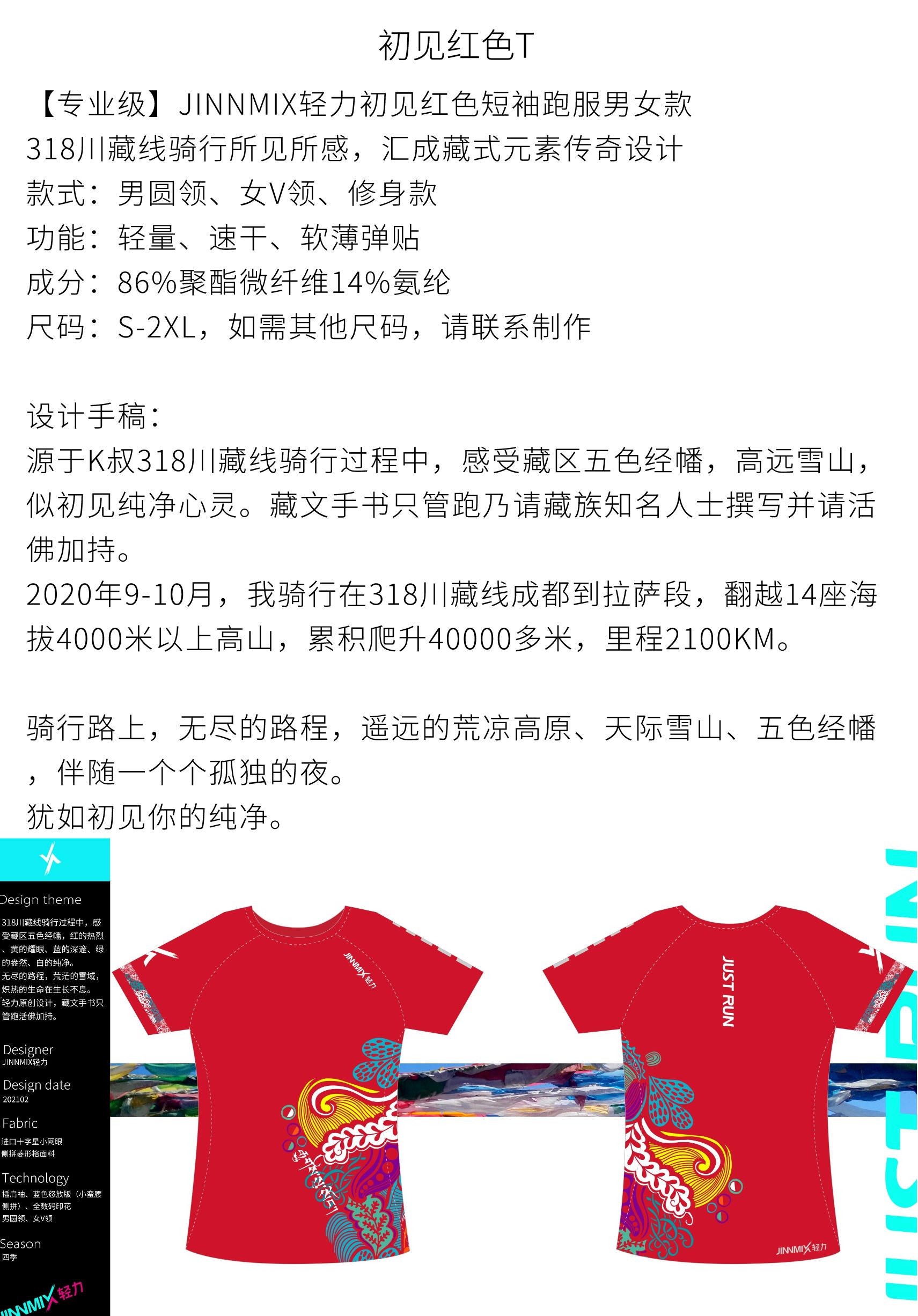 【专业级】JINNMIX轻力初见红色短袖跑服男女款