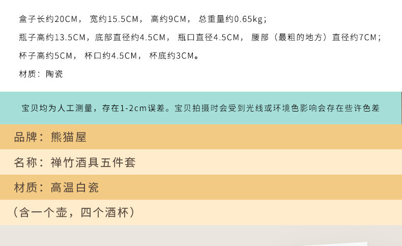 熊猫屋PANDAHOUSE 禅竹酒具套装 送纸袋