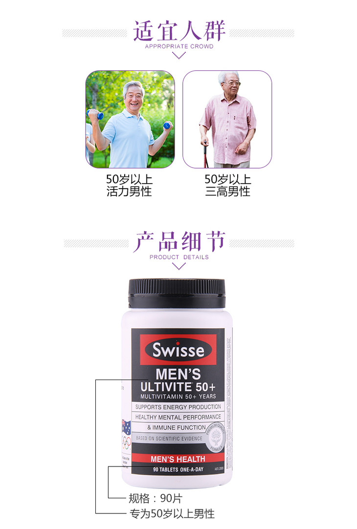 【香港直邮】澳洲原装进口Swisse中老年男士50岁以上专用复合维生素90粒