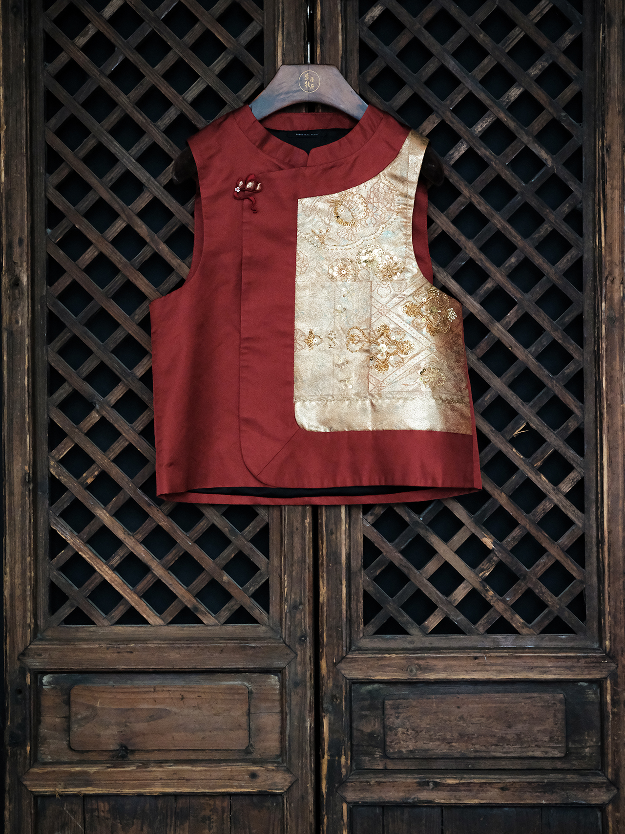 盛唐牡丹|法式手工串珠西阵织马甲-红色