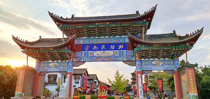5、云南民族村,展示云南多元民族文化的主题公园,景区内复刻有云南25个少数民族的典型村寨,门票90元(学生、老人半价,1.2米以下儿童免费)。