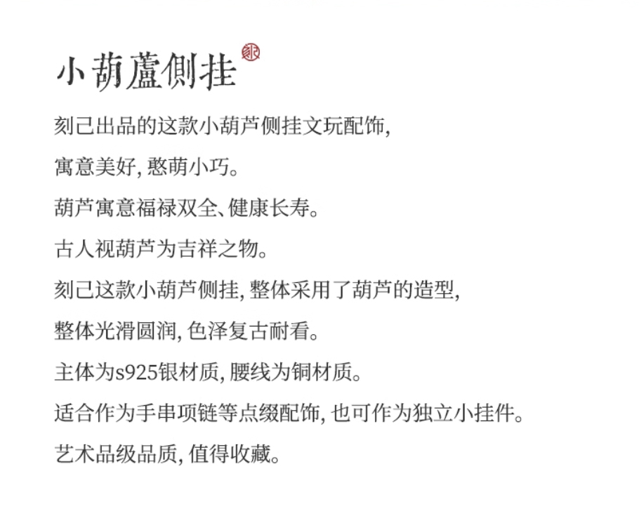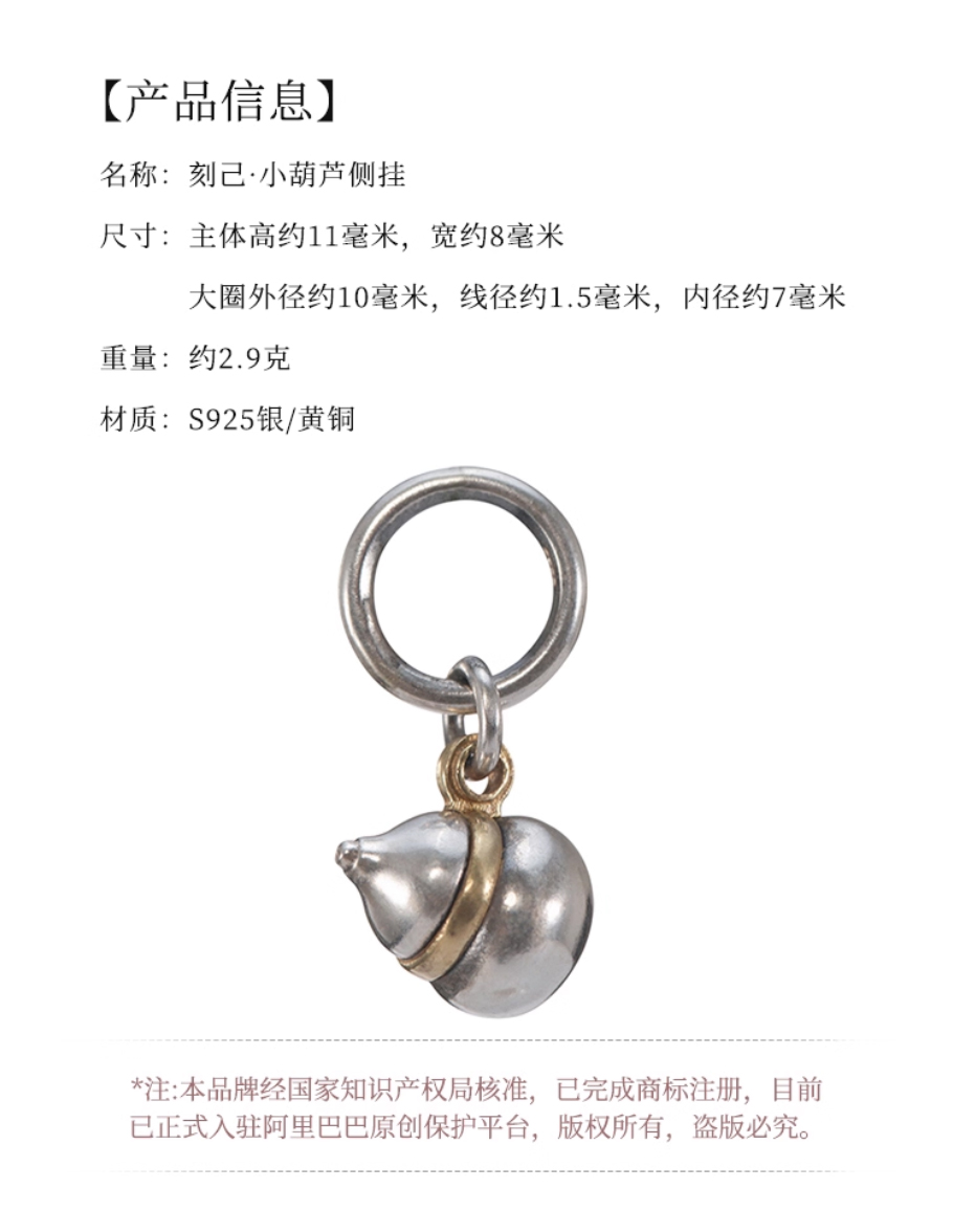 刻己 - 小葫芦侧挂 S925银黄铜 银葫芦diy饰品配件文玩手串配饰隔珠吊坠【官方授权 】【48小时发货】