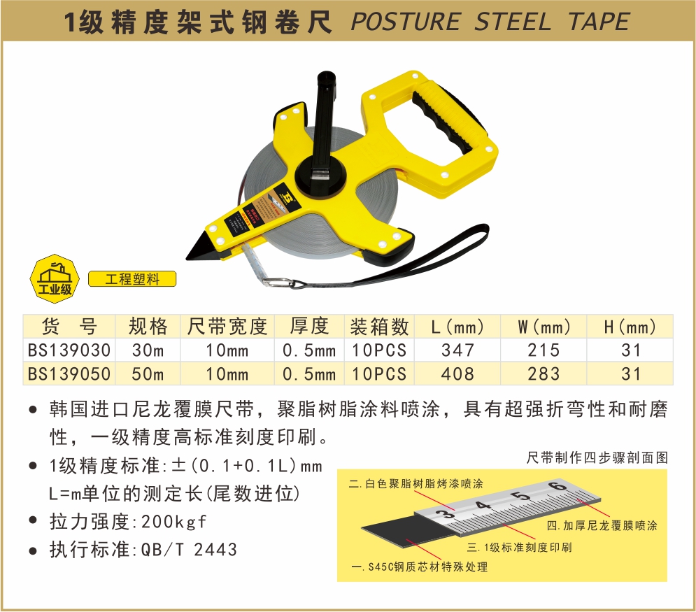波斯1级精度架式钢卷尺韩国进口尺带30m50m BS139030/BS139050