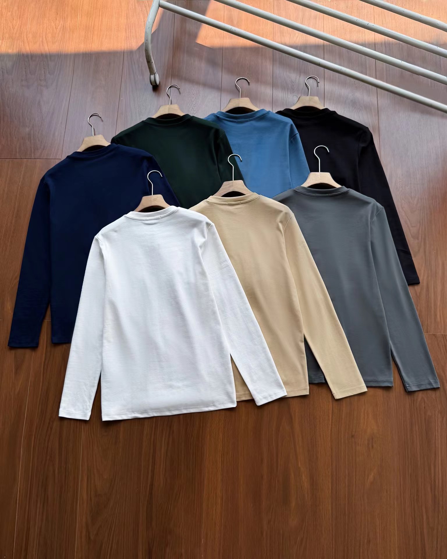 男装男款刺绣标棉质长袖T恤 纯色丝光棉 七色可选 圆领打底衫 面料舒适柔软 简约款 品质质感非常好 单穿或者作为内搭都百搭 不会变形和起球 柔软还有弹力 高密的螺纹圆领 做工非常好 非常有质感 颜值品质通通在线 也可以成为百搭T恤