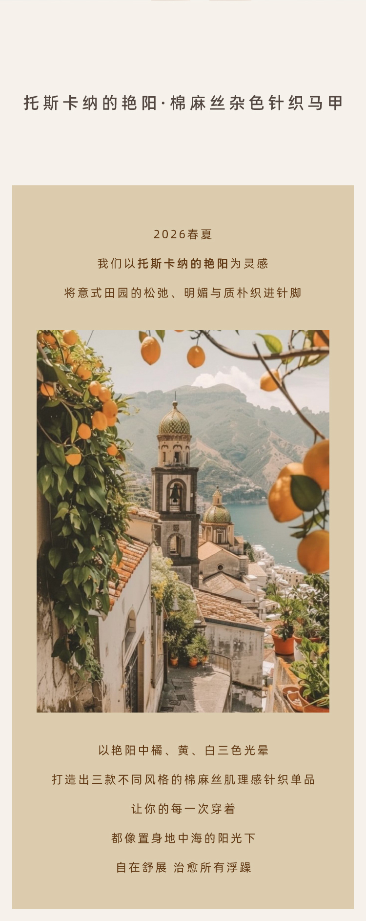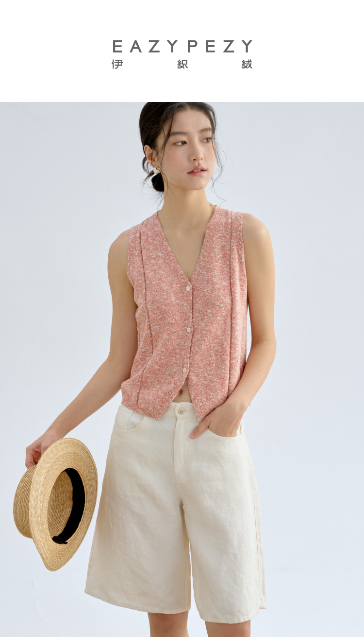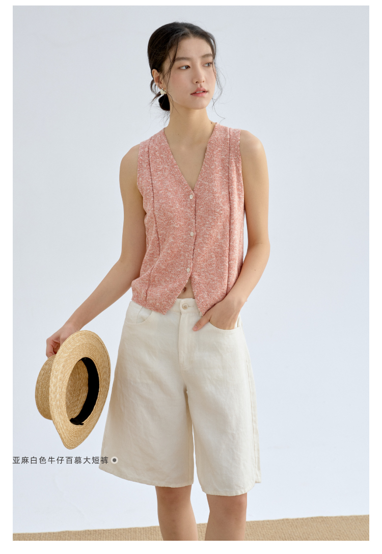 托斯卡纳的艳阳·棉麻丝杂色针织马甲