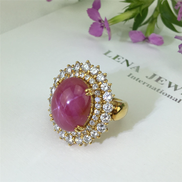 每一块宝石都是上天的恩赐,每一块宝石都有自己的命运,蛋面切工的天然红宝石星光璀璨,在钻石的围绕之下,独一无二。