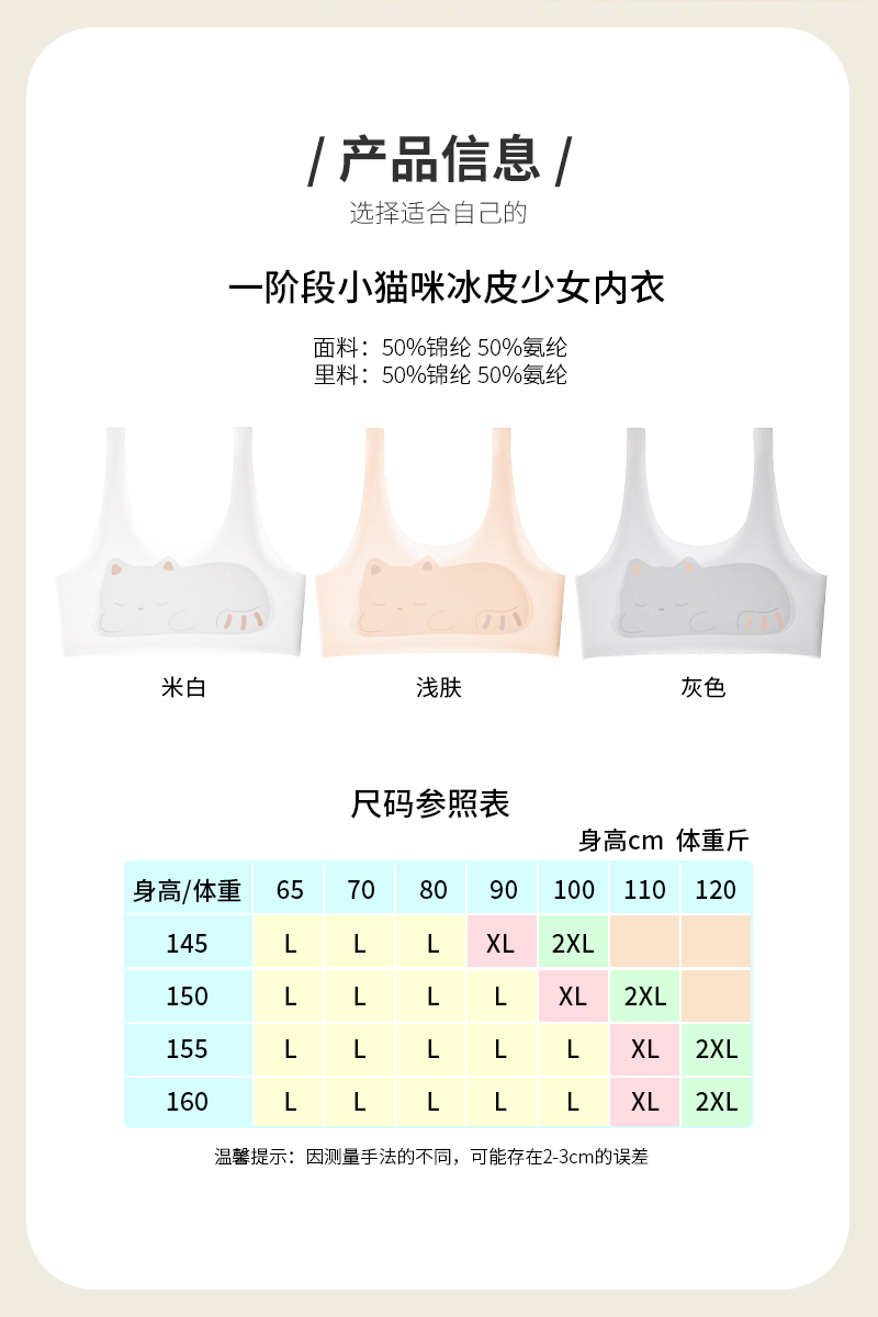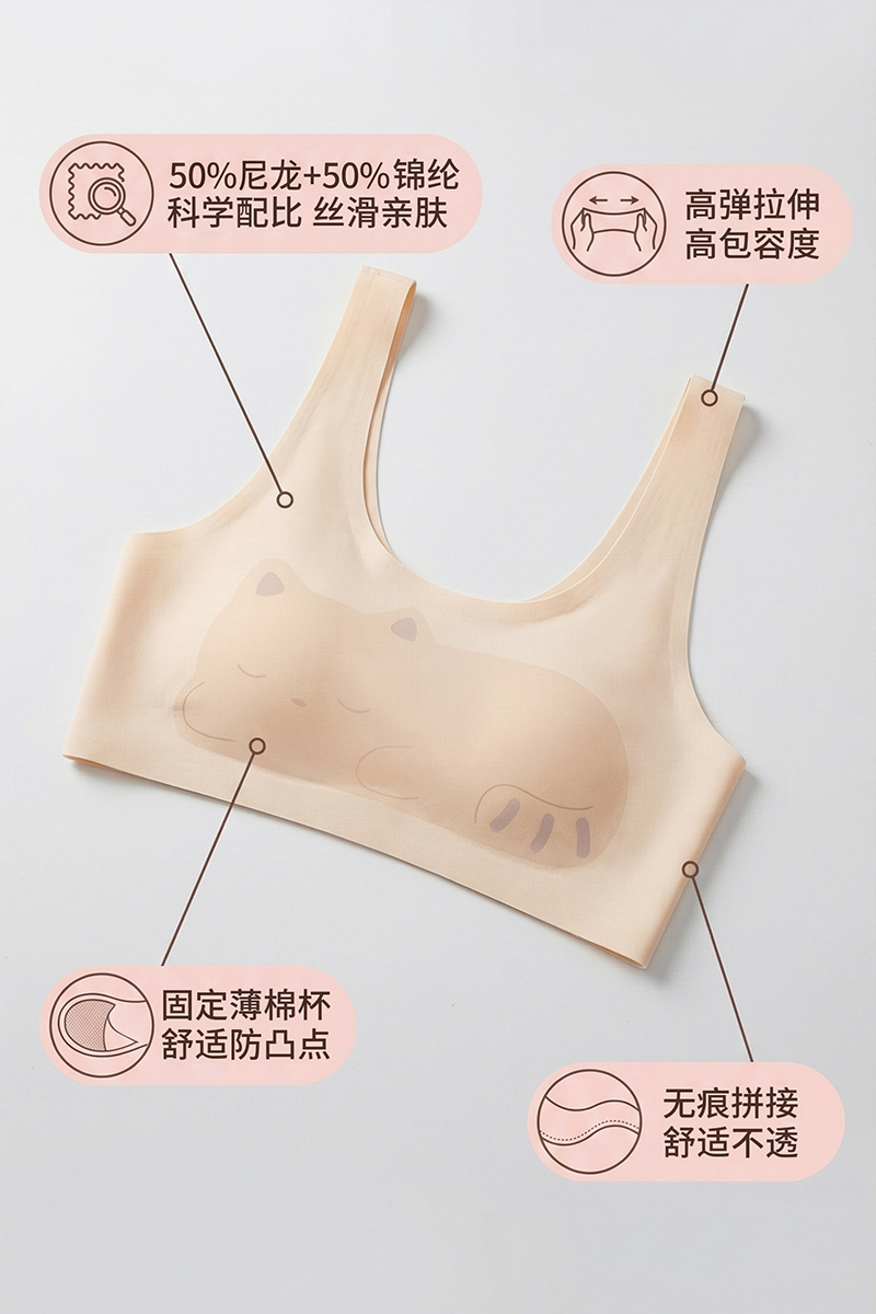 【新款夏款】小冰皮猫咪图案第一阶段少女背心 DC8557 舒服法则