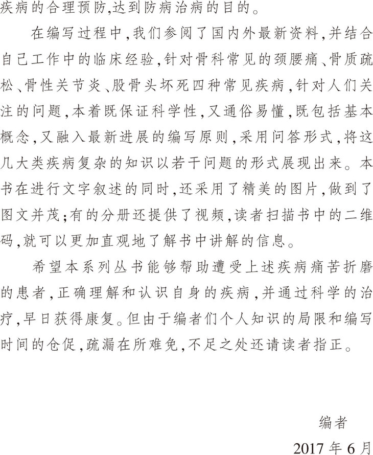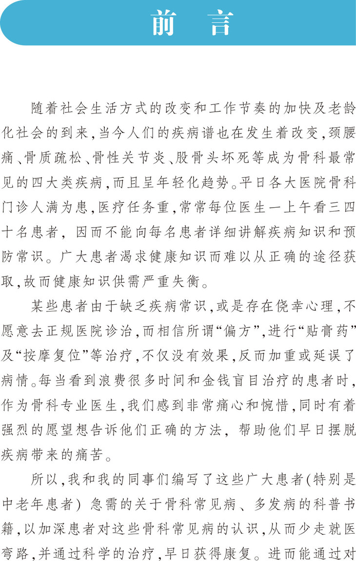 ♥ 本丛书为天津市科普项目,肩负着骨科疾病患者的“家庭保健医生”的使命,具有一定的公益性特点。