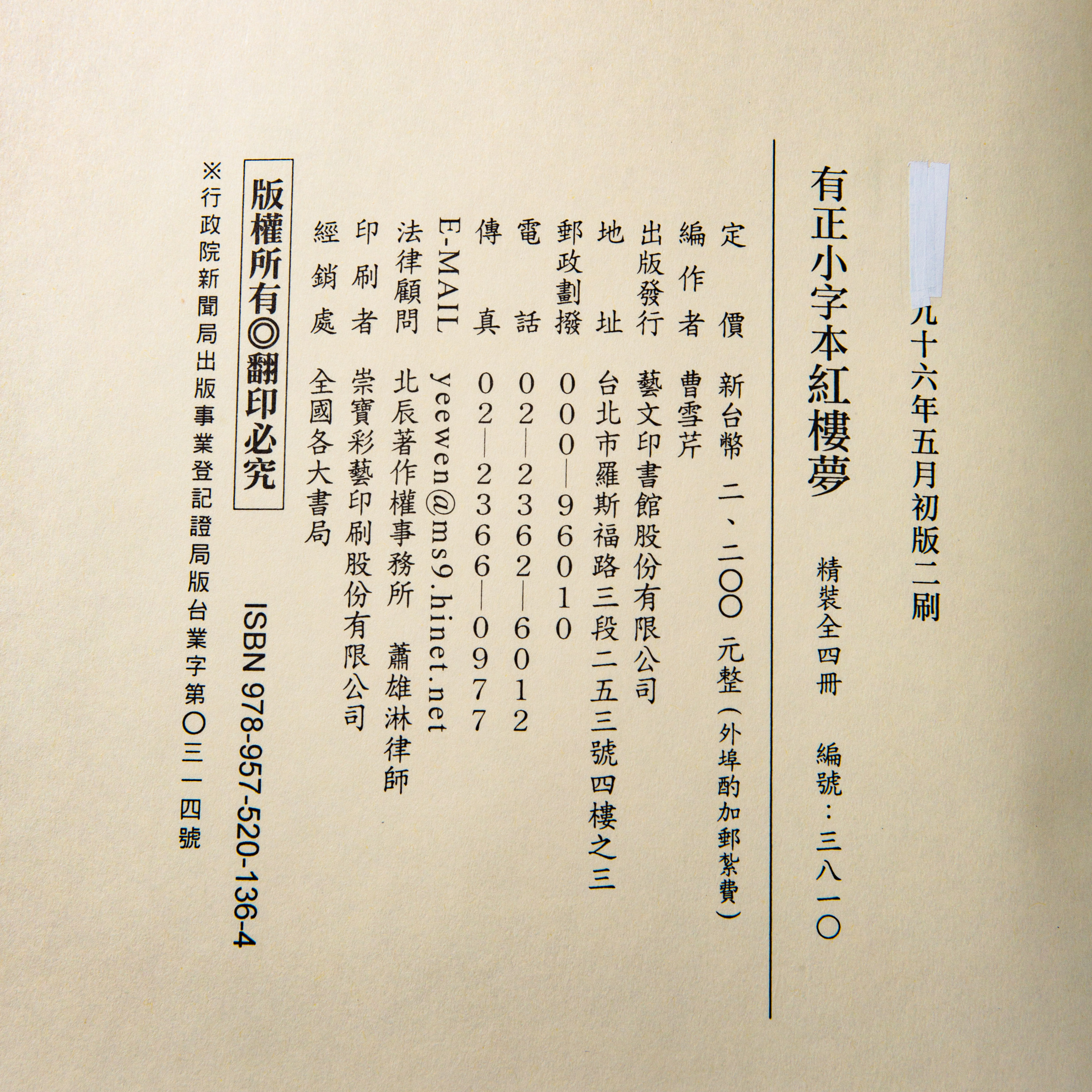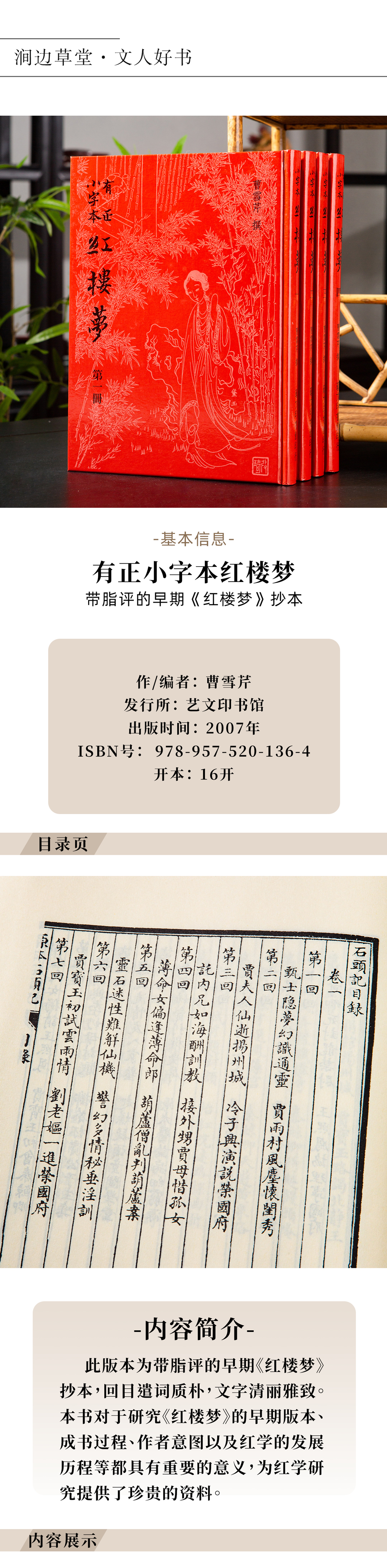 【绝版好书】少见版本《有正小字本红楼梦》16开精装,一套四册,2007年台湾艺文印书馆出版