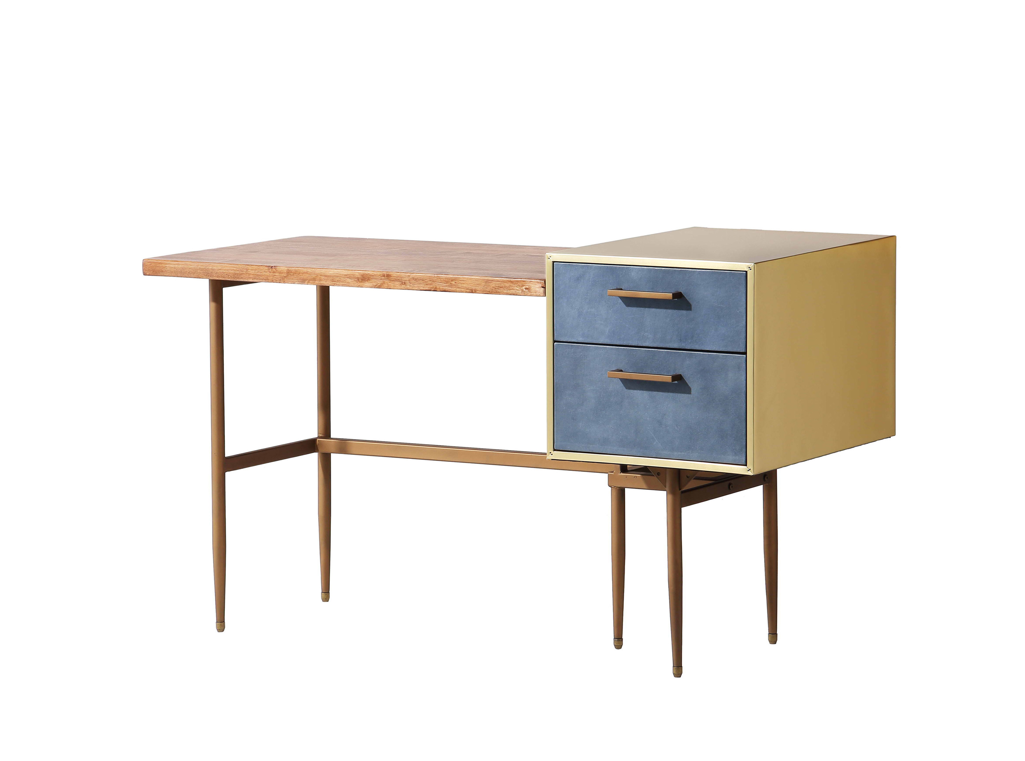 主材:铝金配新蓝色玛斯特皮抽屉/银灰色橡胶木台面/3号色底架/3号色拉手