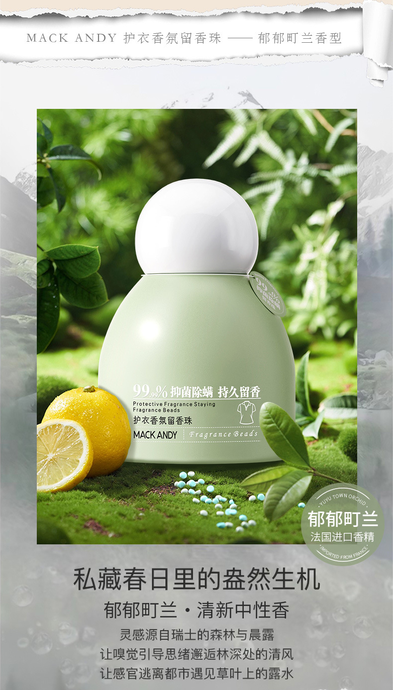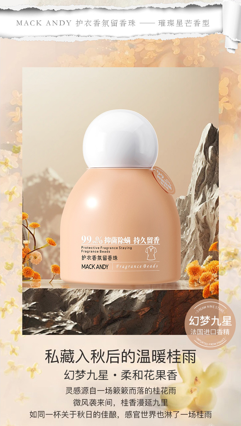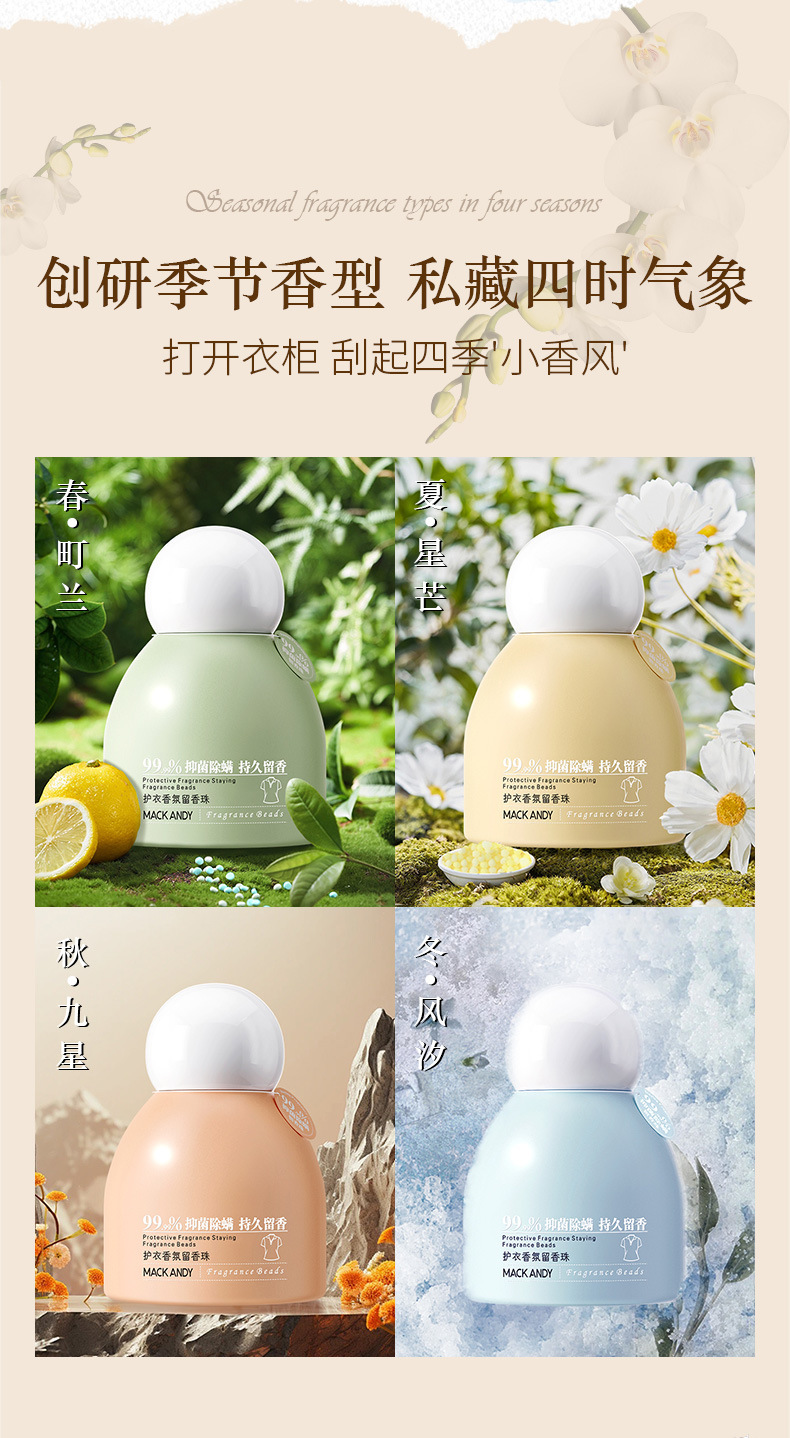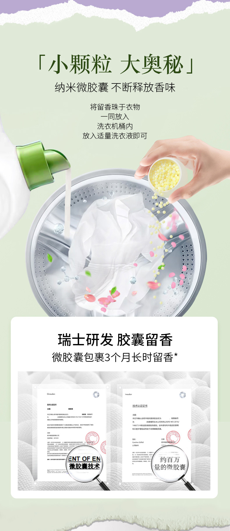 【玛可安迪-护衣香氛留香珠】4合一全新升级洗衣留香、纳米级留香微胶囊、自然清香成分安全可靠、1瓶=高定香水+抑菌剂+柔顺剂+除螨剂!