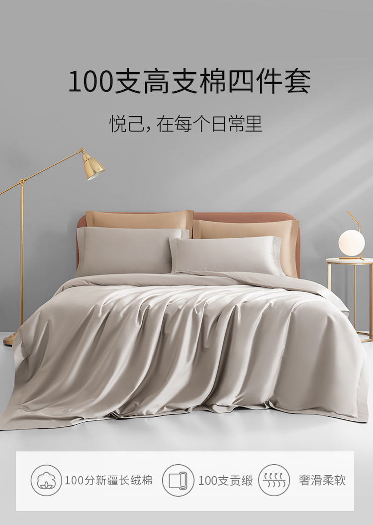 【文怡之选】绘睡 100支高支棉件套 长绒棉床品 床单&被罩&枕套 柔软舒适 亲肤细腻 多色多尺码可选
