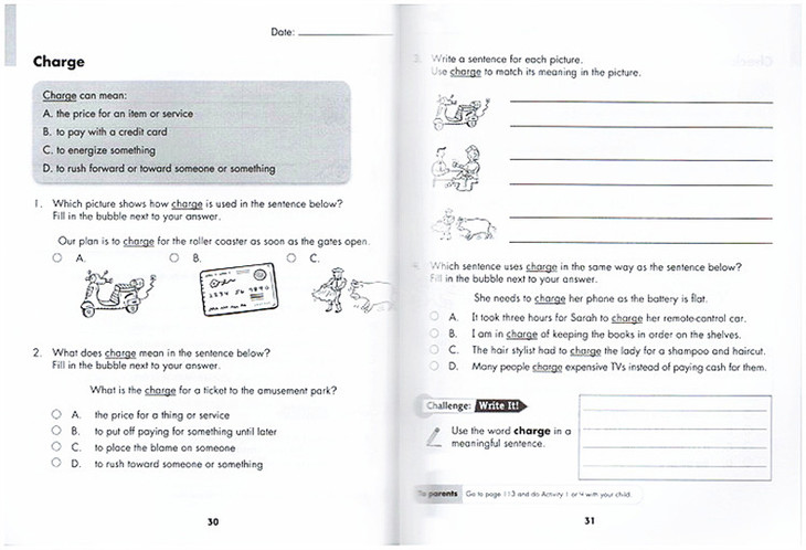 Provides opportunities for students to expand their vocabulary and better comprehend what they read. Each 2-page spread targets a different word and invites students to both read and understand the different meanings of the word, as well as to apply them in sentence construction!
