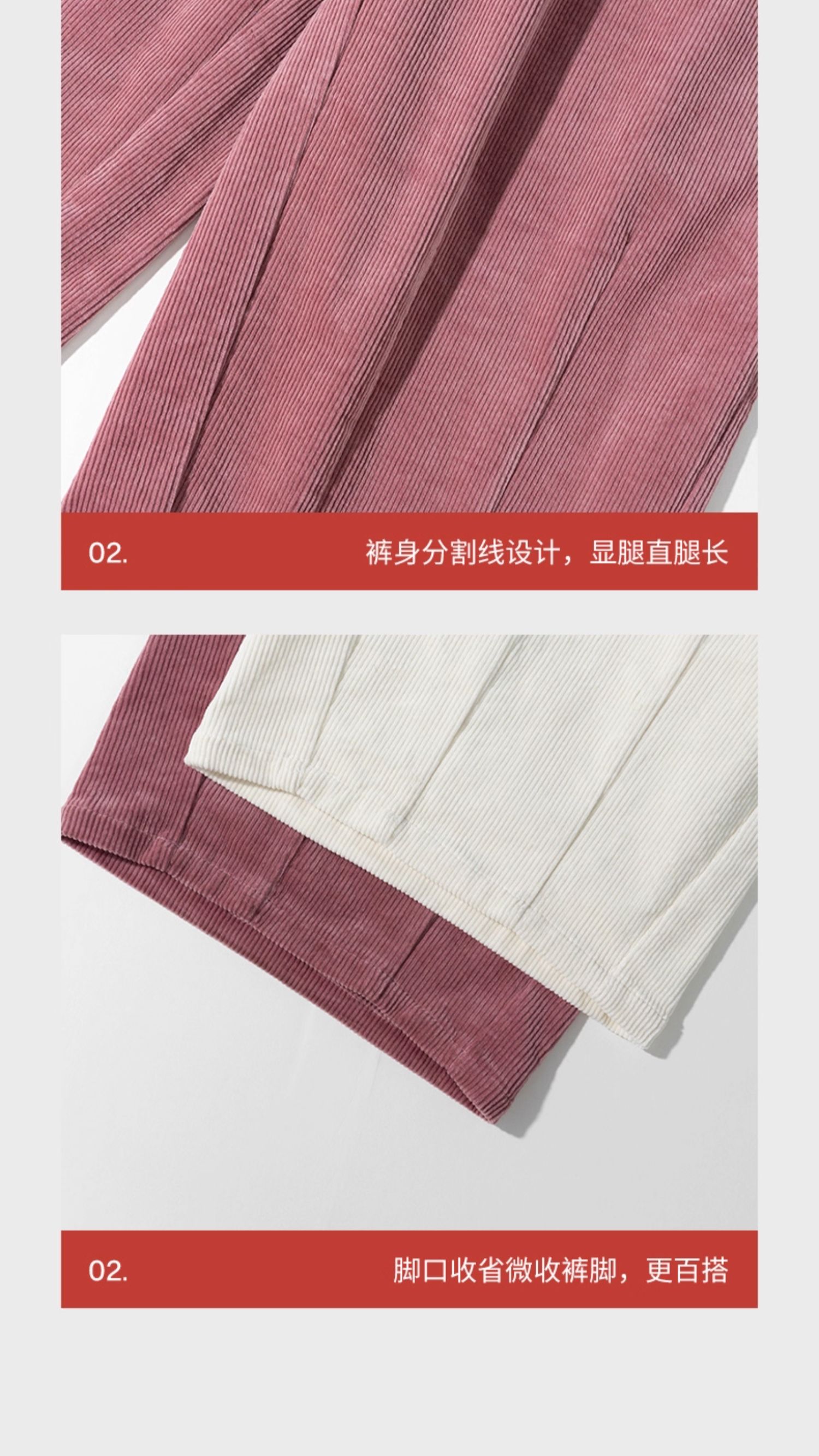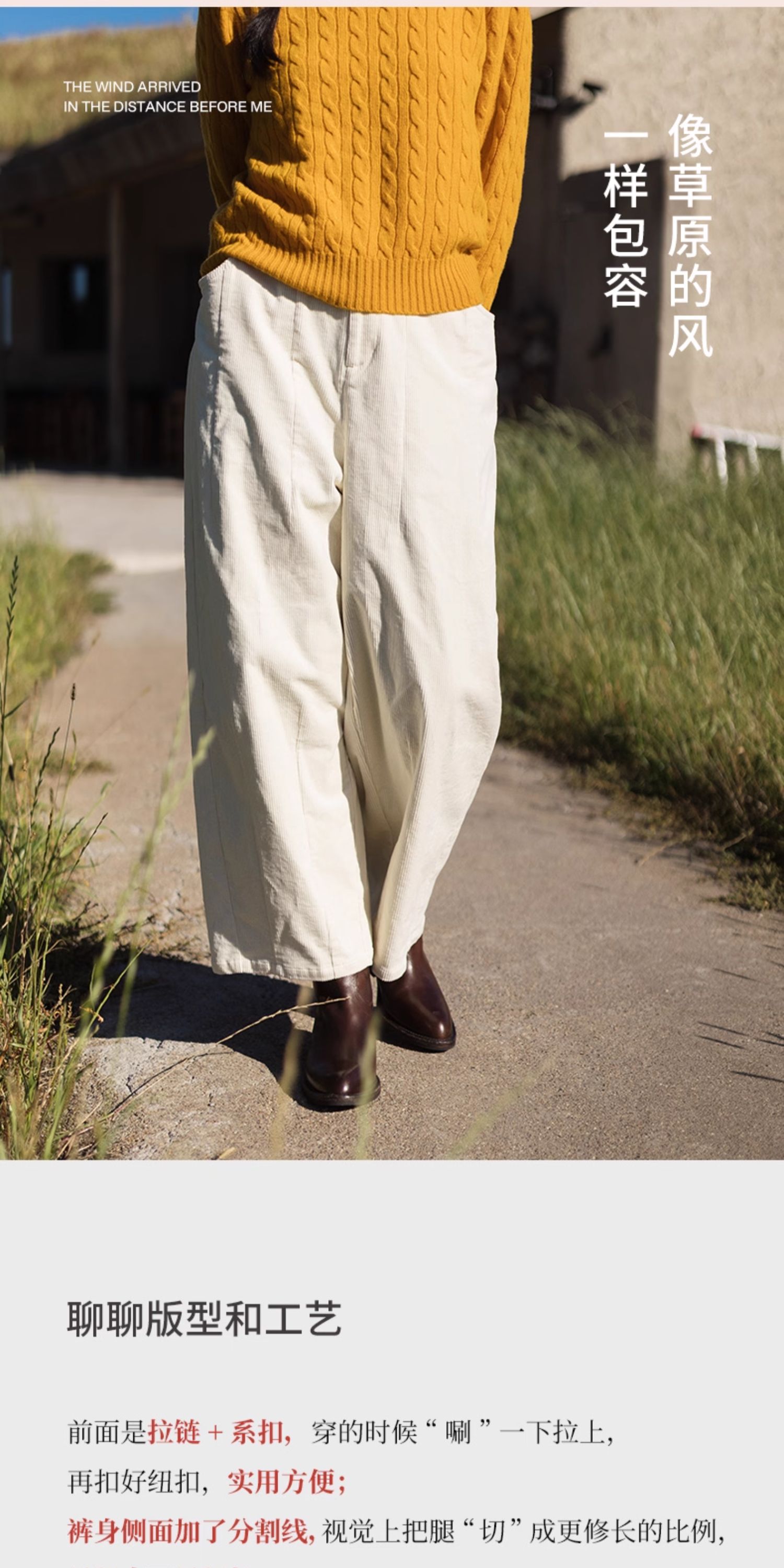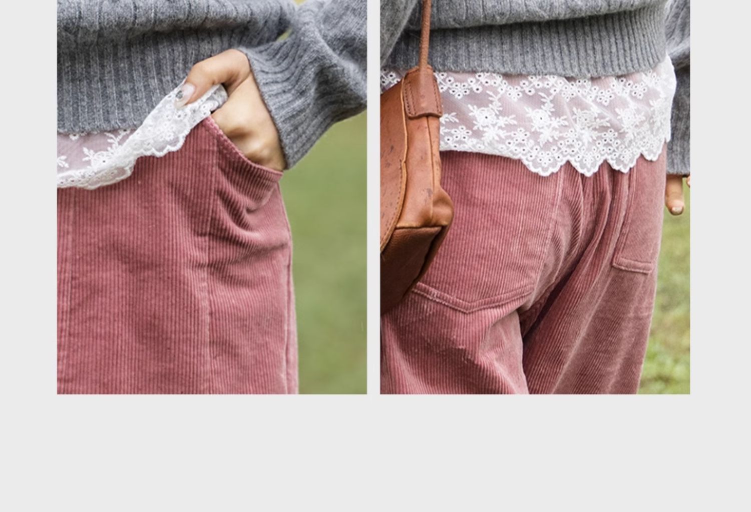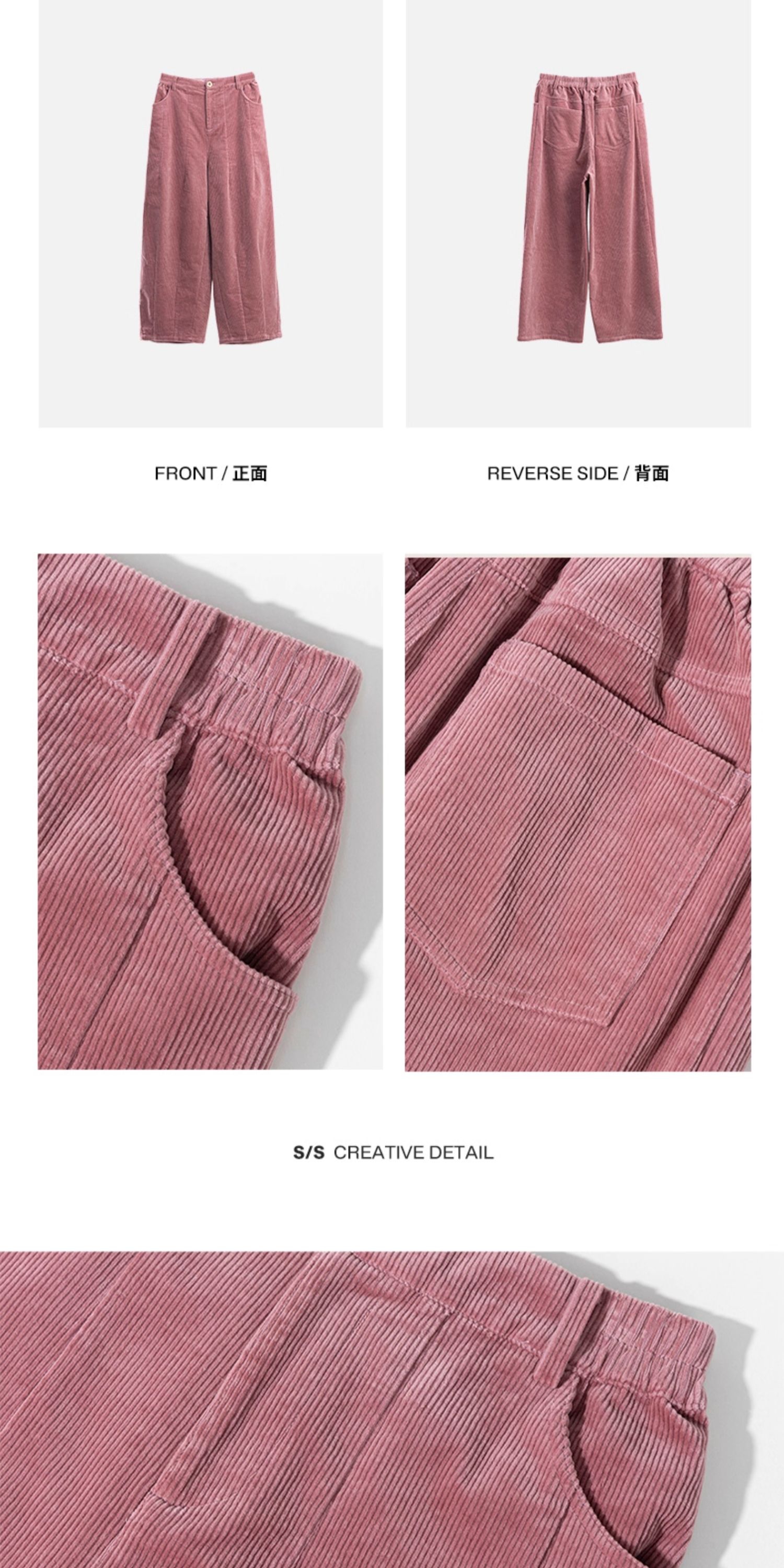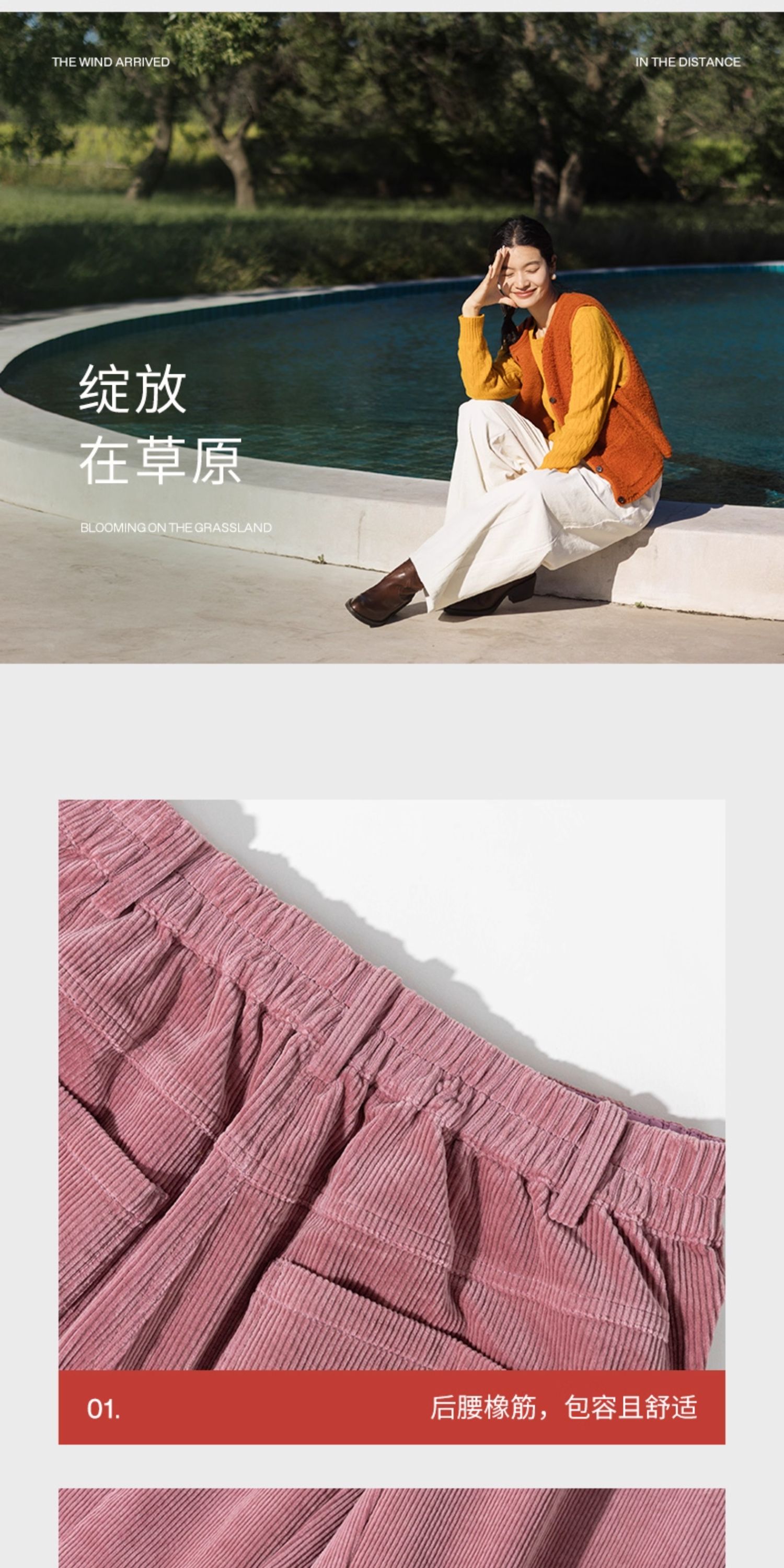 特绽放714朵/棉弹力灯芯绒文艺半腰松紧直筒休闲裤慵懒感显瘦长裤