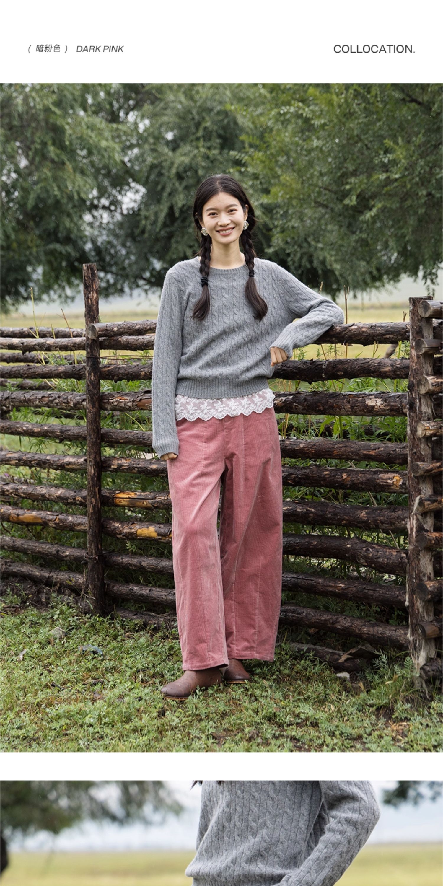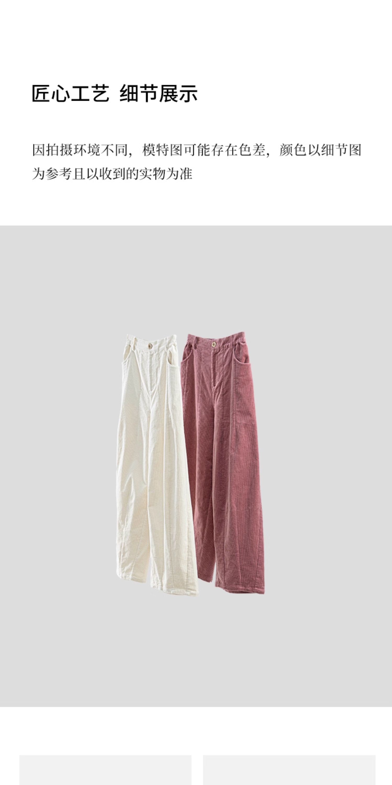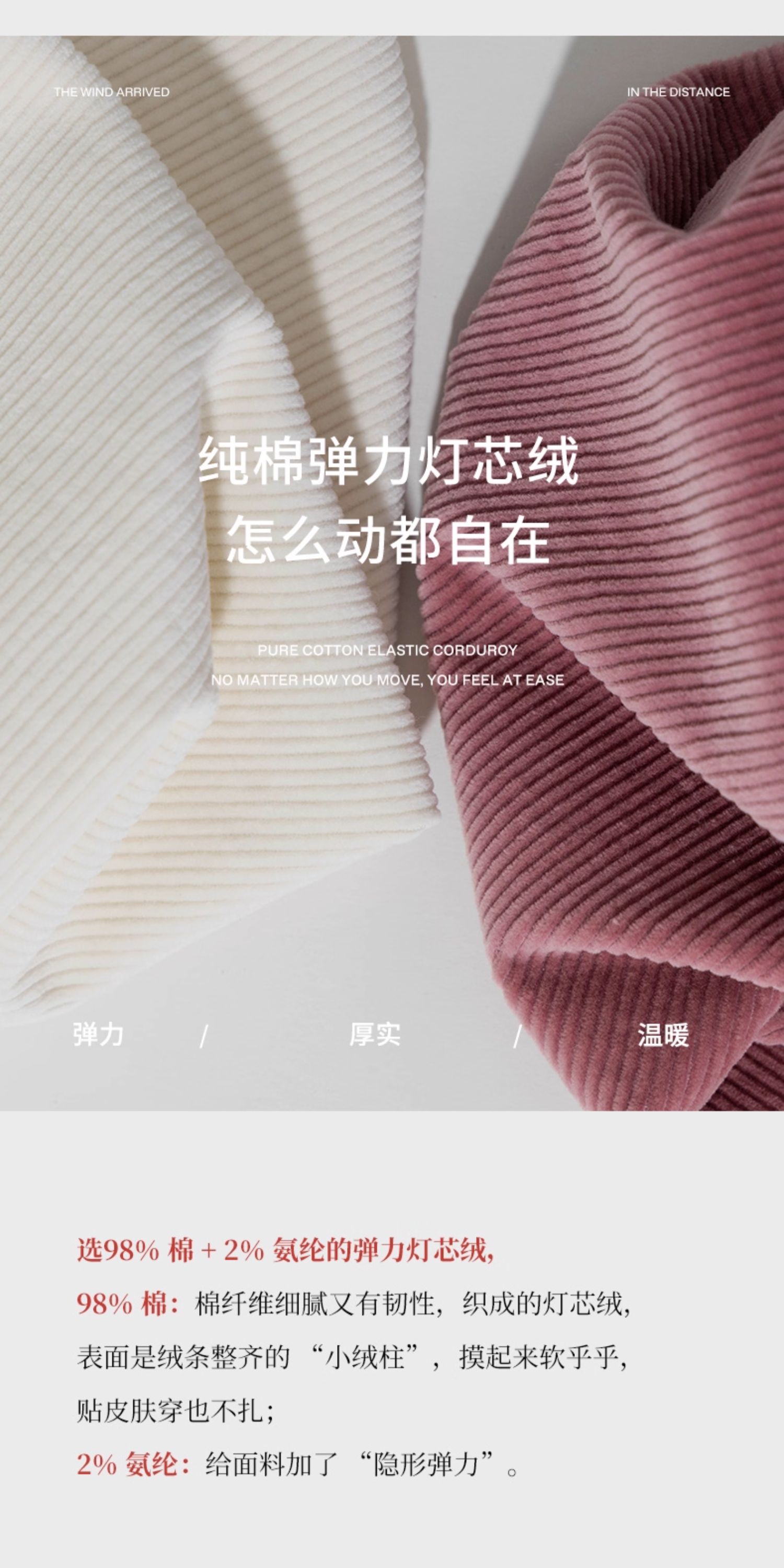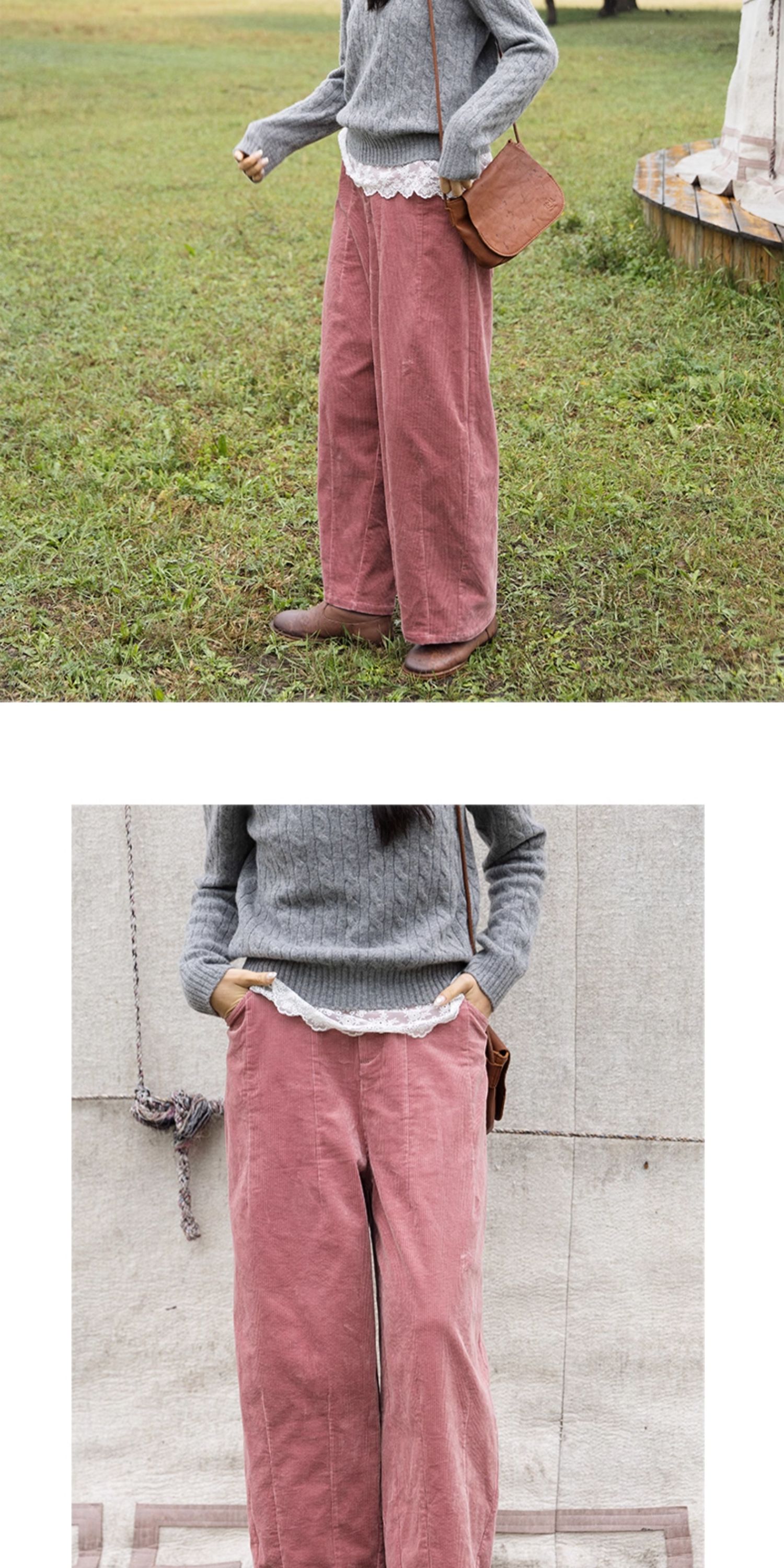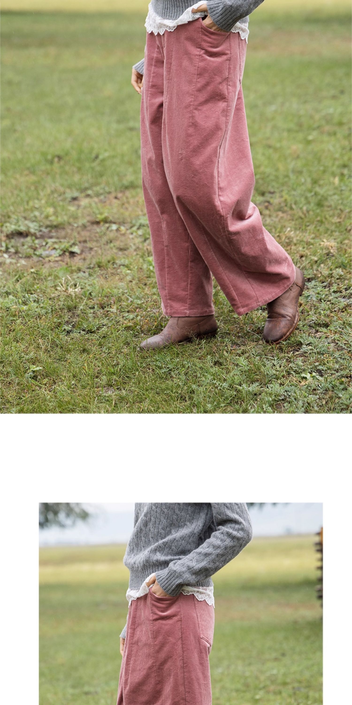 特绽放714朵/棉弹力灯芯绒文艺半腰松紧直筒休闲裤慵懒感显瘦长裤