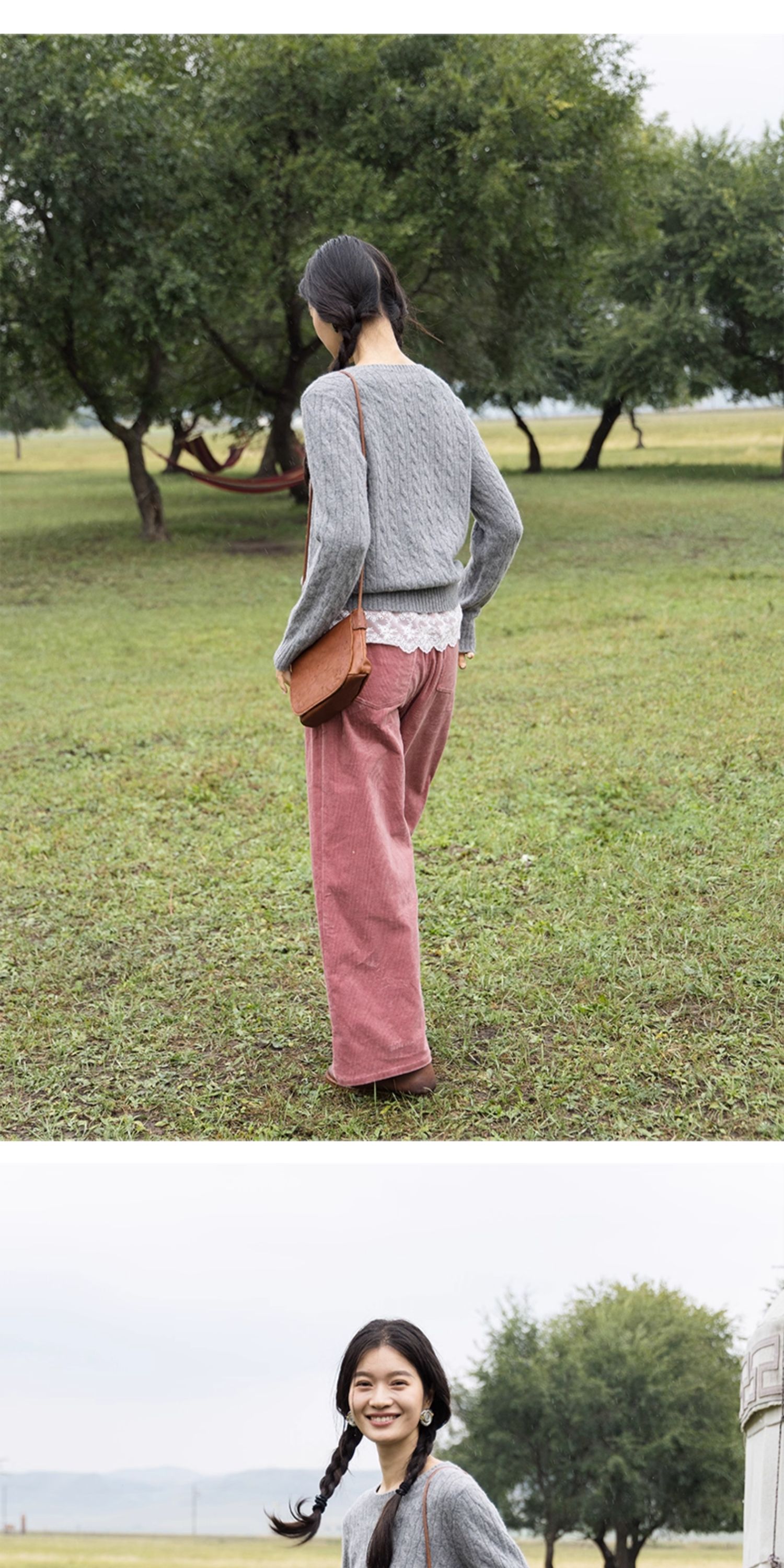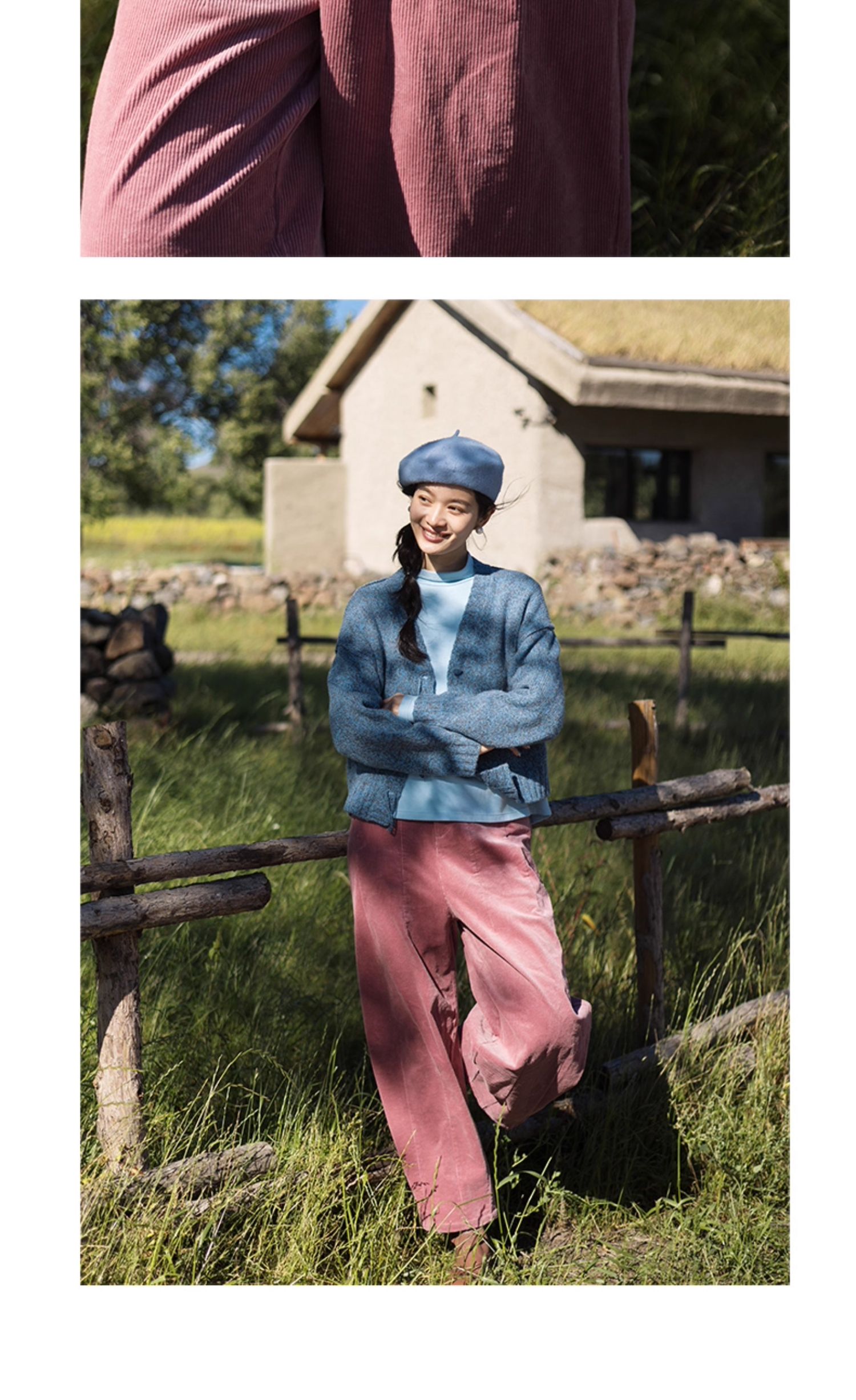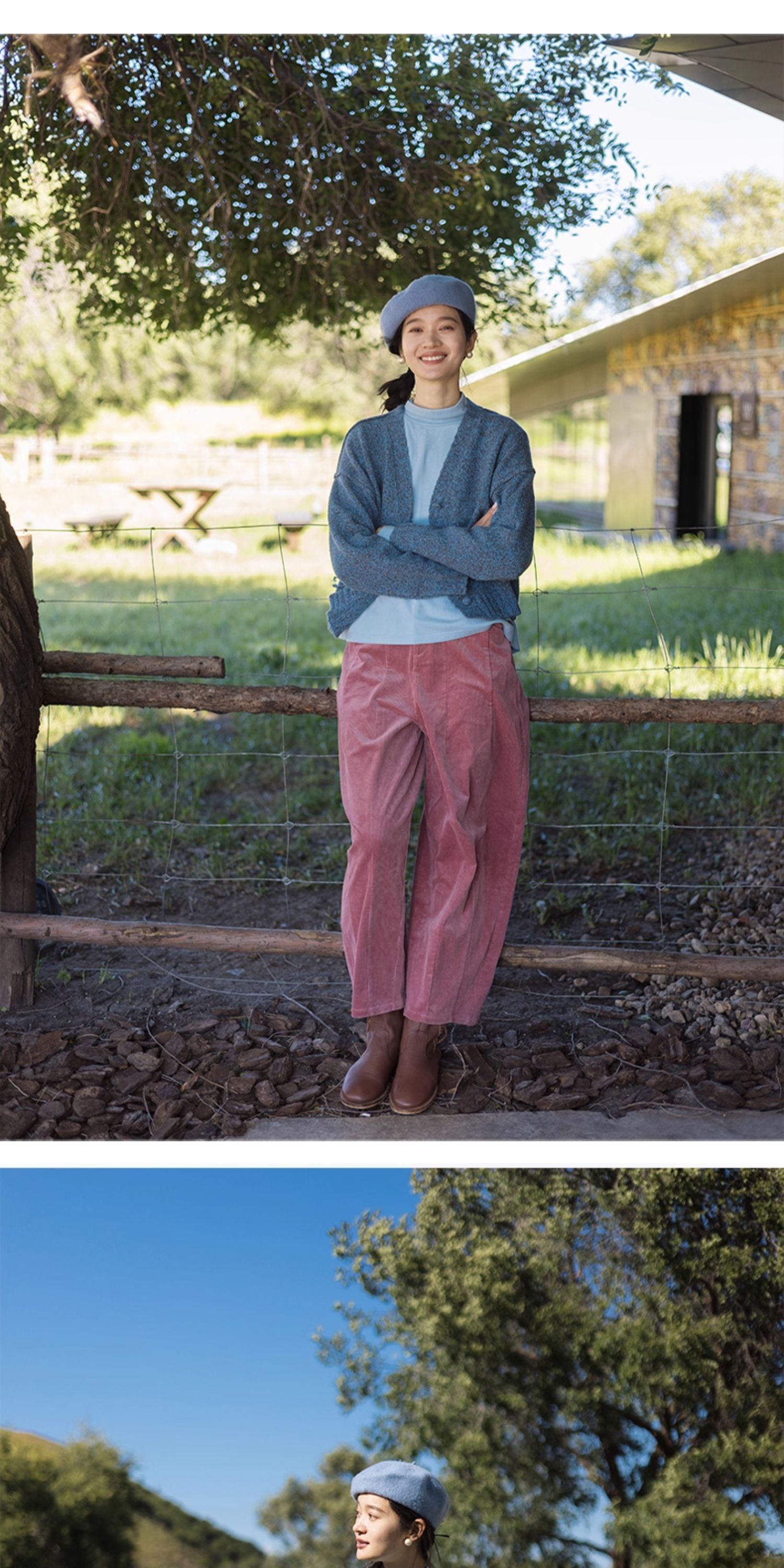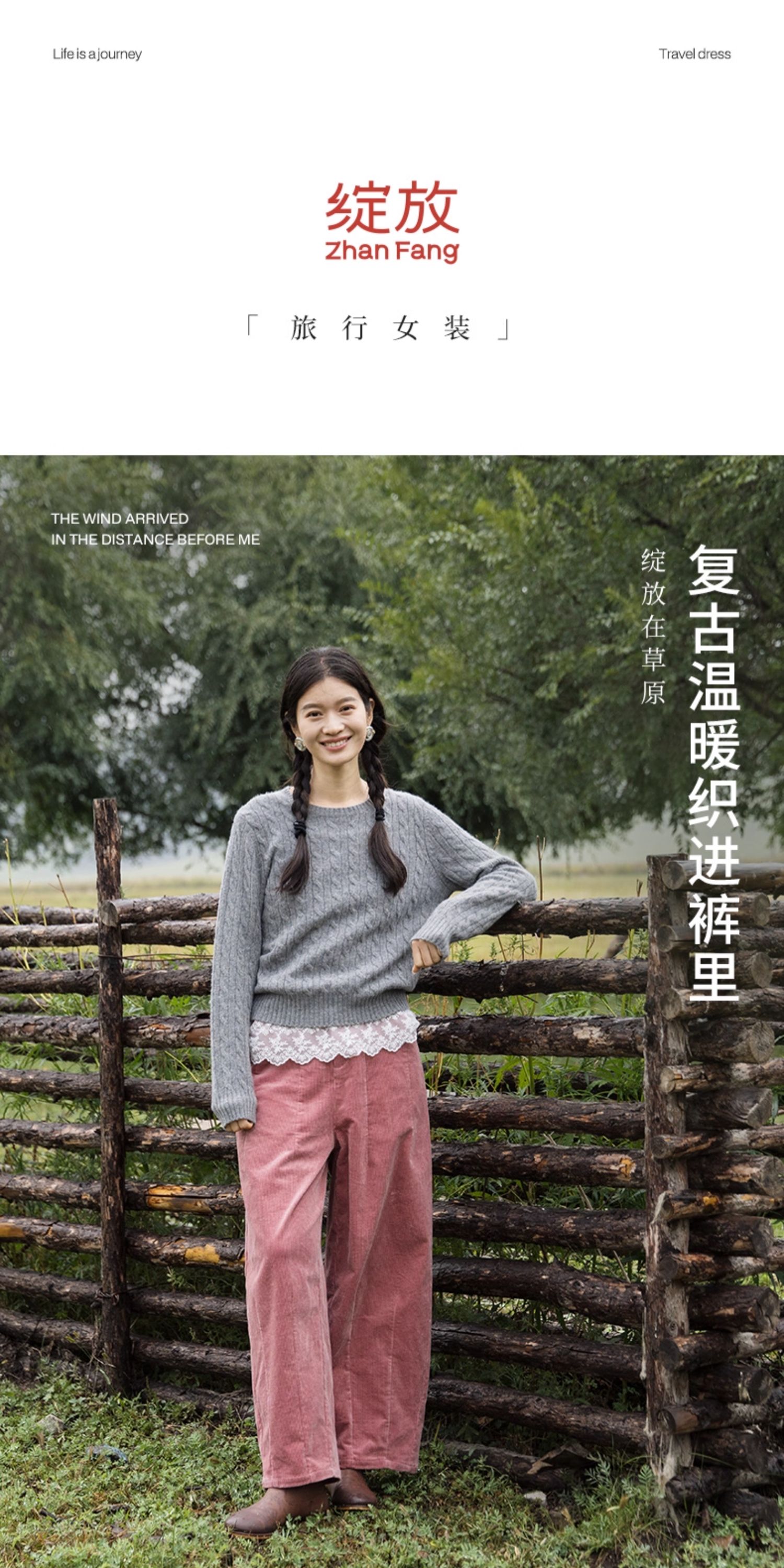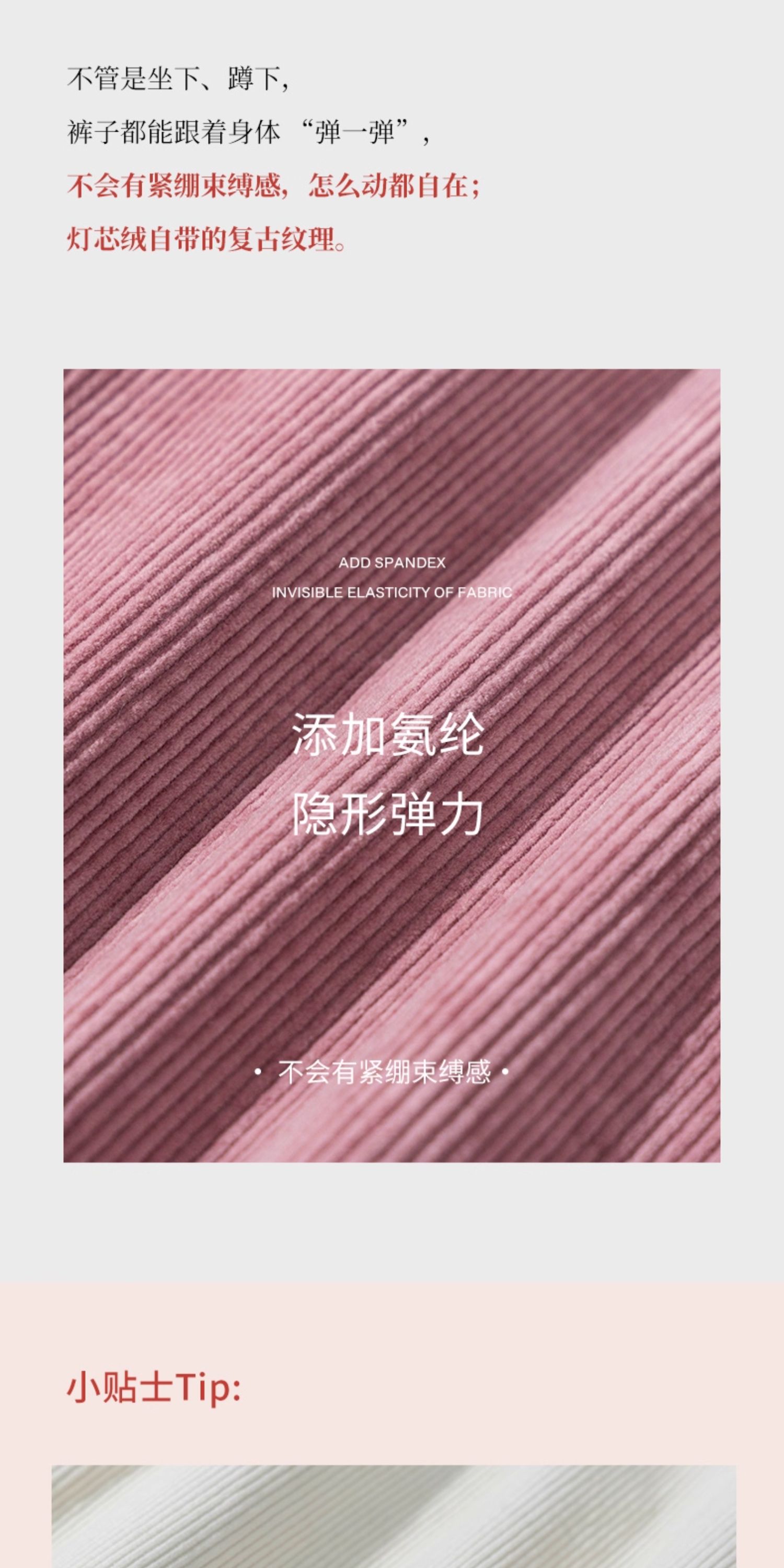 特绽放714朵/棉弹力灯芯绒文艺半腰松紧直筒休闲裤慵懒感显瘦长裤