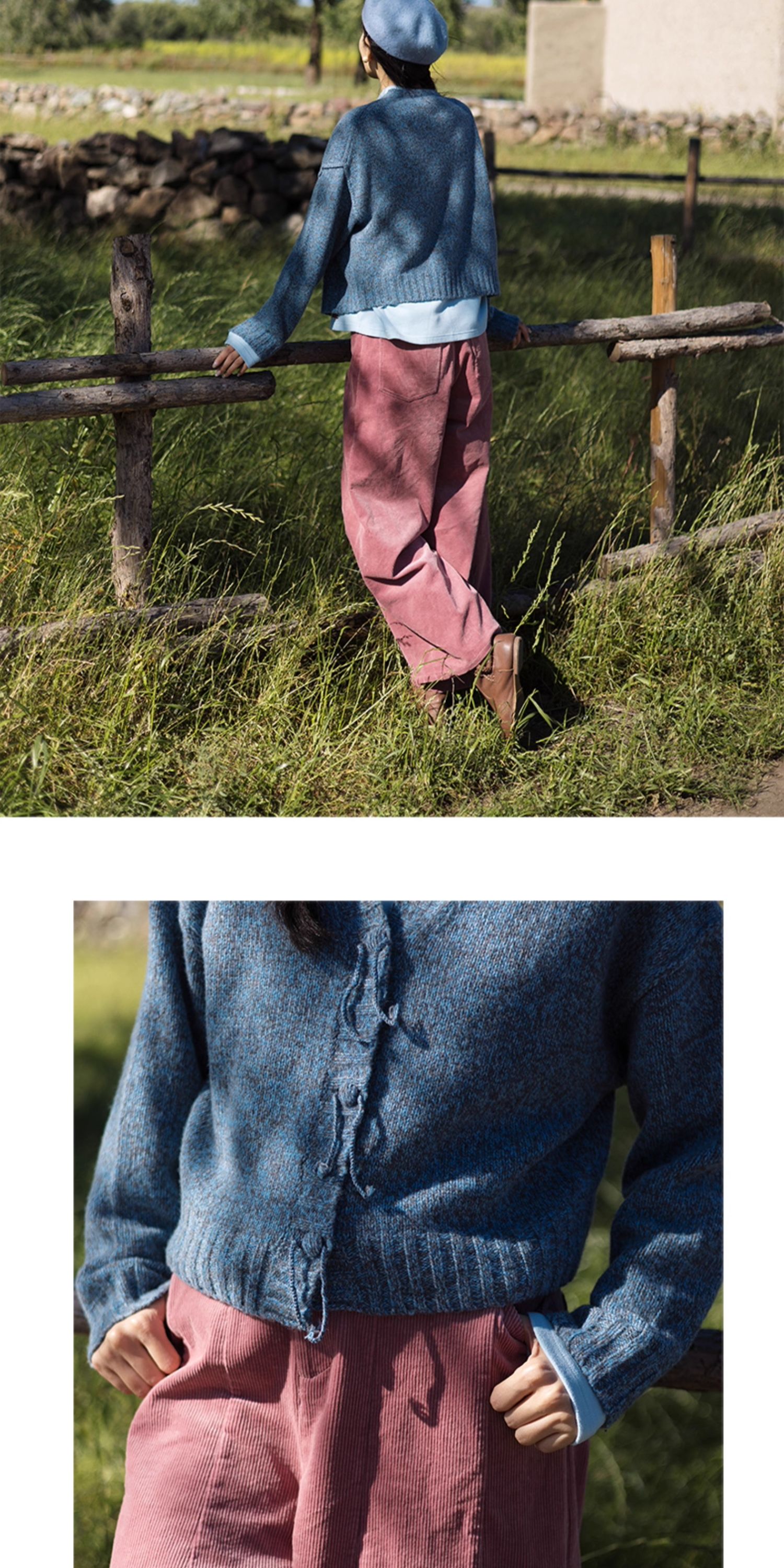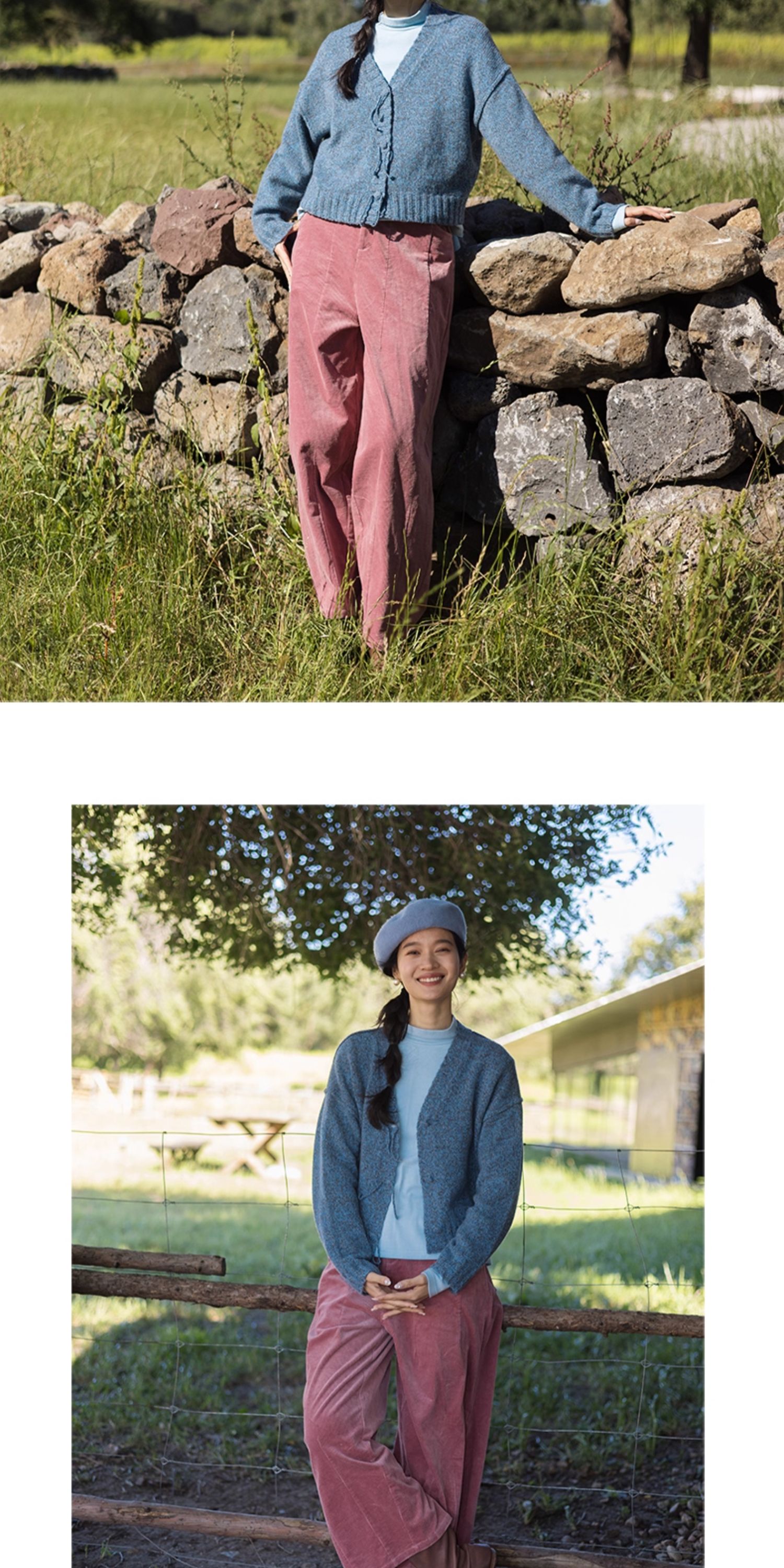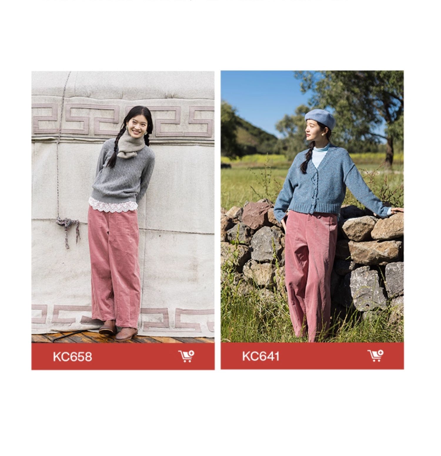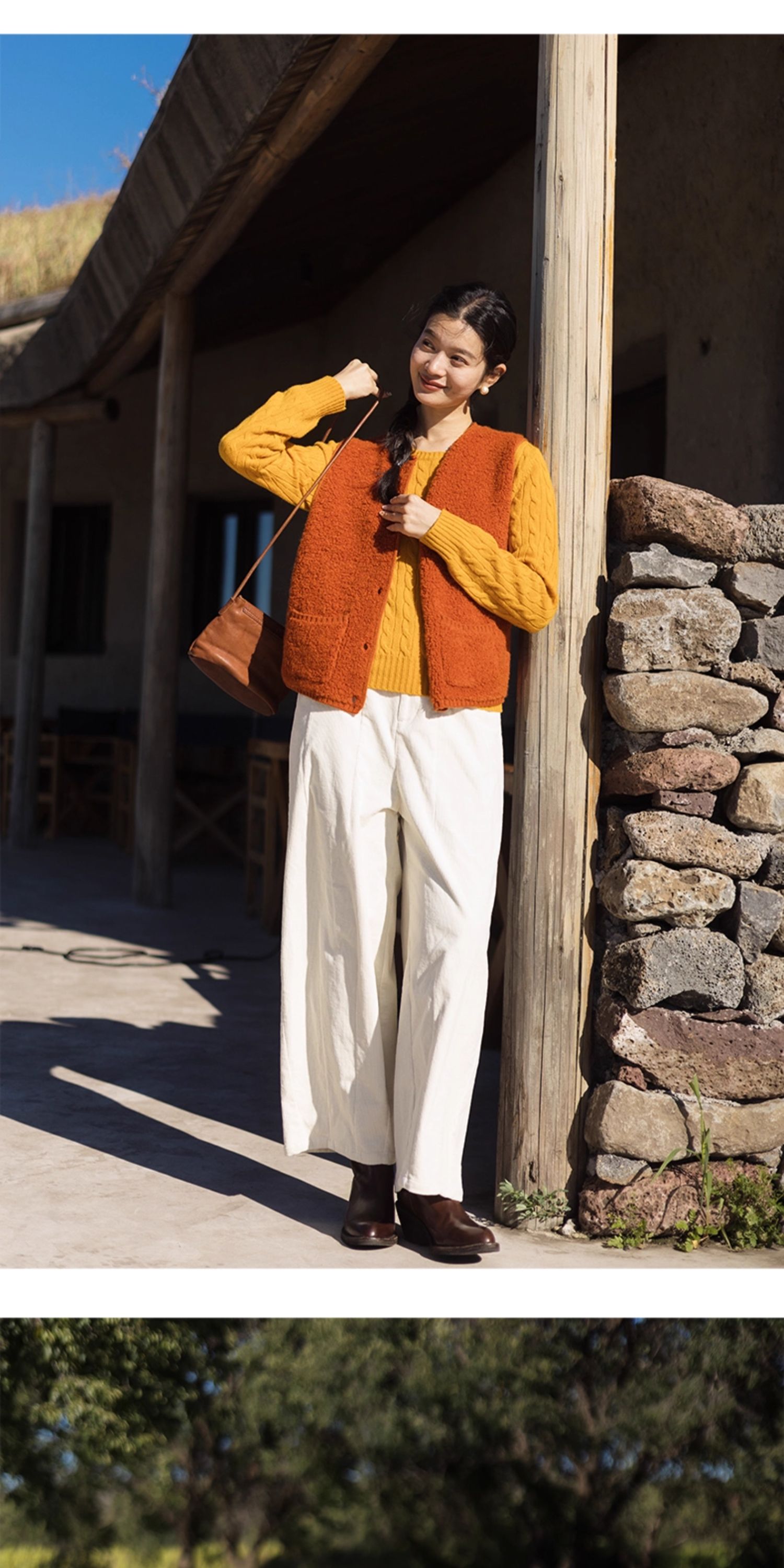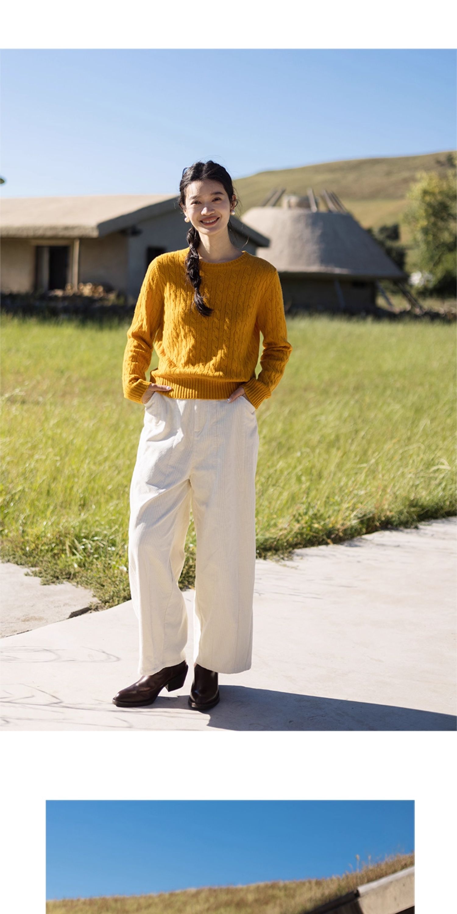 特绽放714朵/棉弹力灯芯绒文艺半腰松紧直筒休闲裤慵懒感显瘦长裤