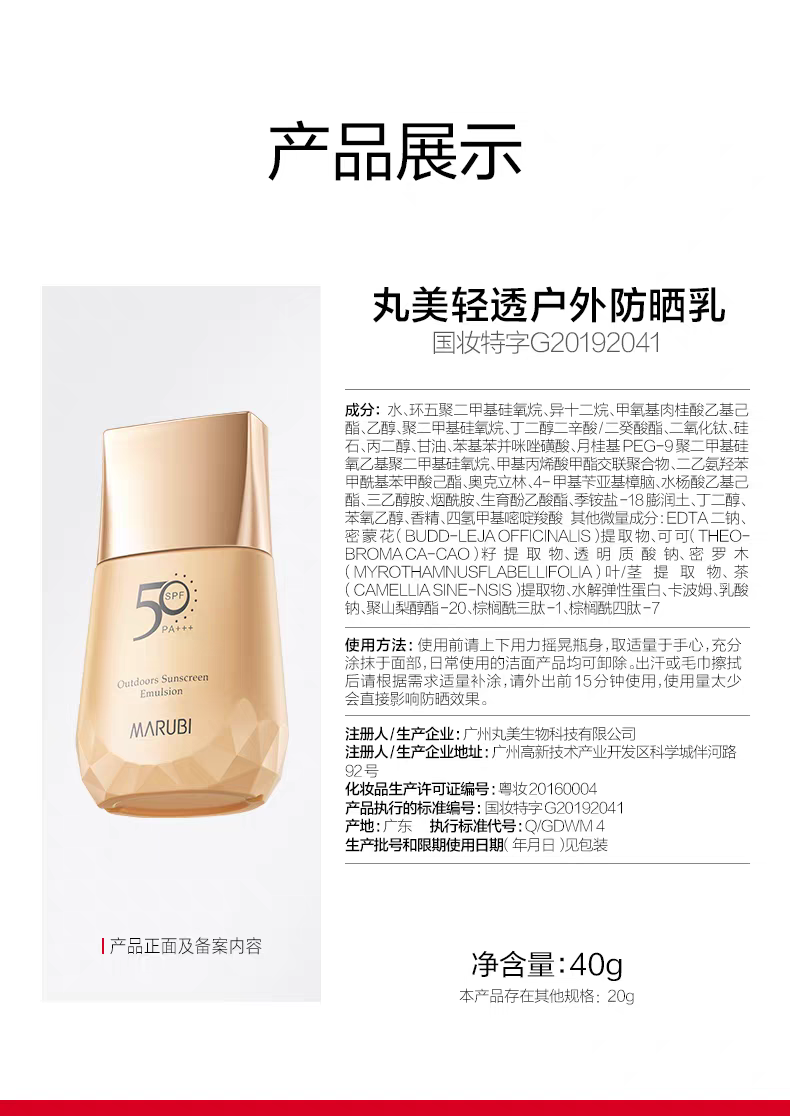 【VIP】丸美 轻透户外防晒乳SPF50PA+++40g(小金钻)防晒霜