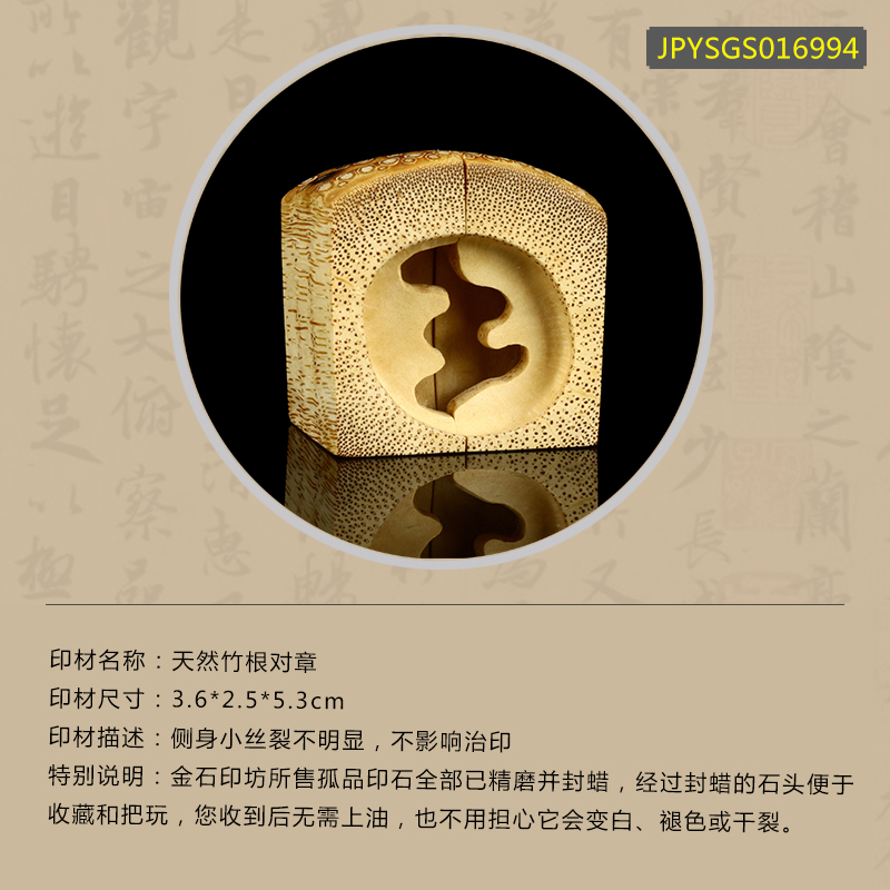 孤品016994-天然竹根对章3.6*2.5*5.3cm