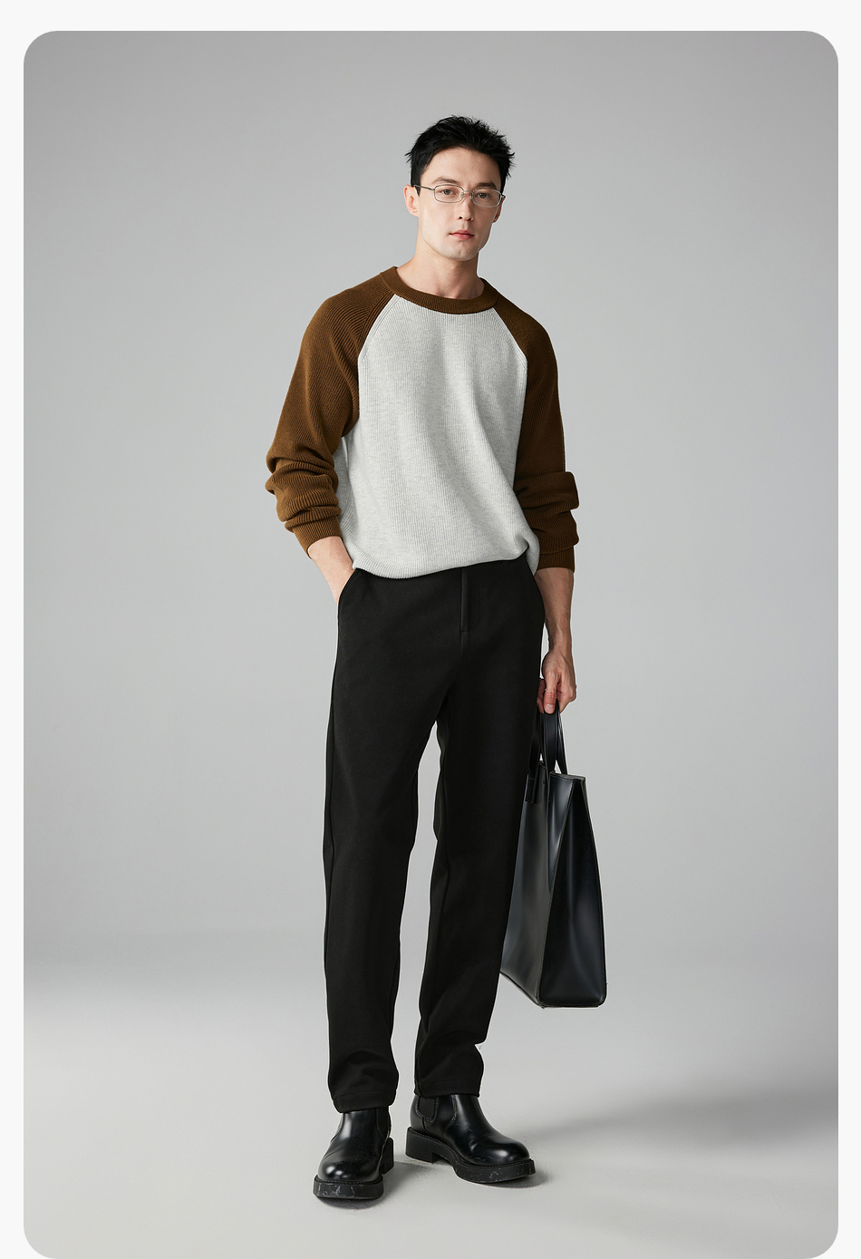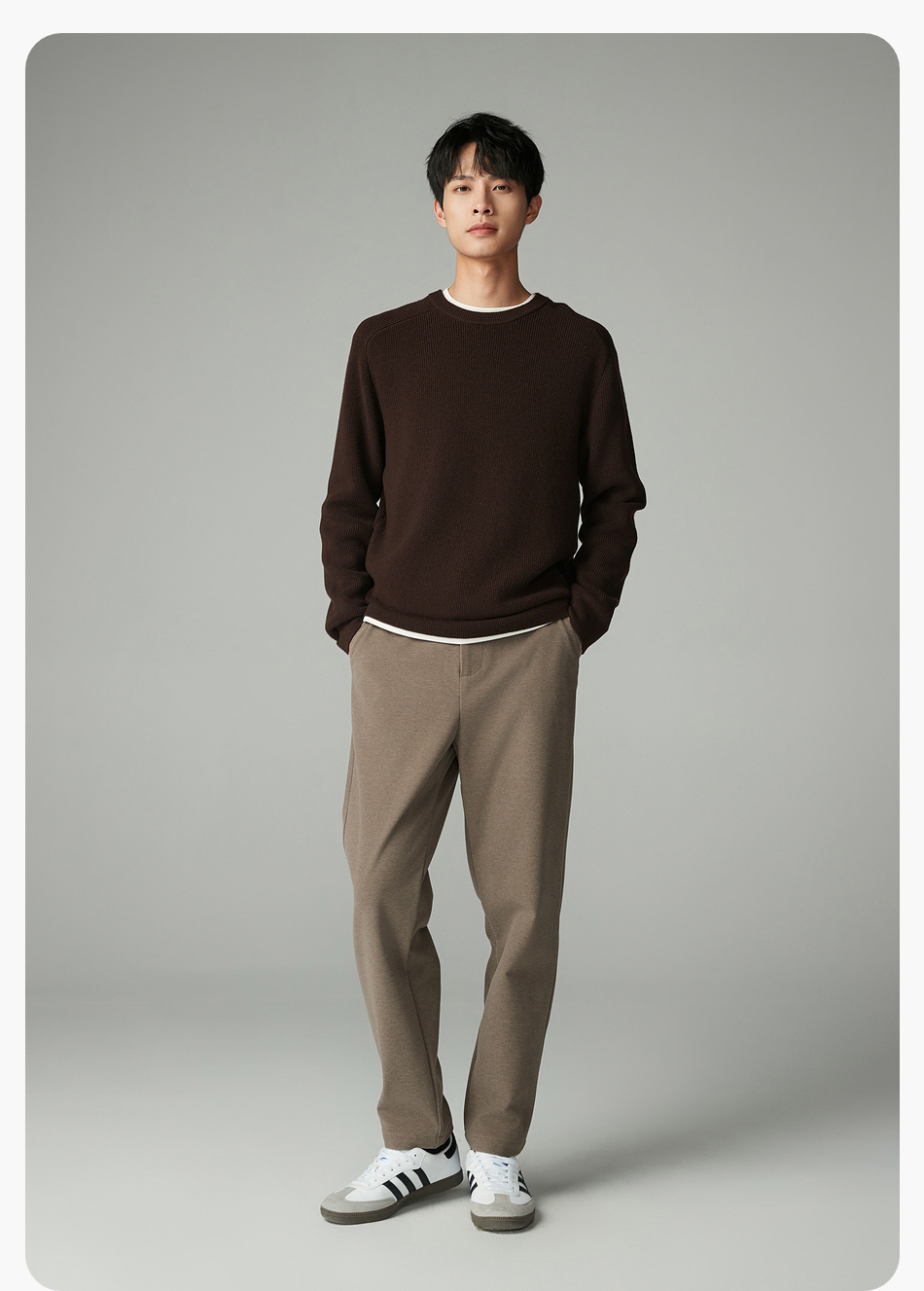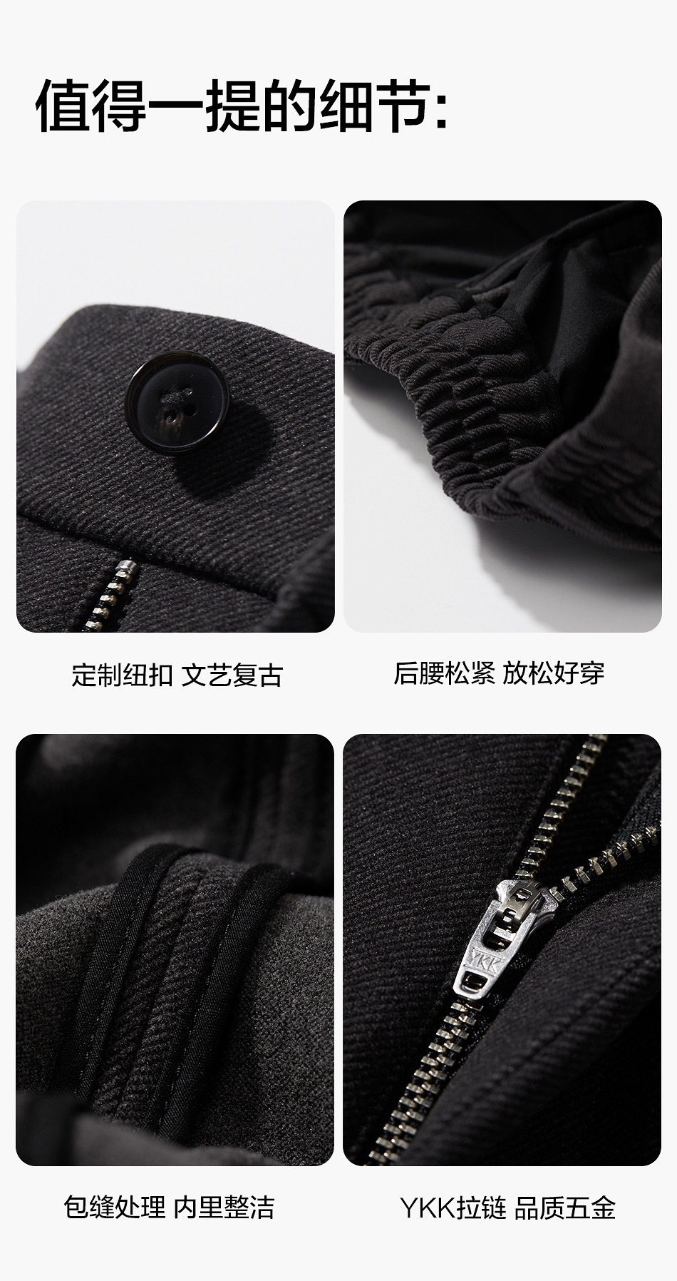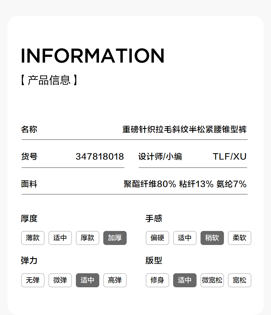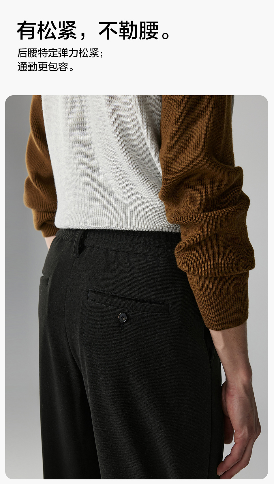 重磅针织拉毛斜纹半松紧腰锥型裤