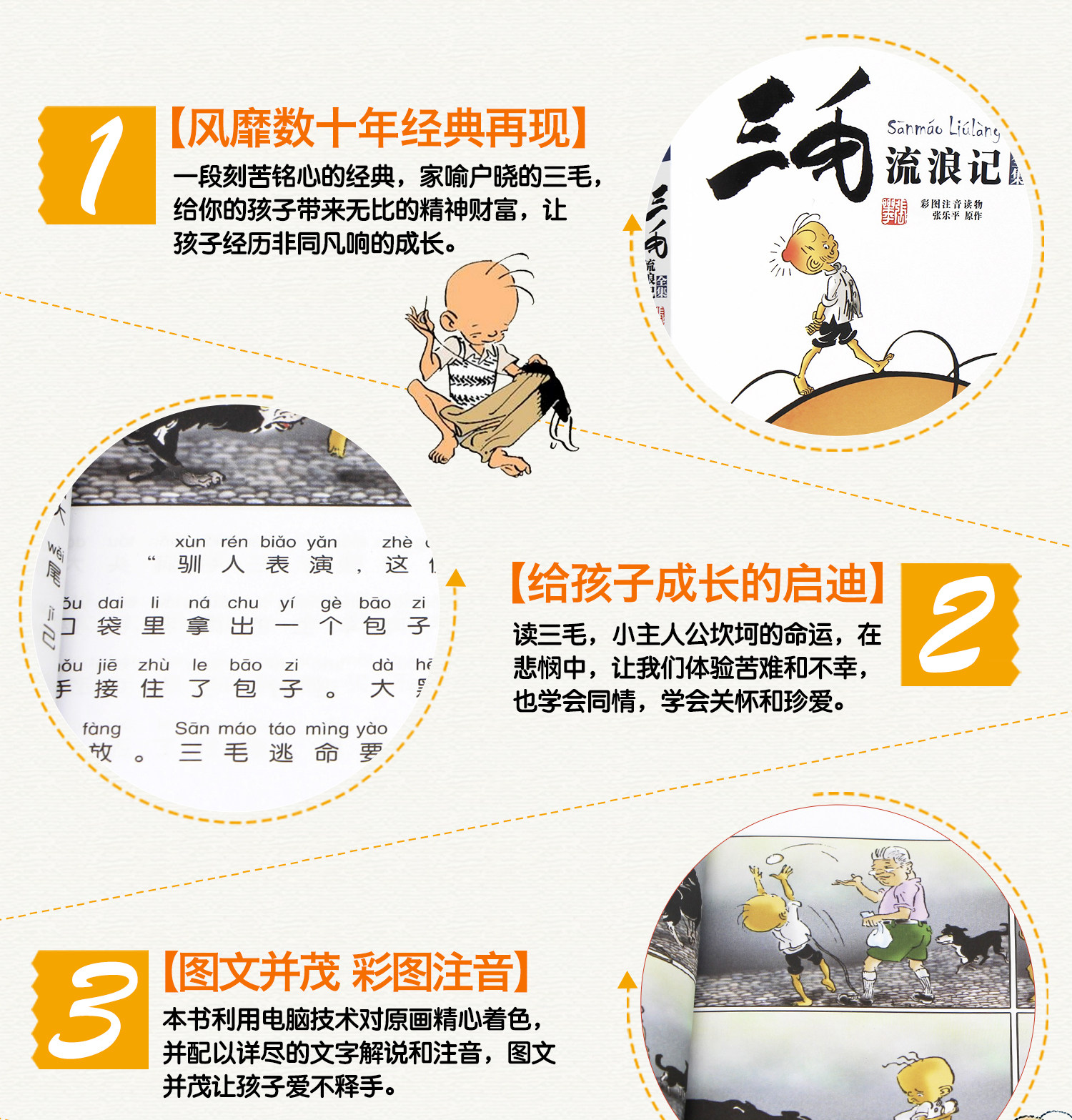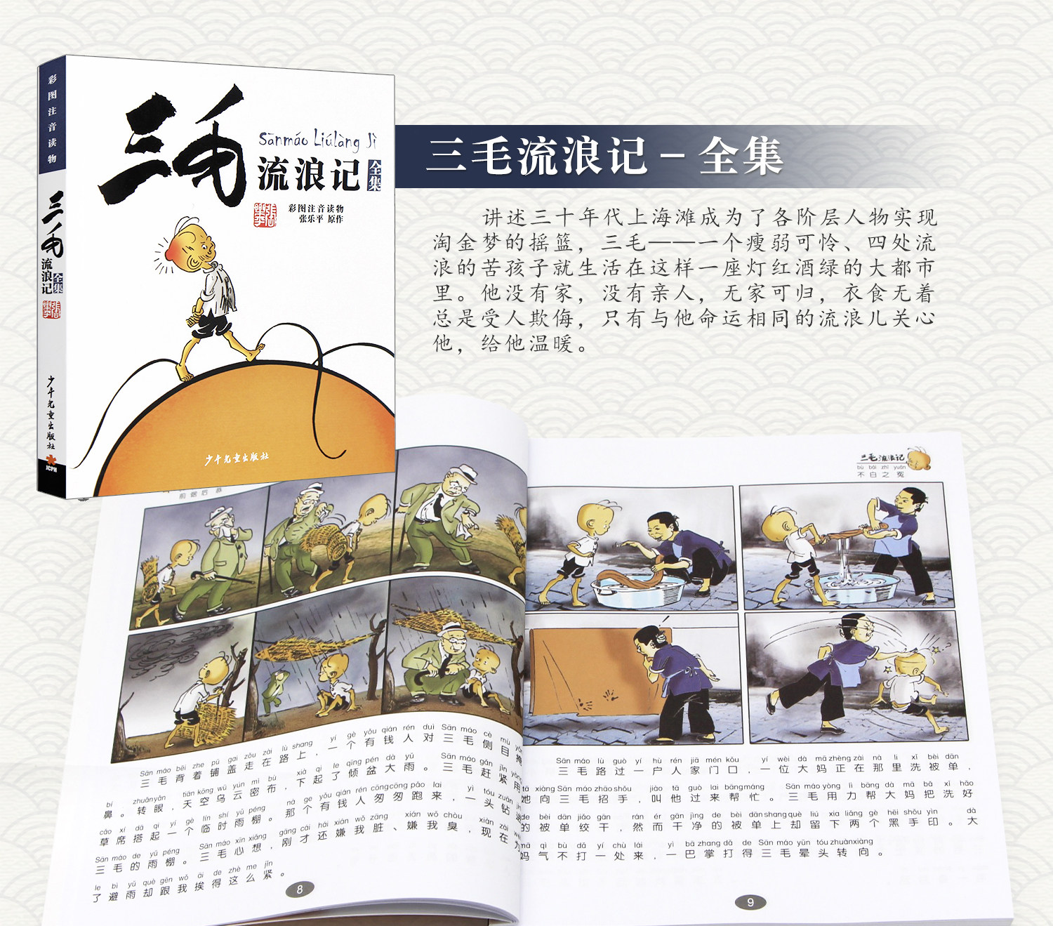 三毛流浪记全集 正版 彩图注音版读物 小学生一二 三年级课外书必读 张乐平著 6-12岁绘本故事书 儿童卡通漫画书小人书连环画全套