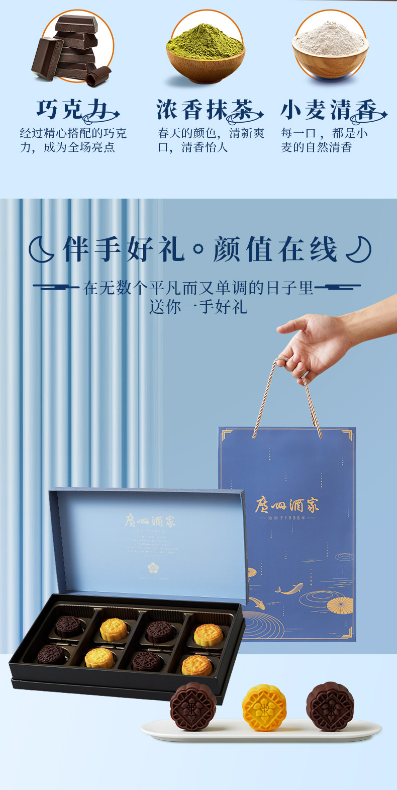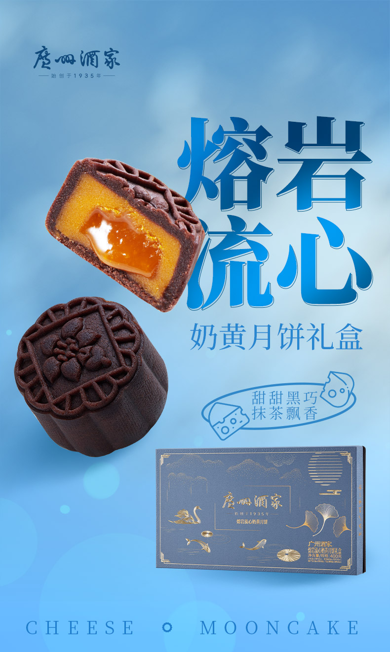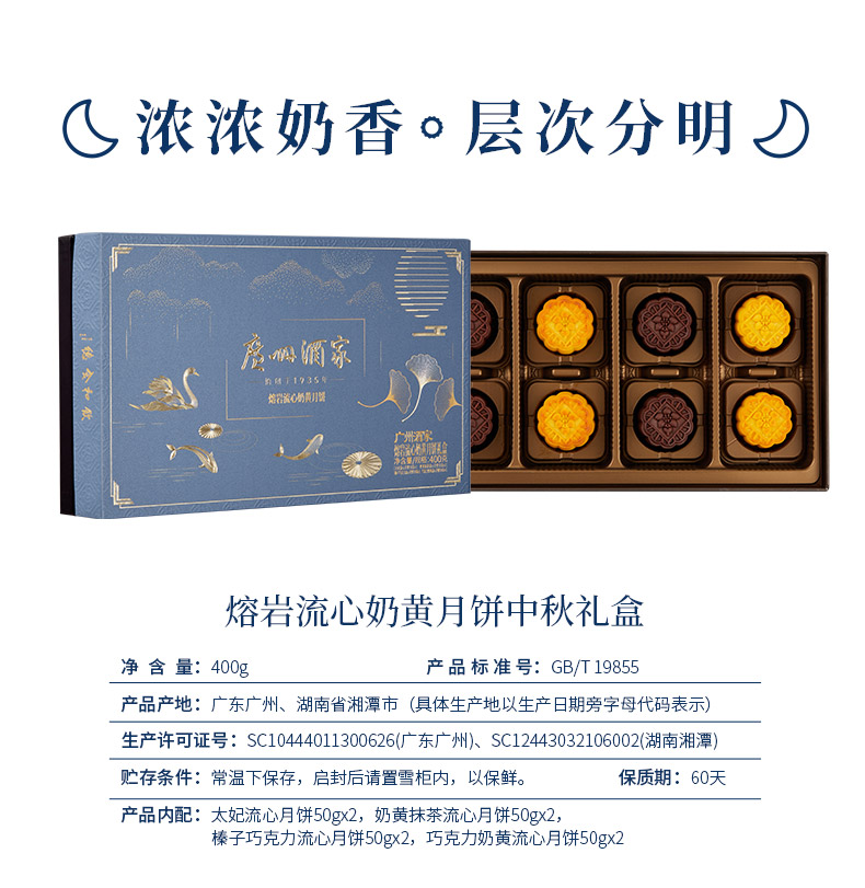 广州酒家月饼 熔岩流心奶黄月饼礼盒400g 中秋月饼送礼 团购优惠