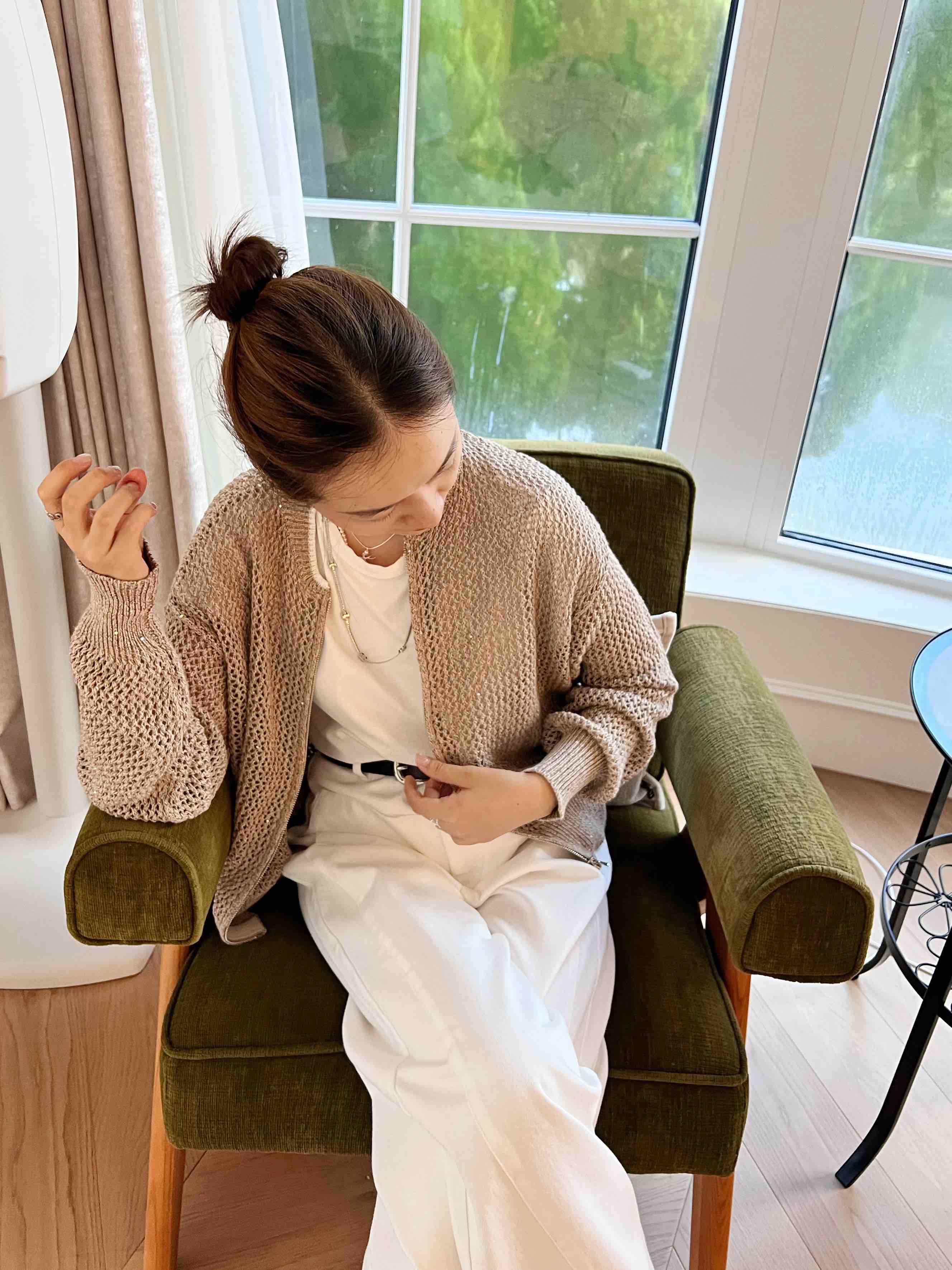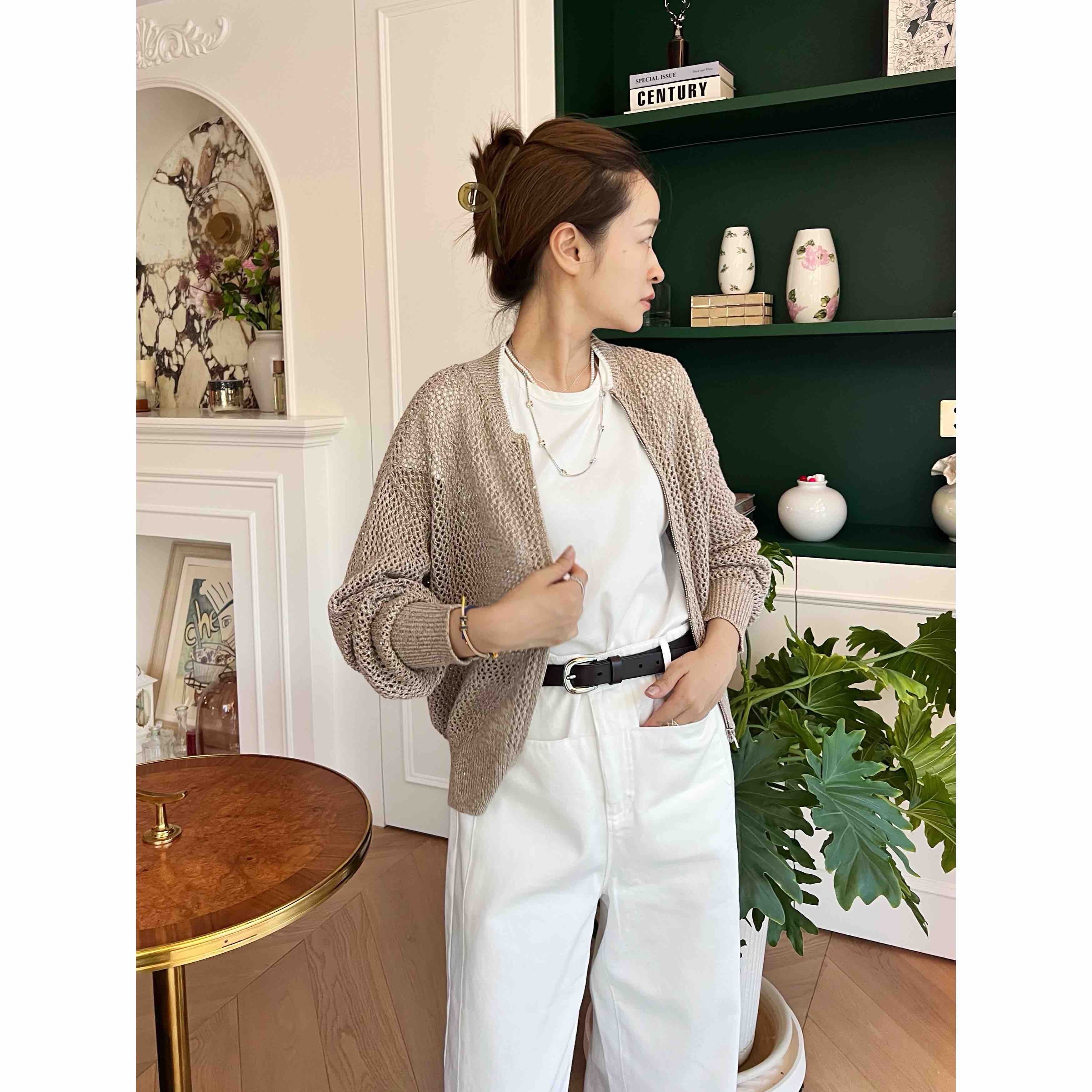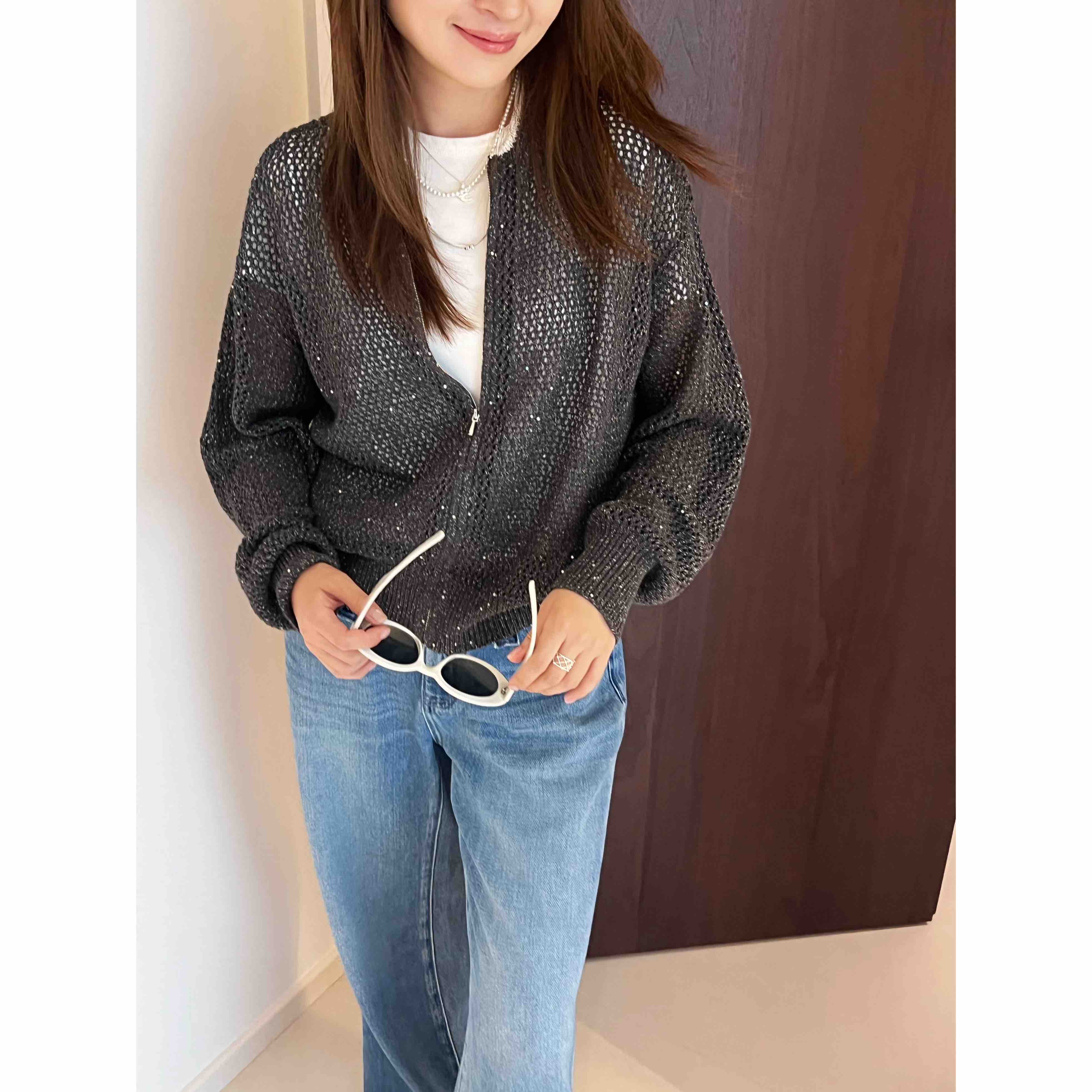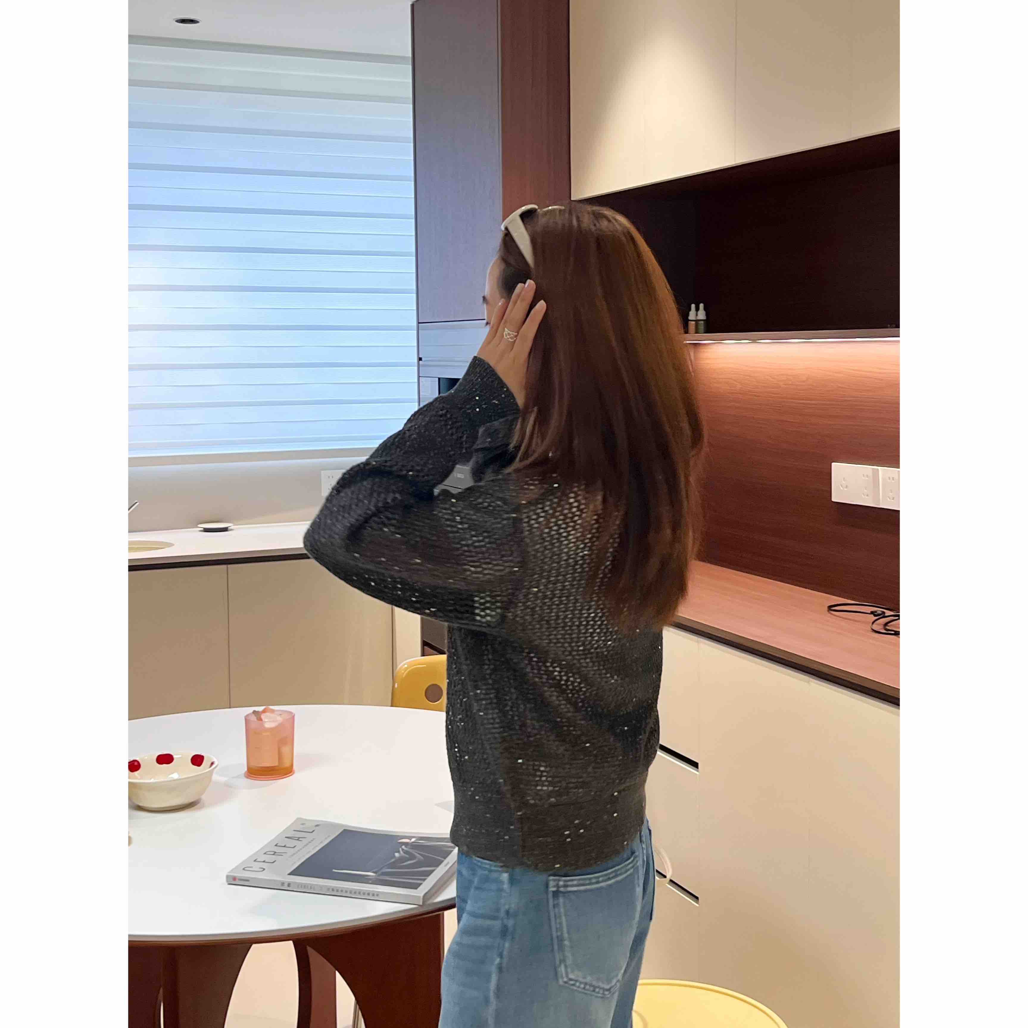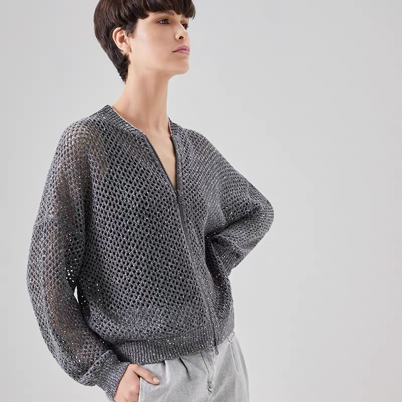 2508415 特种纱 棉羊毛 珠片镂空开衫